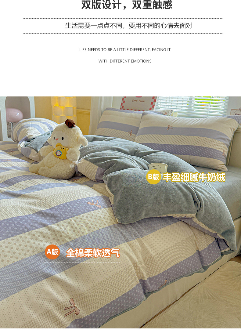 当前位置: 91家纺网 > 商品网购 > 床品套件 > 四件套 > 牛奶绒四件套 > 捌月 2025新款棉加绒A版13372全棉B版高克重牛奶绒四件套直播新品 小时光