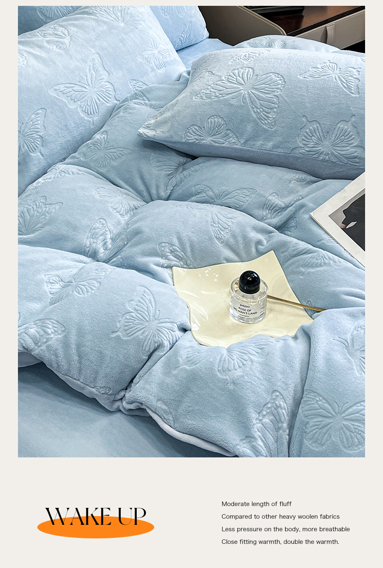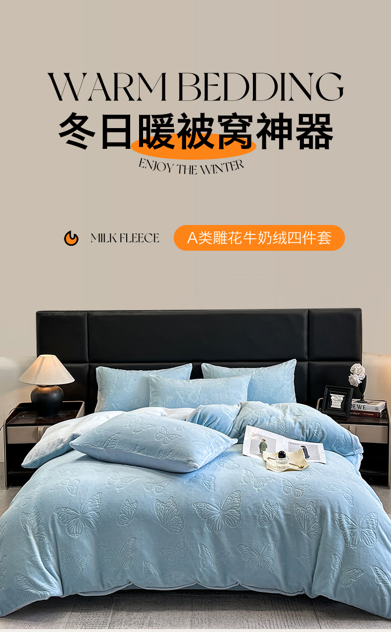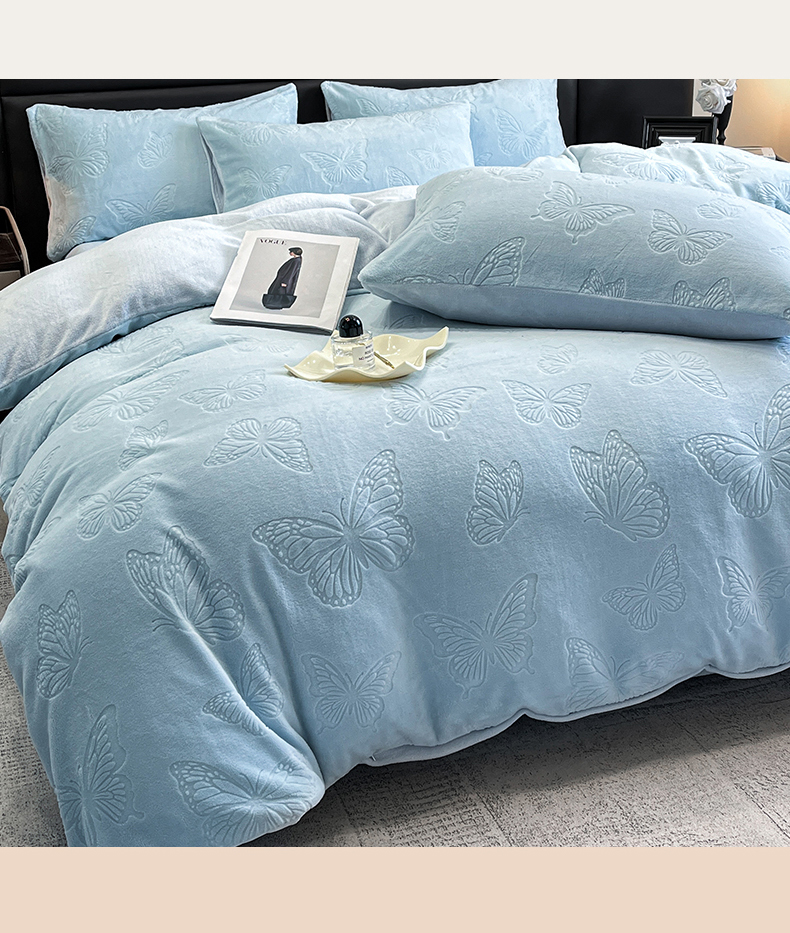 星座家纺 2025新款牛奶绒雕花四件套 蝴蝶翩翩-蓝