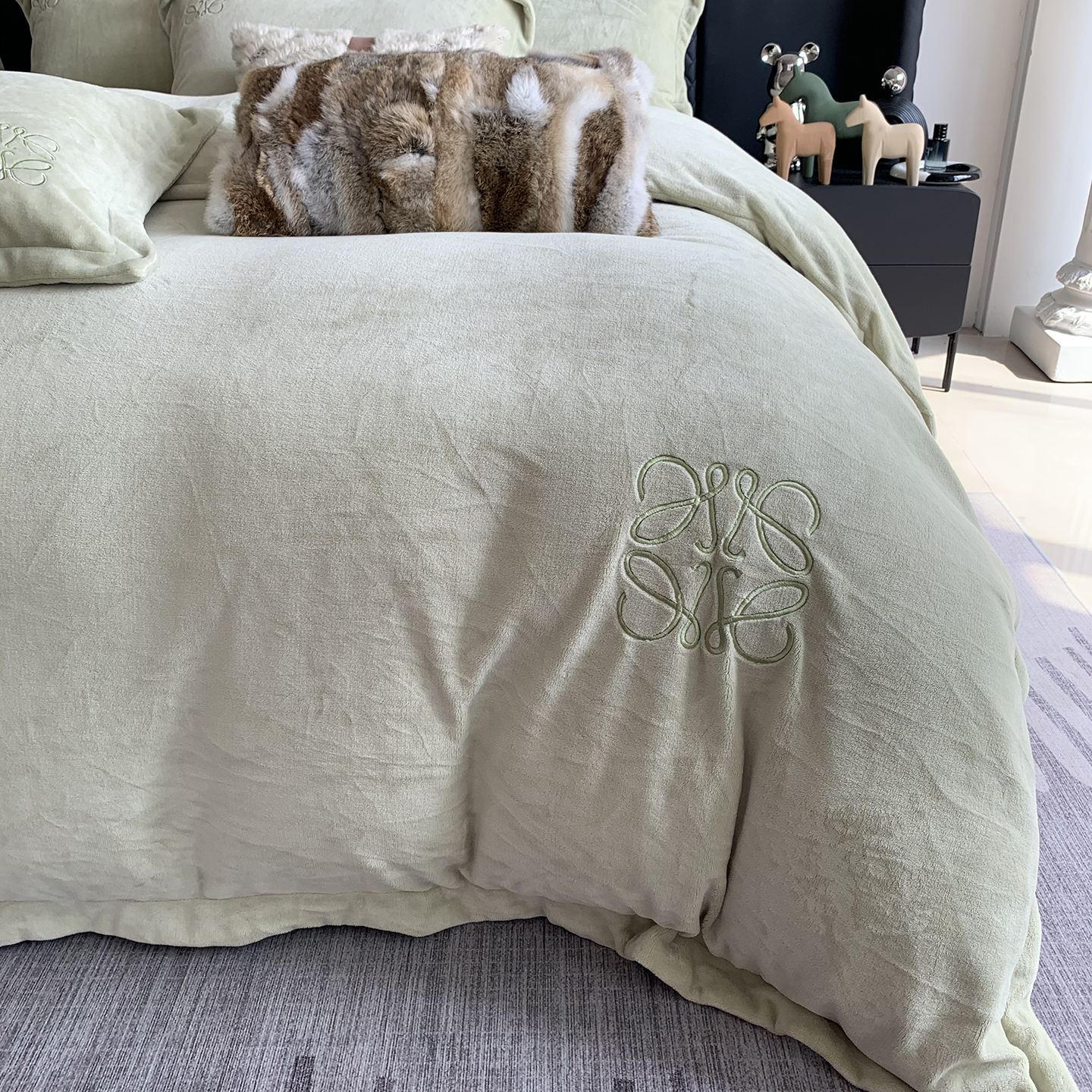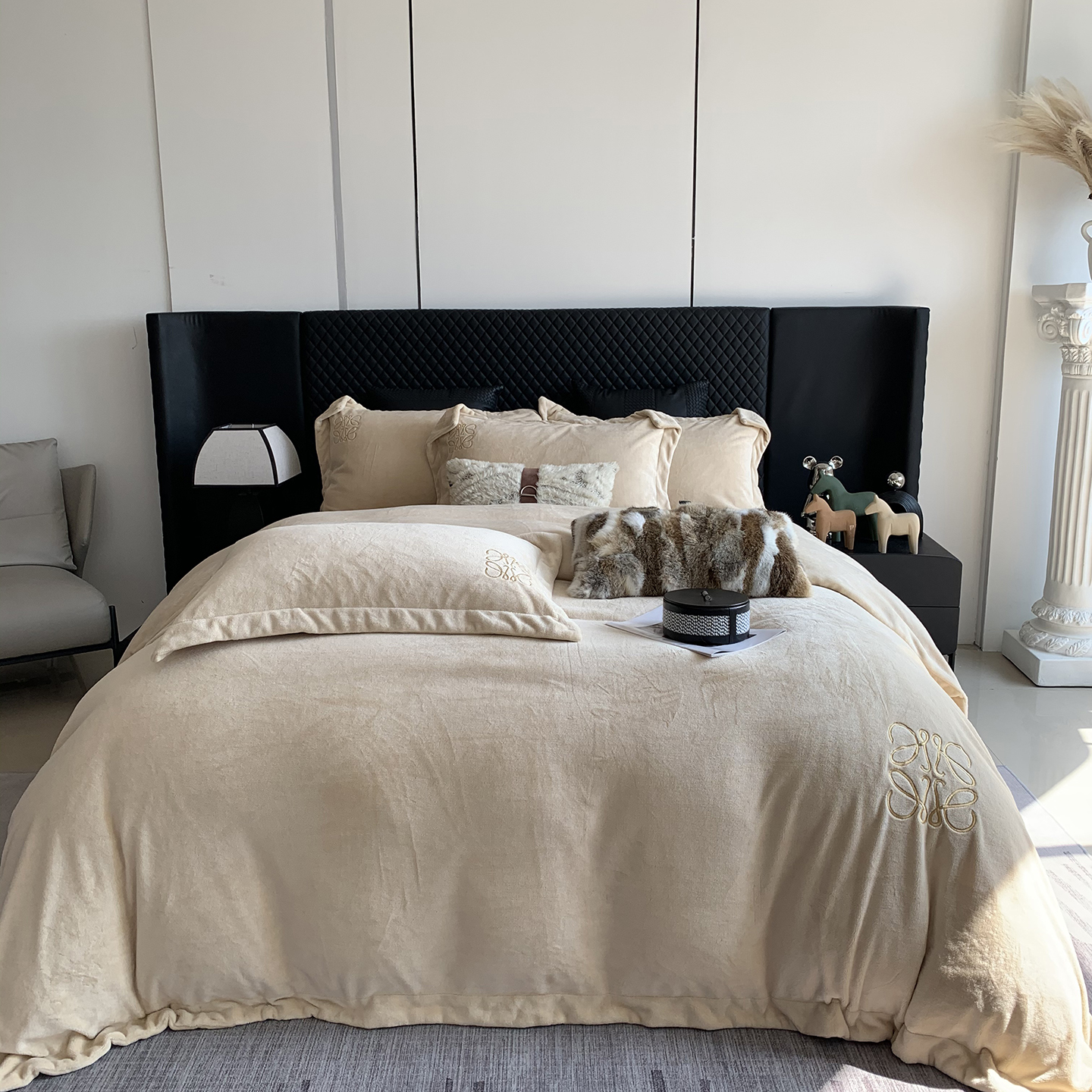 莱豫家纺 2025秋冬新品加厚牛奶绒刺绣款四件套宽边工艺全消光牛奶绒 罗意威普鲁士蓝