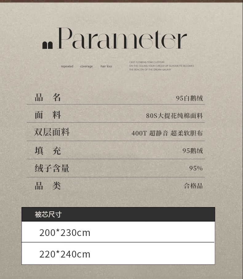 200*230填充1100克95白鹅绒秋冬被 | ¥1660.00 |