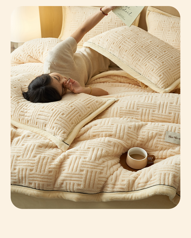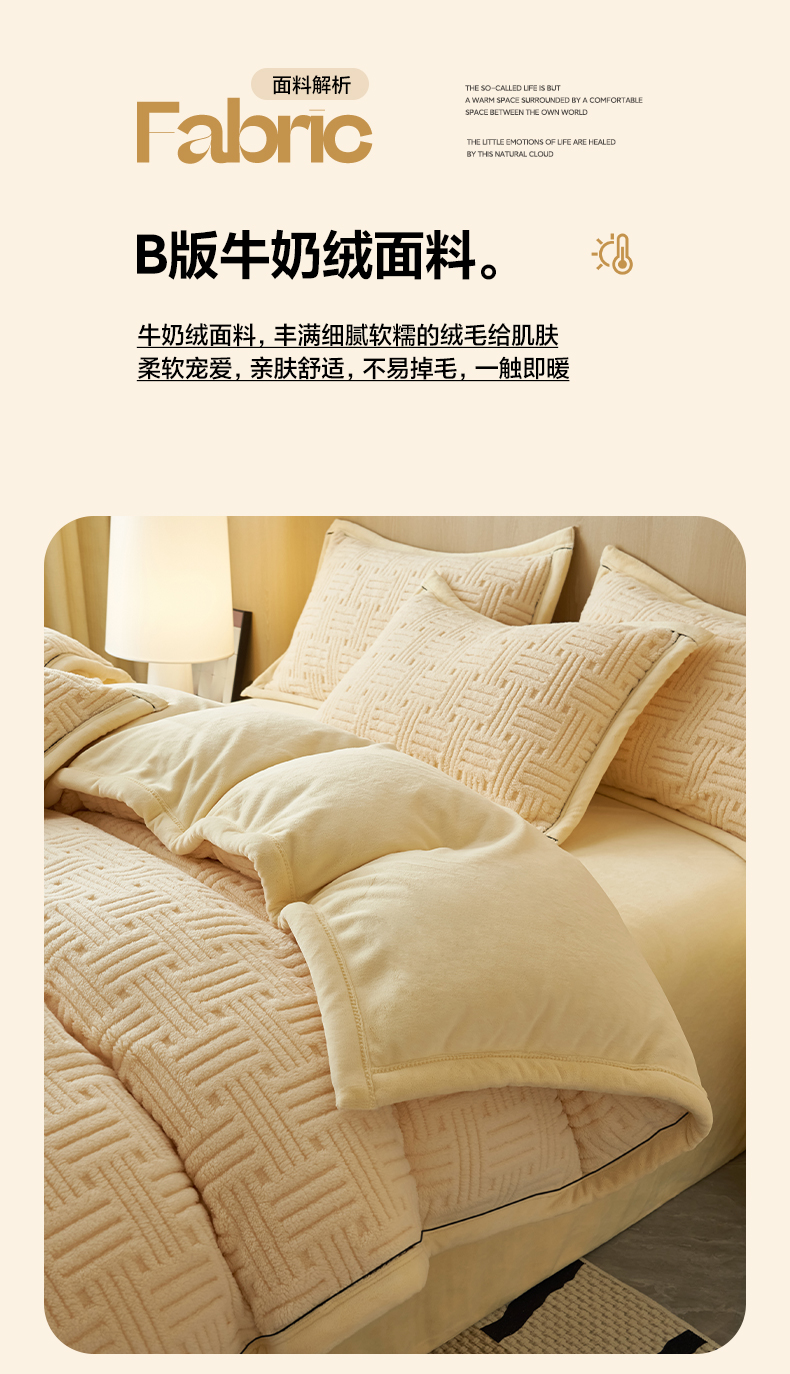 • 91家纺网 家纺一手货源 找家纺 晨曦家纺 2025新款230克加厚保暖塔芙绒牛奶绒提花单被套-简爱 简爱-奶黄