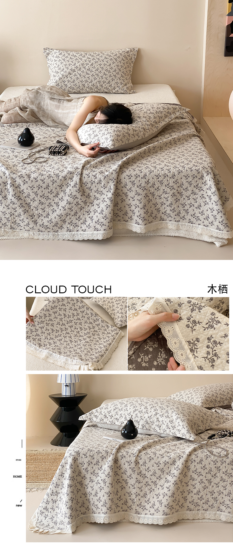 商品名称:麻依 2025新款安心棉四层纱布床盖三件套 漫语