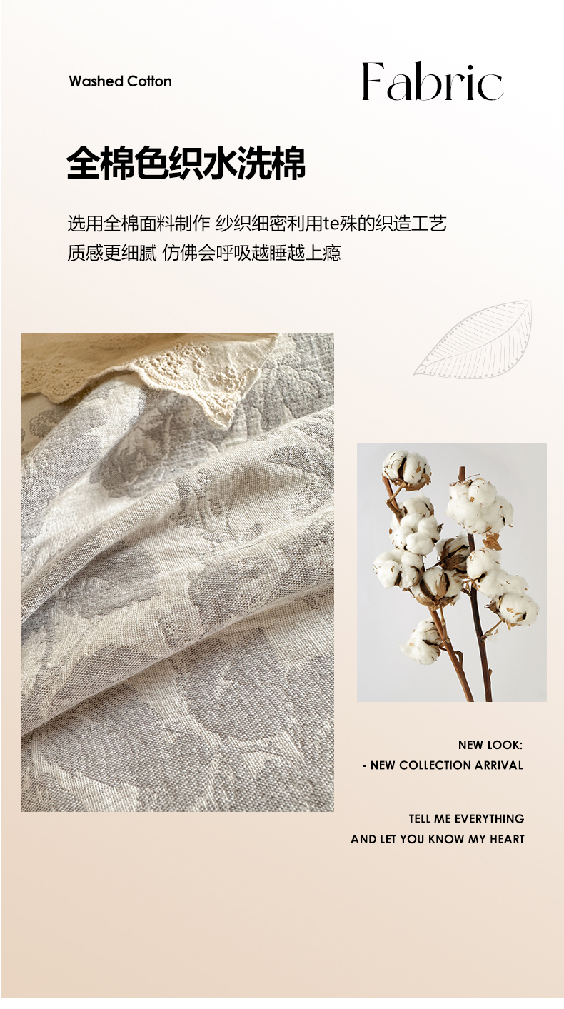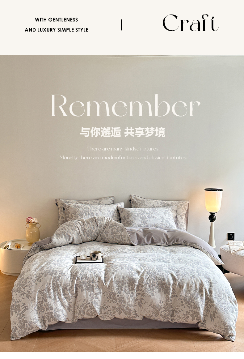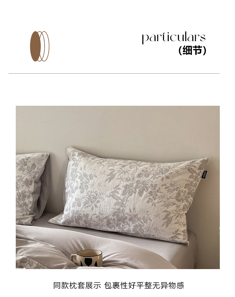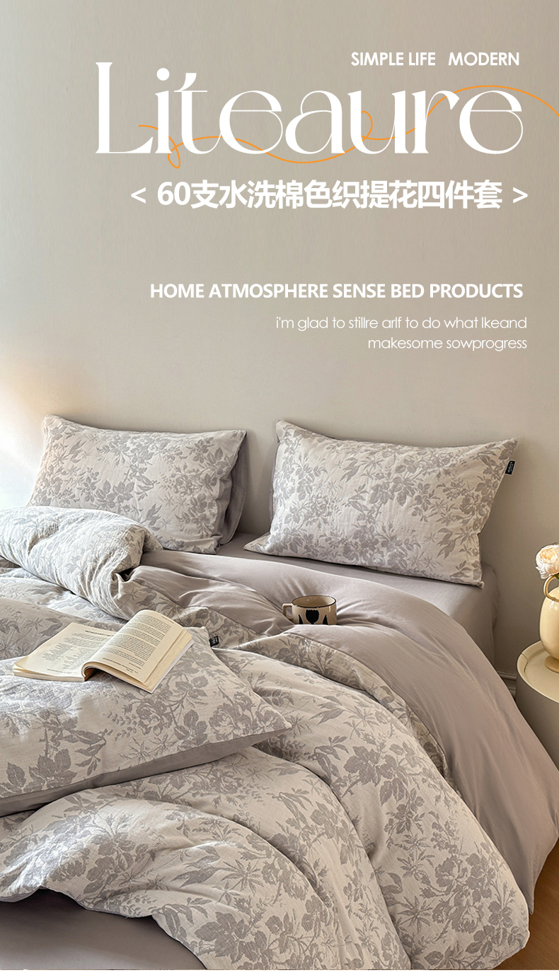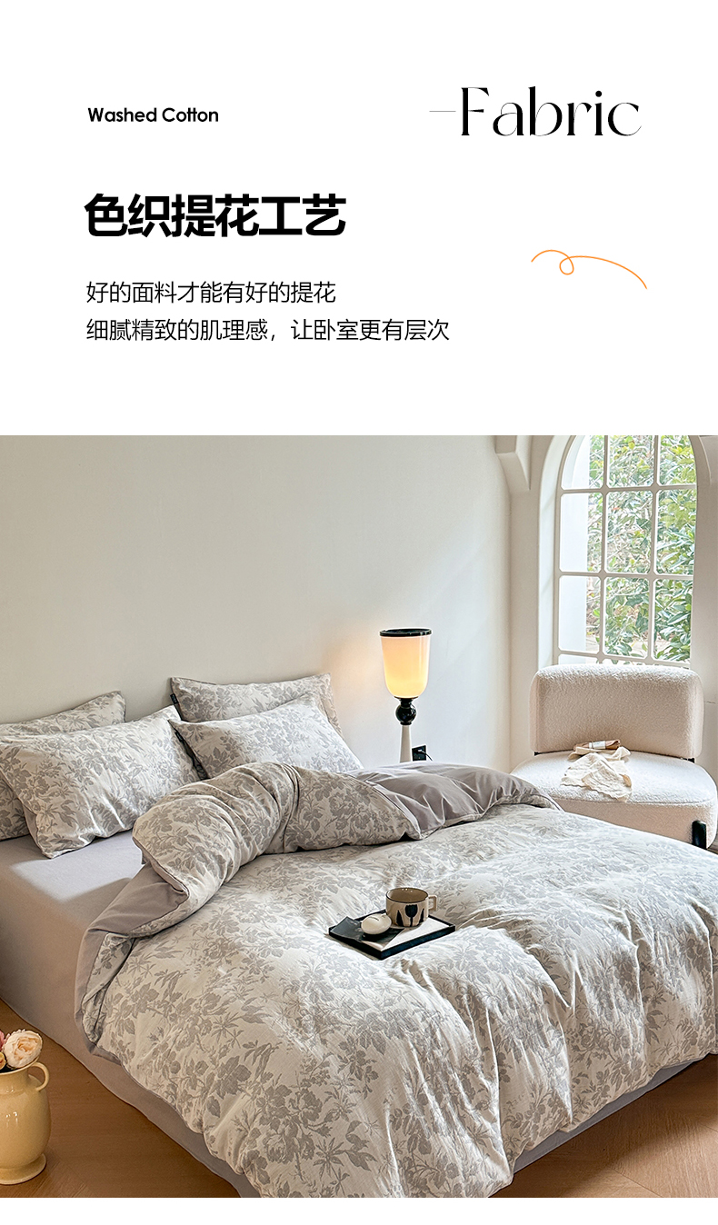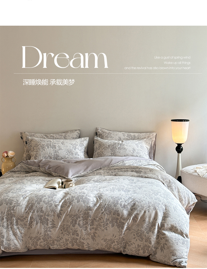 当前位置: 91家纺网 > 商品网购 > 床品套件 > 四件套 > 水洗棉四件套 > 宜代光年 2025新款60s水洗棉提花系列四件套-第一批-场景一 繁花-灰