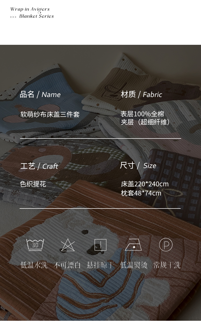 麻依 2025新款软萌纱布床盖三件套(控价:229元) 西单小狗