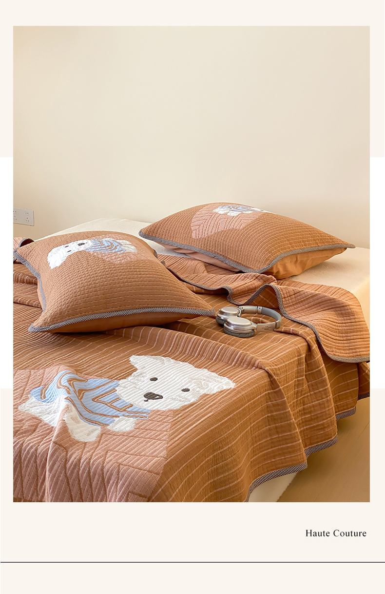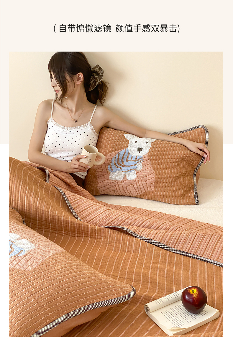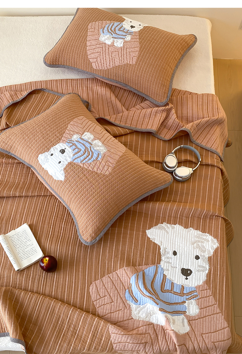 商品名称:麻依 2025新款软萌纱布床盖三件套(控价:229元) 西单小狗
