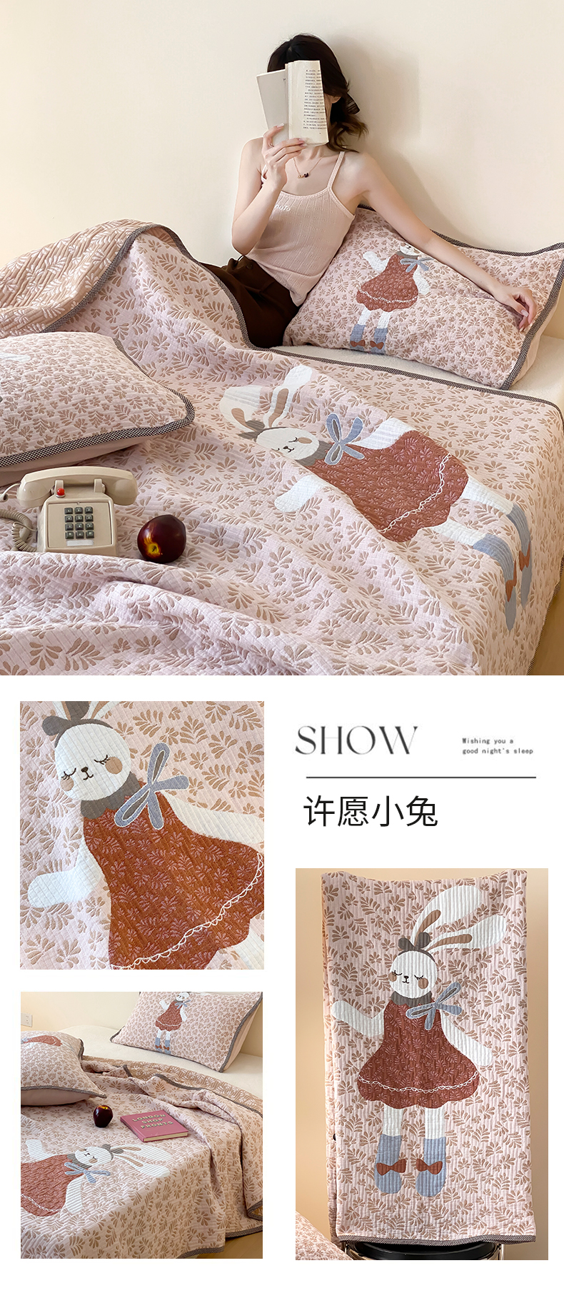 (总)麻依 2025新款安心棉床盖三件全棉四层纱布床单,粉色KT猫,花园小兔,凯蒂的快乐,可爱鸭鸭,可可猫咪-奶茶,可可猫咪-深咖,蓝色熊猫,团团KT,小熊格格,心心领结,欣欣樱桃,雪漫,樱桃兔猫,组合