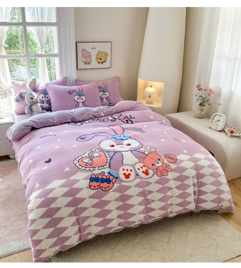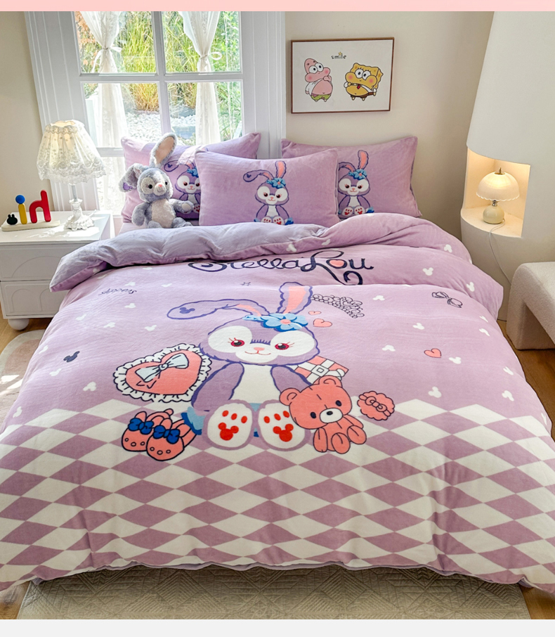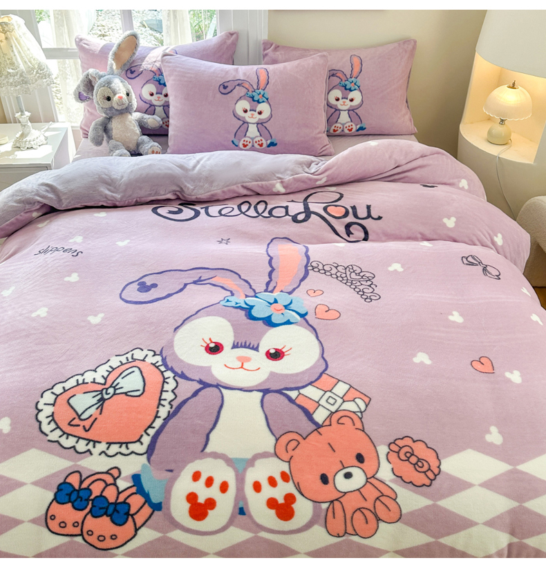 (总)一电 2025新款冬季双面牛奶珊瑚绒床上四件套法兰绒床品加绒被套床单三件套-第三批,公主库洛米,天使库洛米,甜筒库洛米,小兔子,圆点库洛米