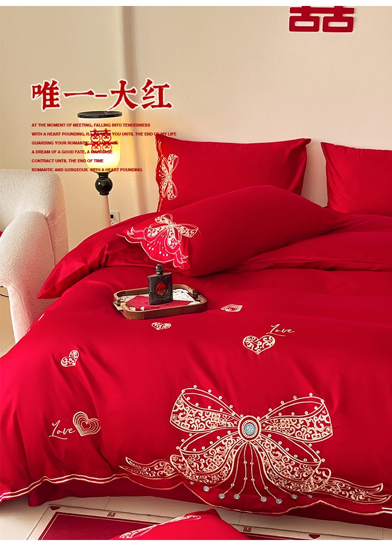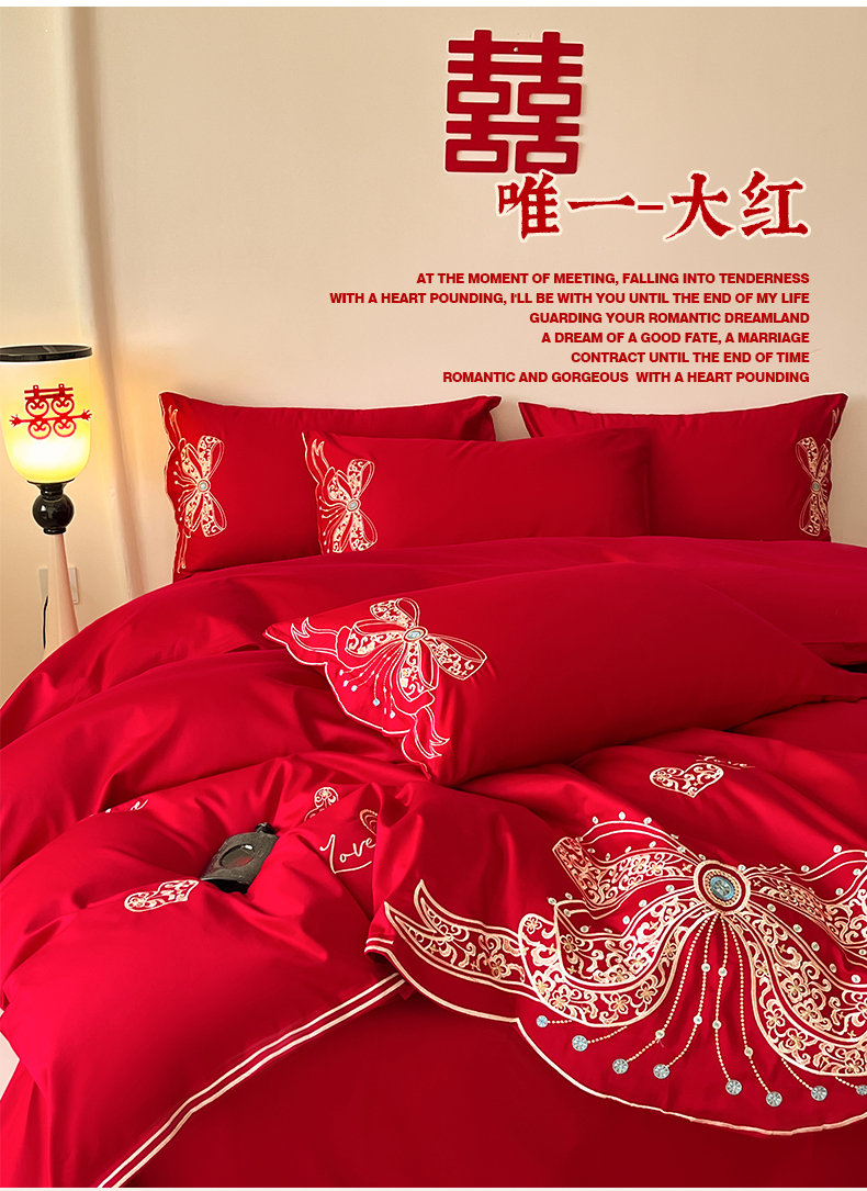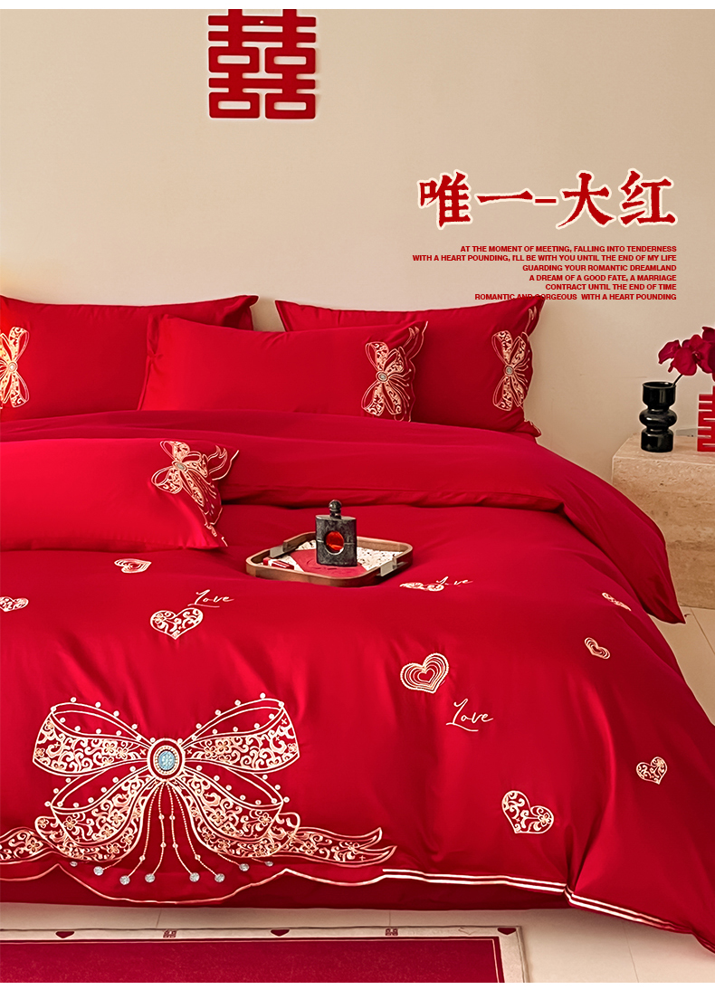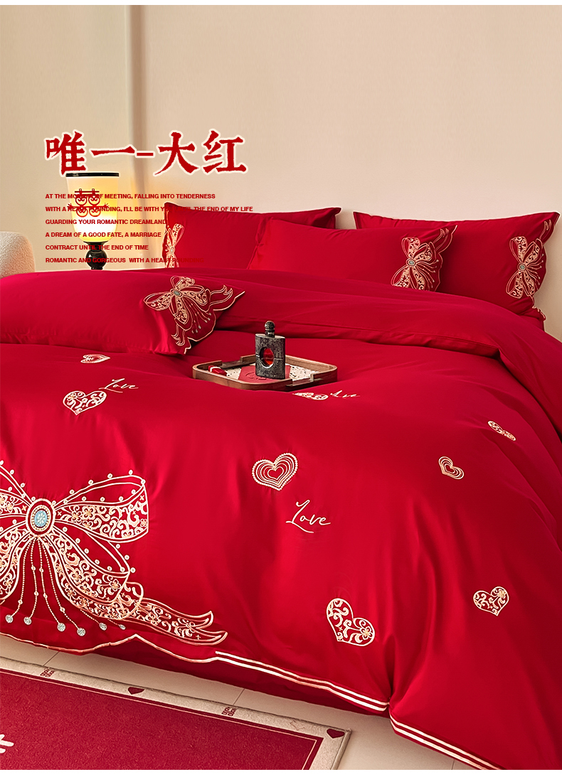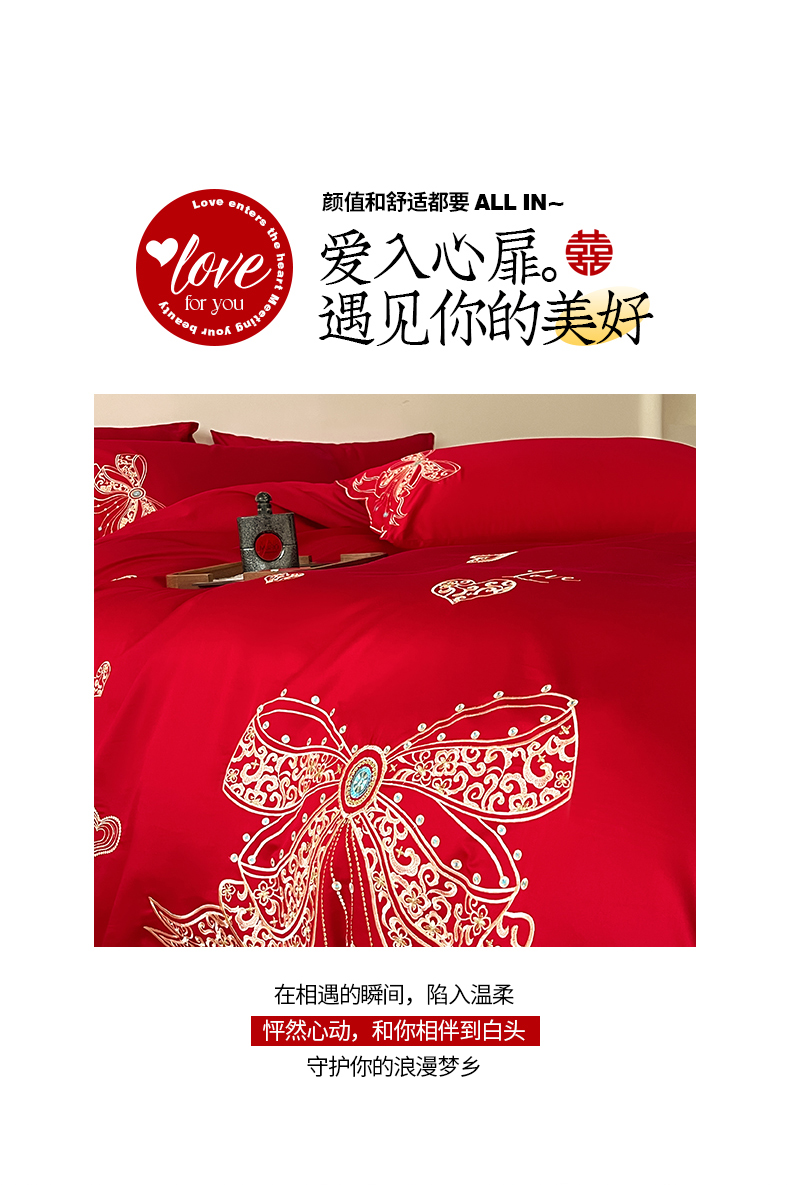 当前位置: 91家纺网 > 商品网购 > 床品套件 > 四件套 > 婚庆四件套 > 置顶家纺 2025新款亲肤磨毛刺绣婚庆四件套系列-实拍 唯一-大红