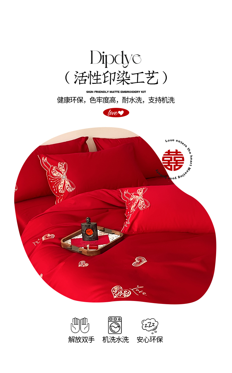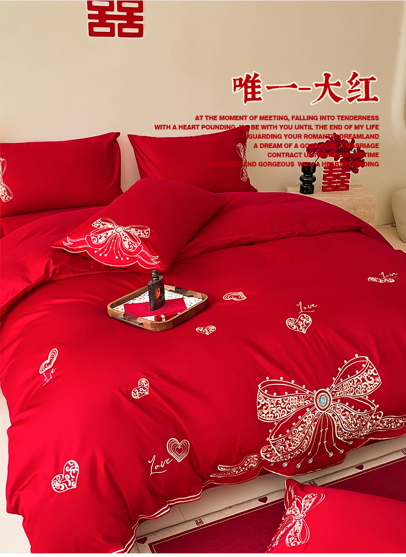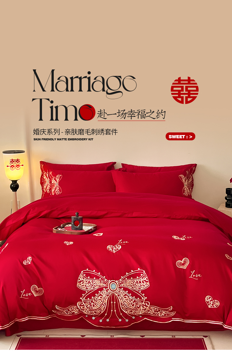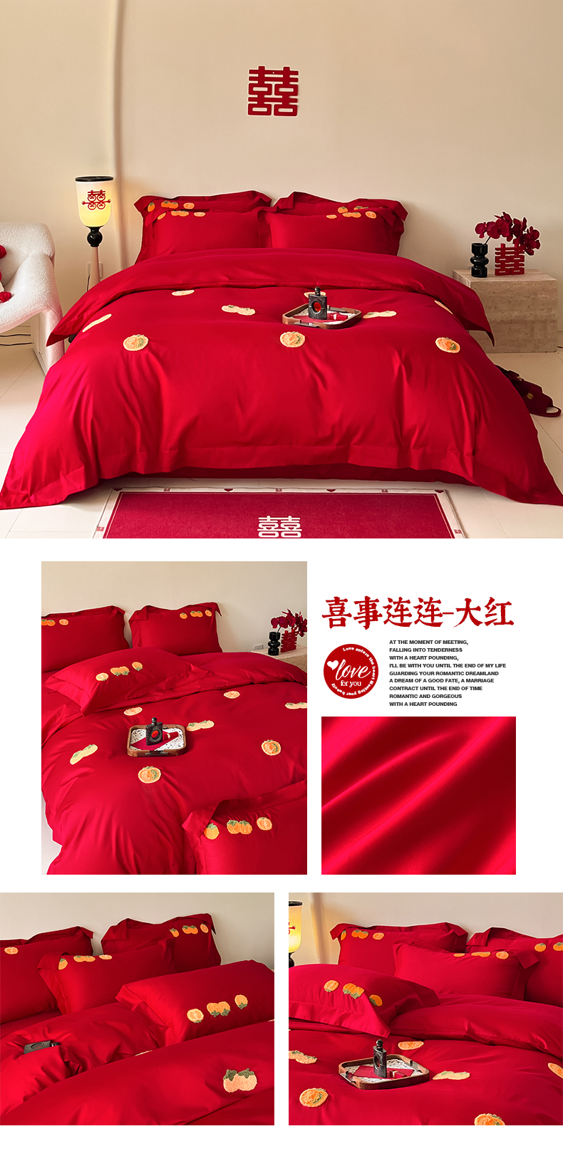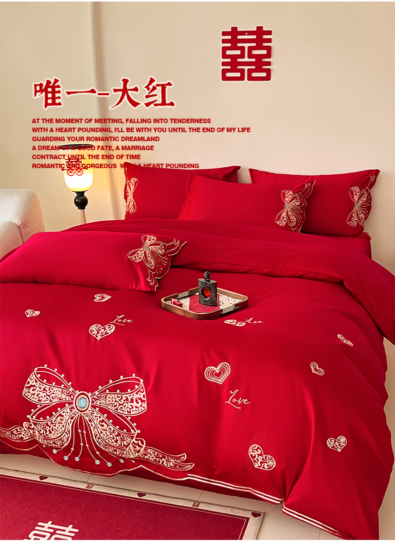 当前位置: 91家纺网 > 商品网购 > 床品套件 > 四件套 > 婚庆四件套 > 置顶家纺 2025新款亲肤磨毛刺绣婚庆四件套系列-实拍 唯一-大红