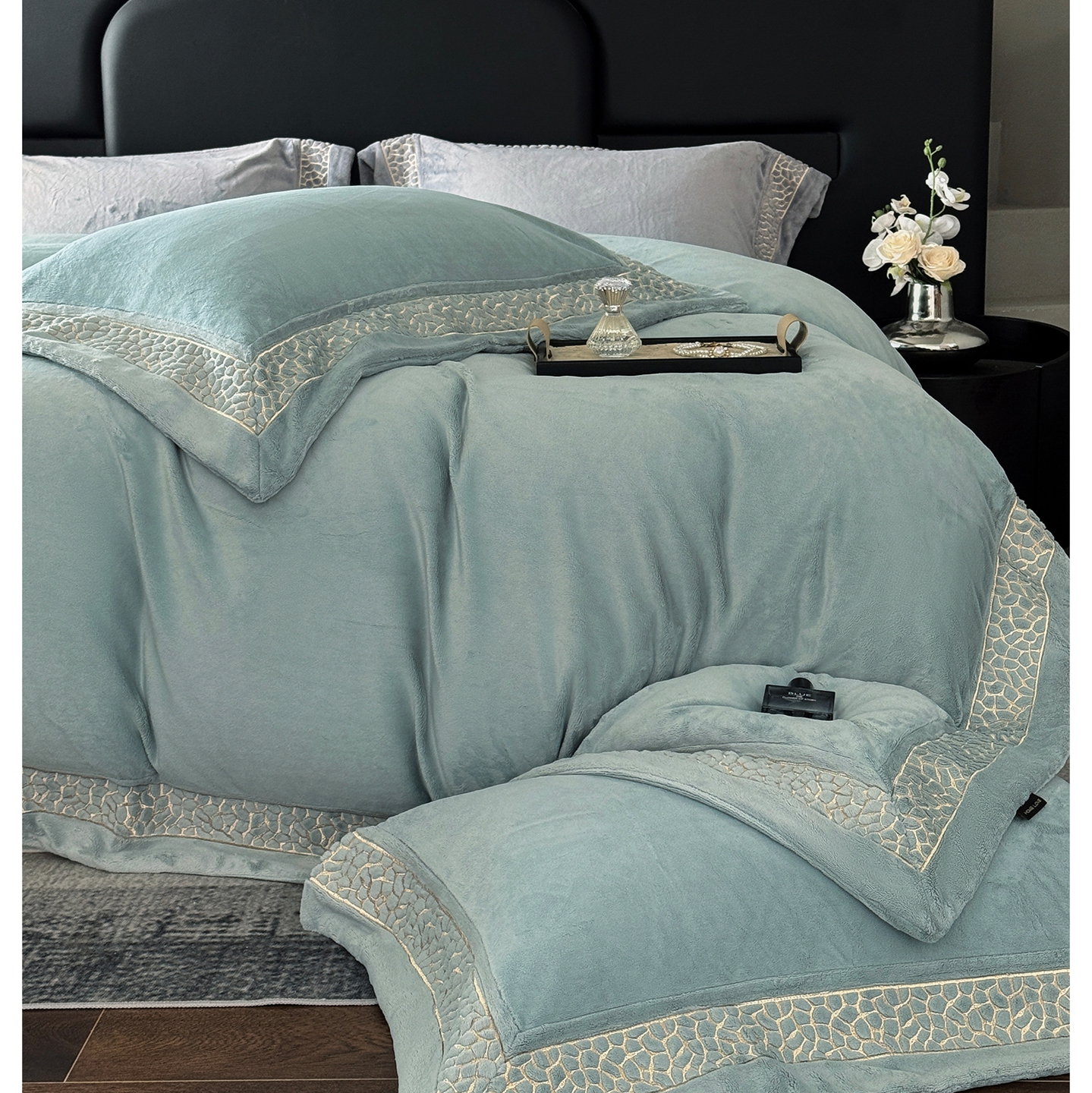 商品名称:芯丝路枕业 2025新款暮野蚕丝绒四件套 暮野-云水蓝