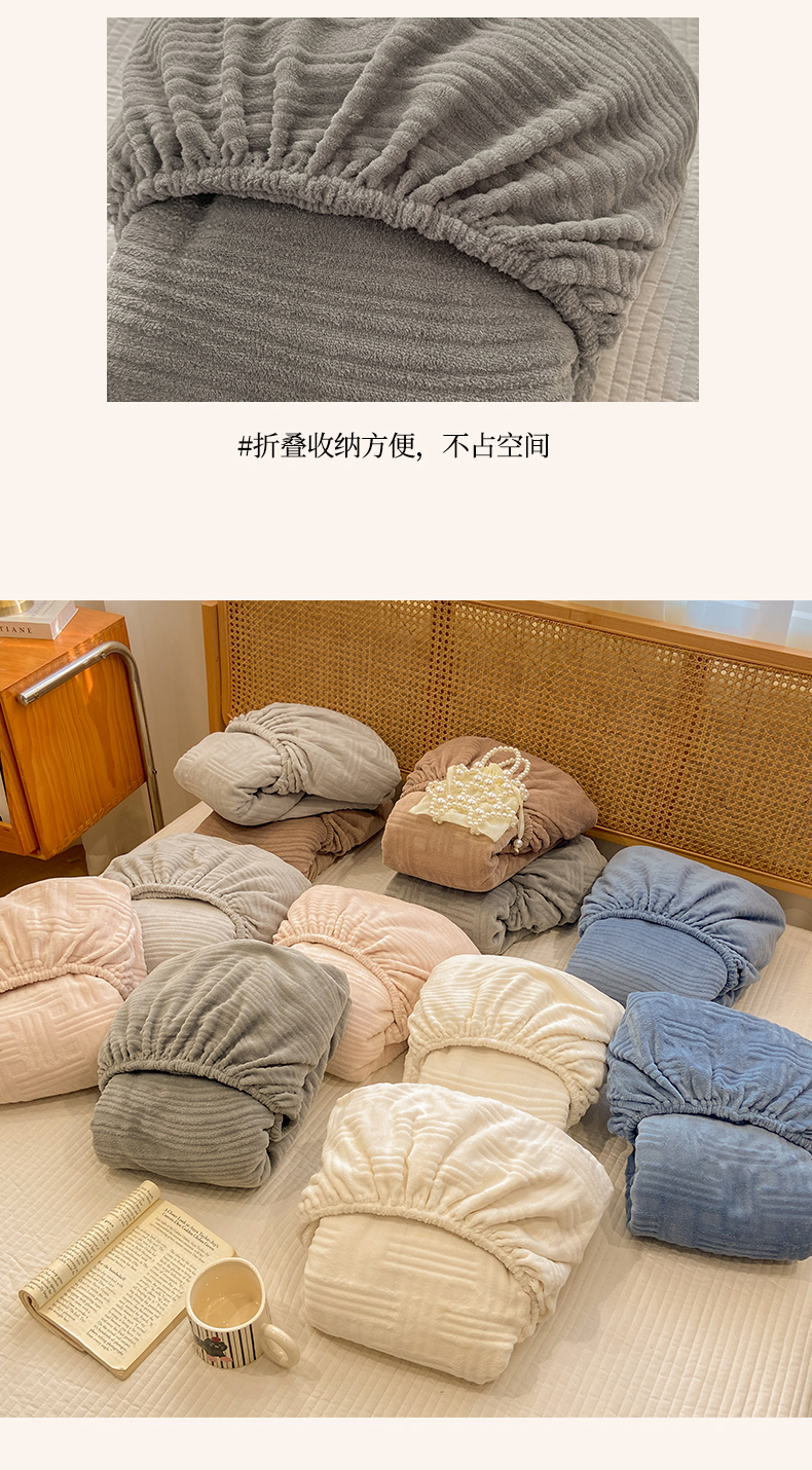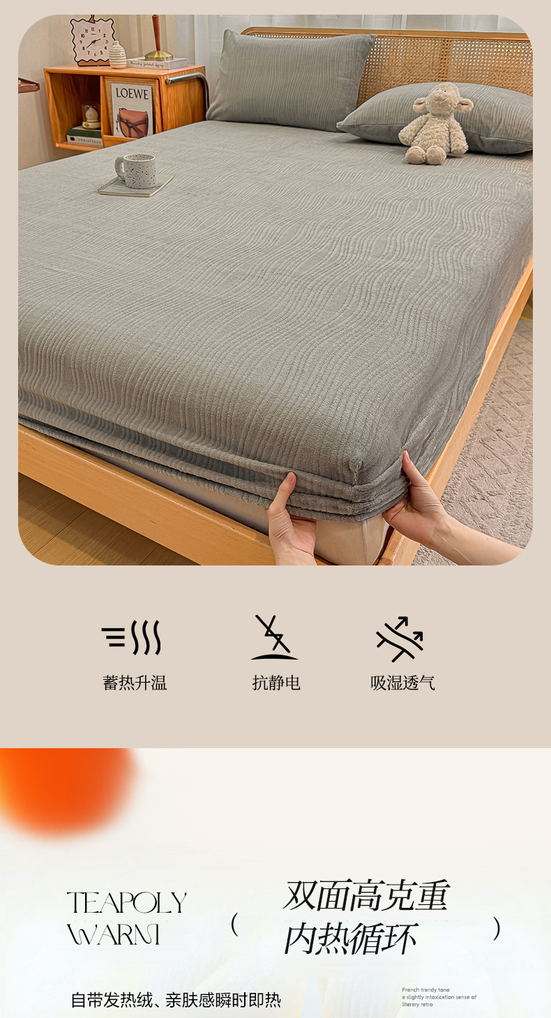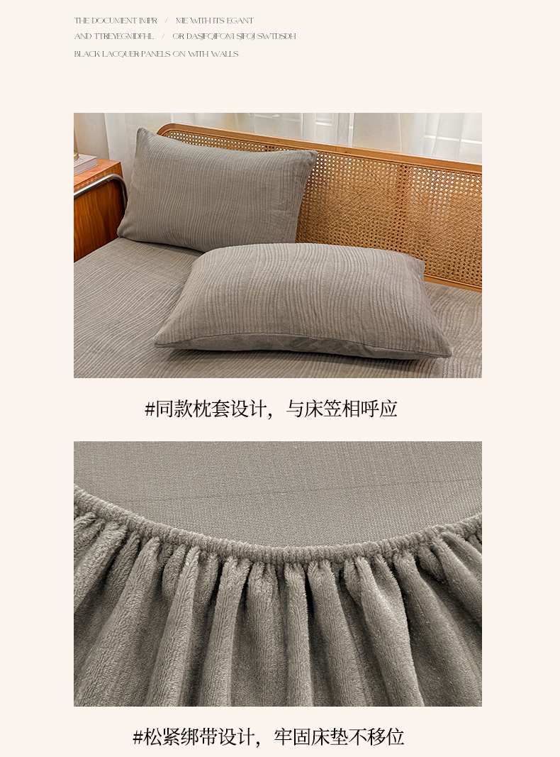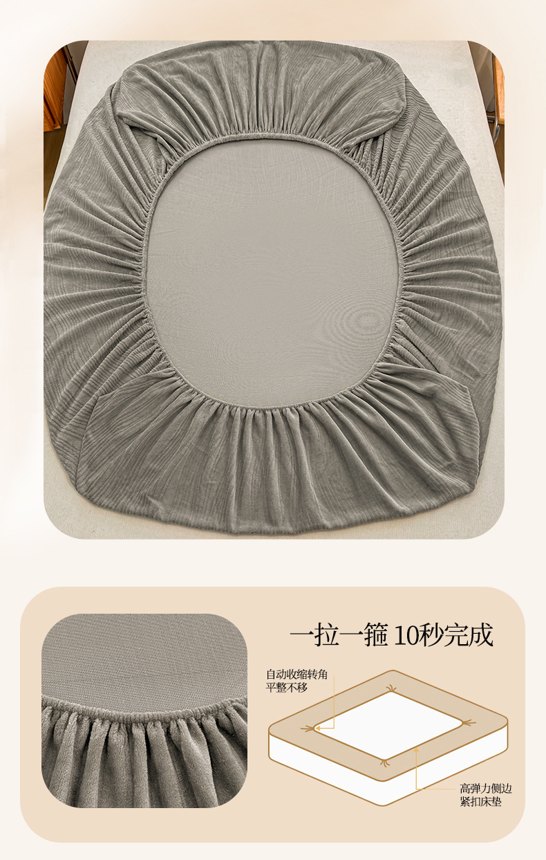 灰鲸 2025新款纯色简约高克重雕花牛奶绒单品床笠 温妮-绅士灰