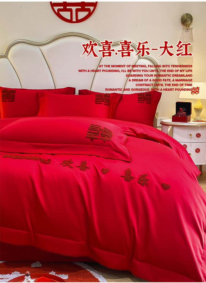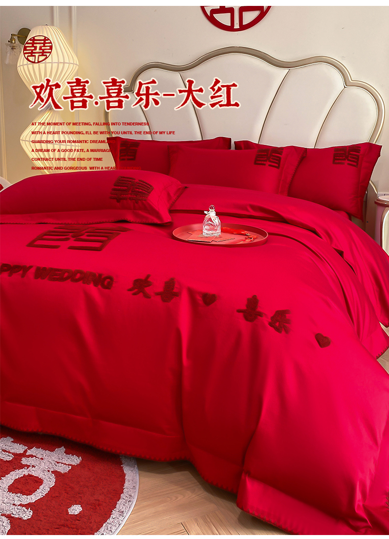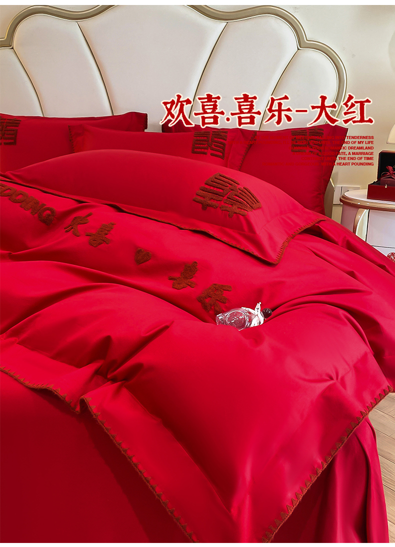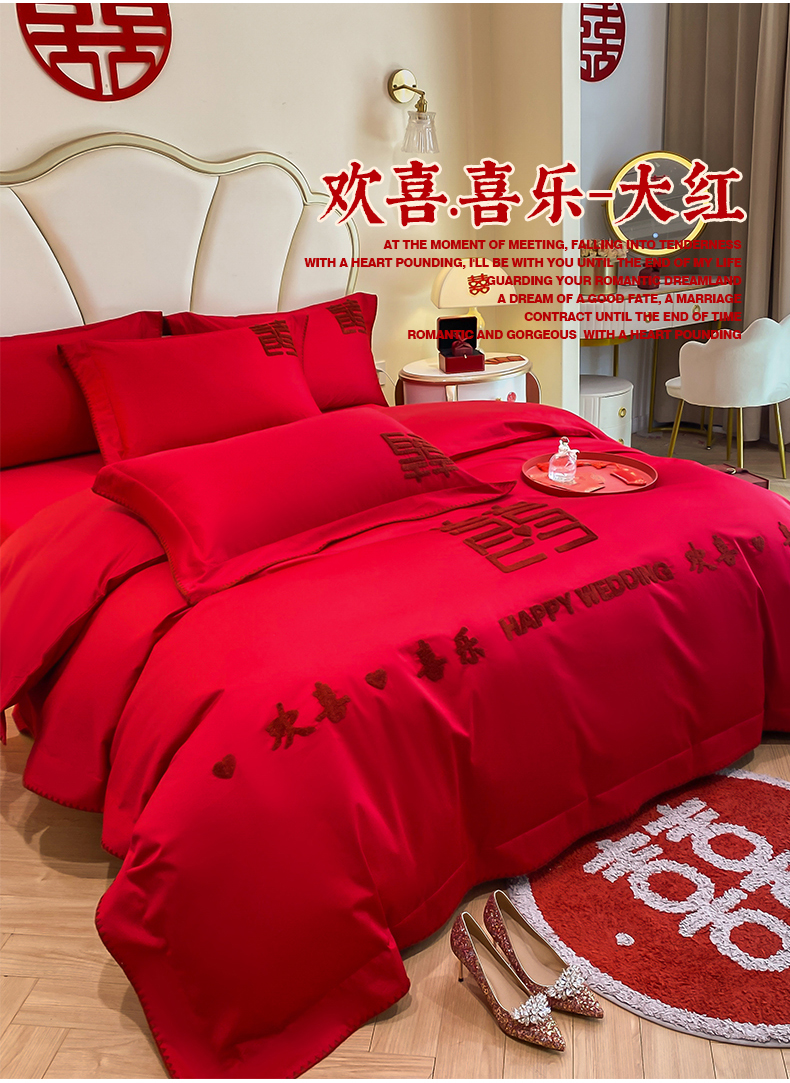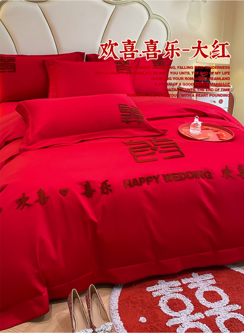 当前位置: 91家纺网 > 商品网购 > 床品套件 > 四件套 > 婚庆四件套 > 置顶家纺 2025新款亲肤磨毛刺绣婚庆四件套系列-棚拍 欢喜.喜乐-大红