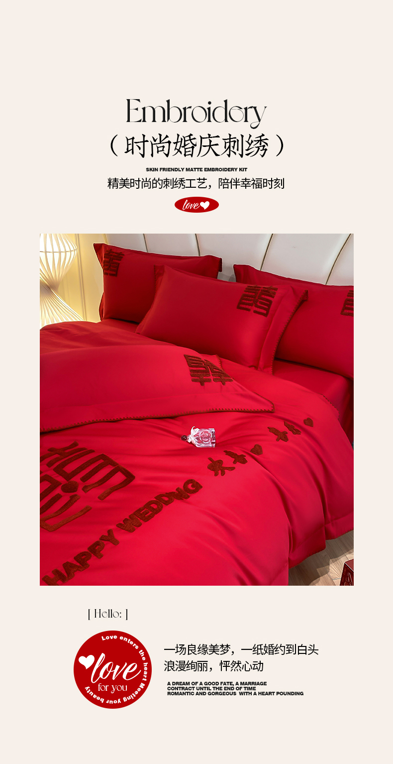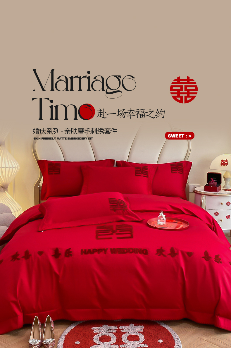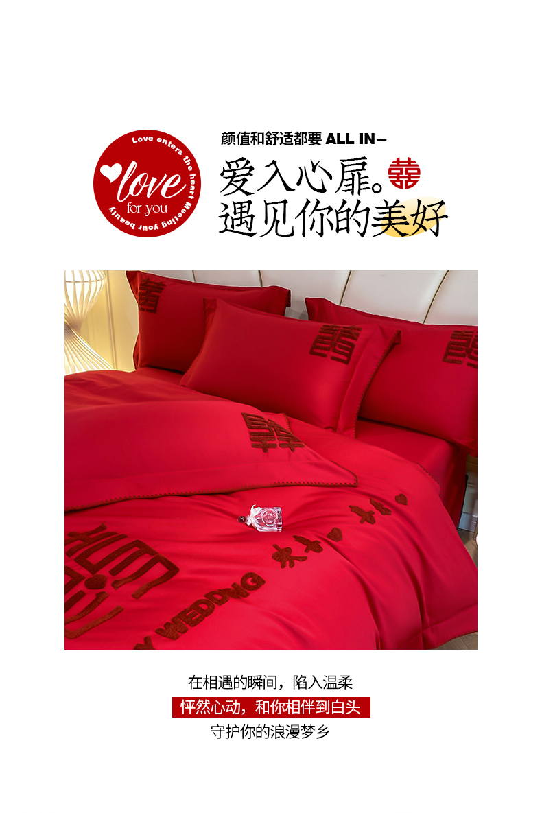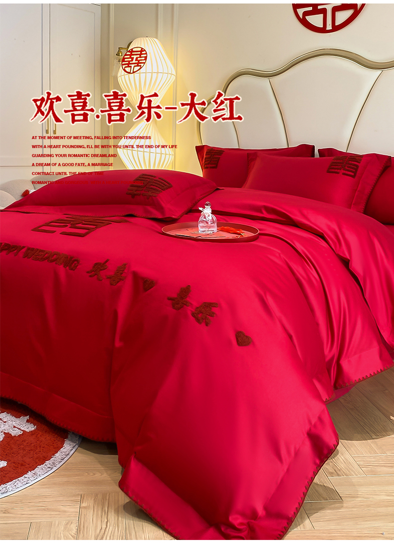 当前位置: 91家纺网 > 商品网购 > 床品套件 > 四件套 > 婚庆四件套 > 置顶家纺 2025新款亲肤磨毛刺绣婚庆四件套系列-棚拍 欢喜.喜乐-大红