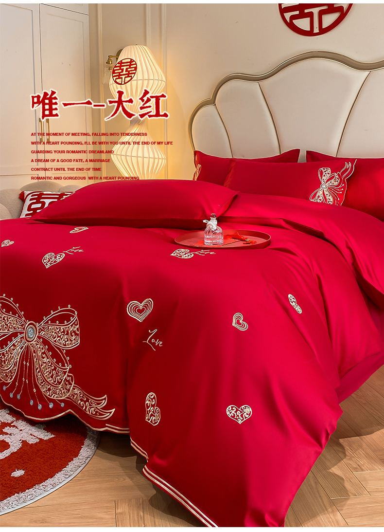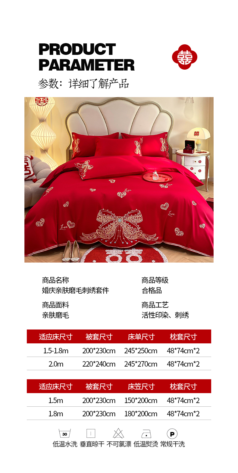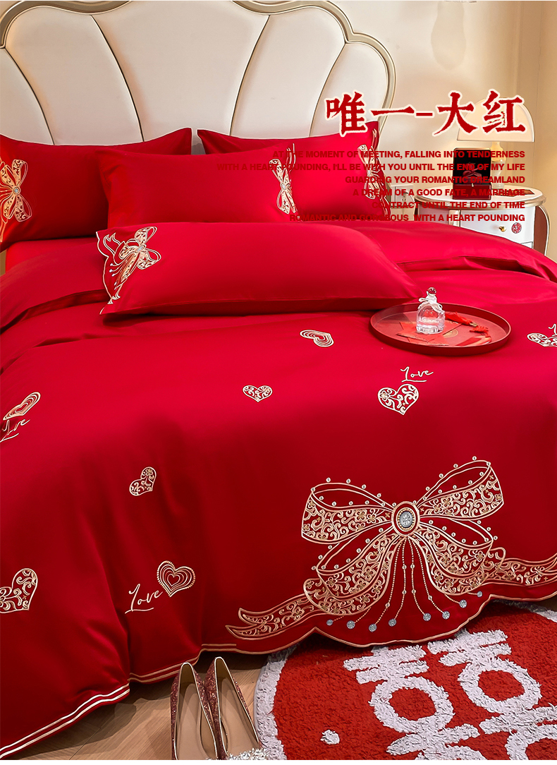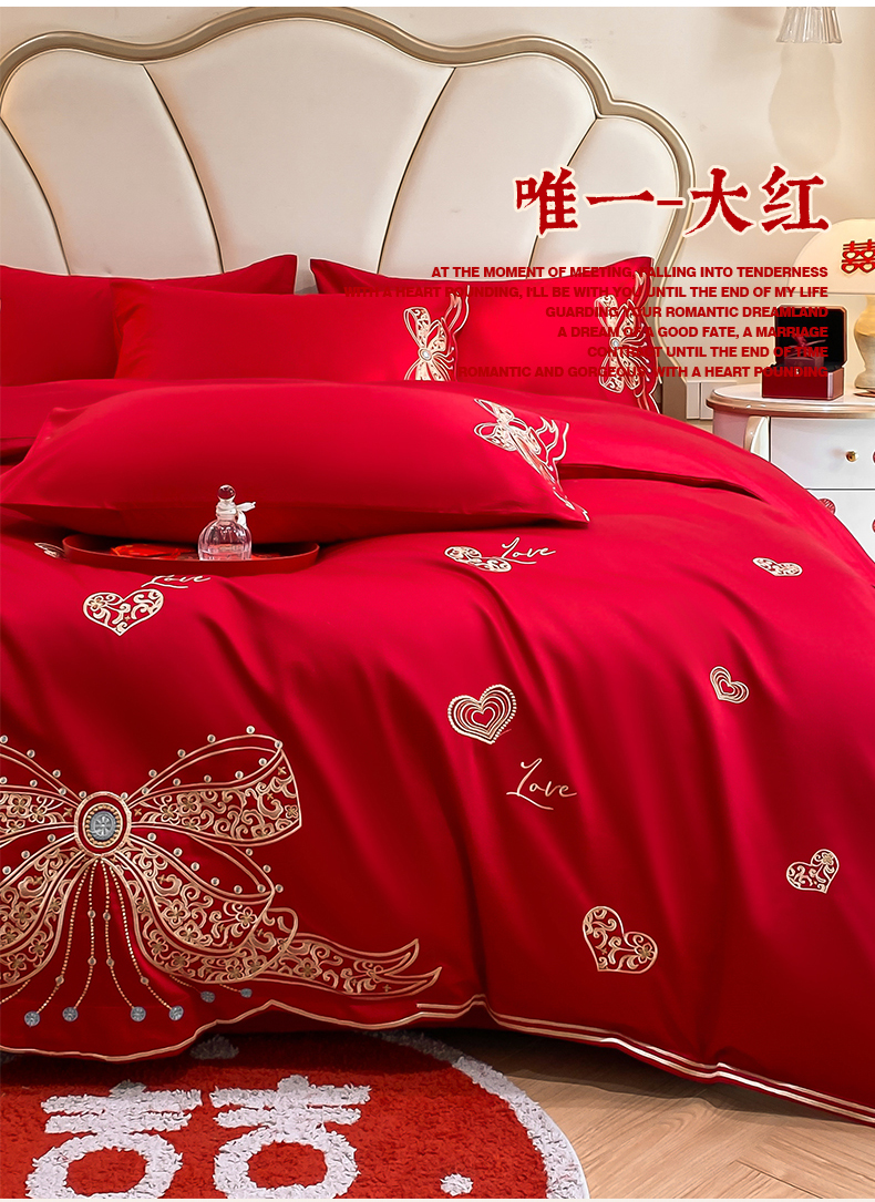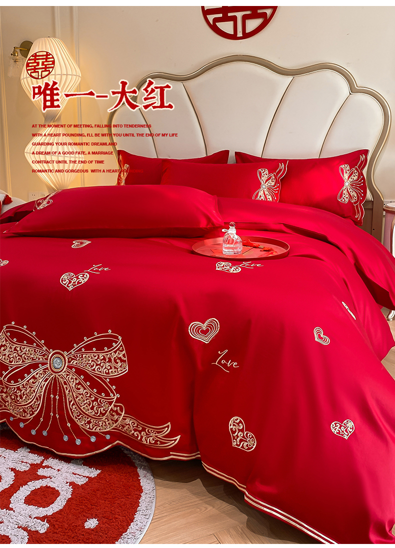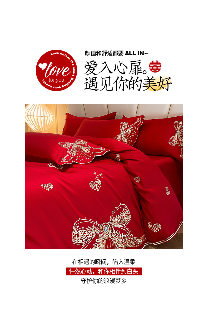 当前位置: 91家纺网 > 商品网购 > 床品套件 > 四件套 > 婚庆四件套 > 置顶家纺 2025新款亲肤磨毛刺绣婚庆四件套系列-棚拍 唯一-大红