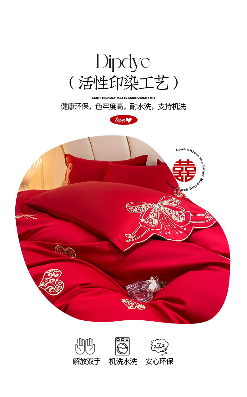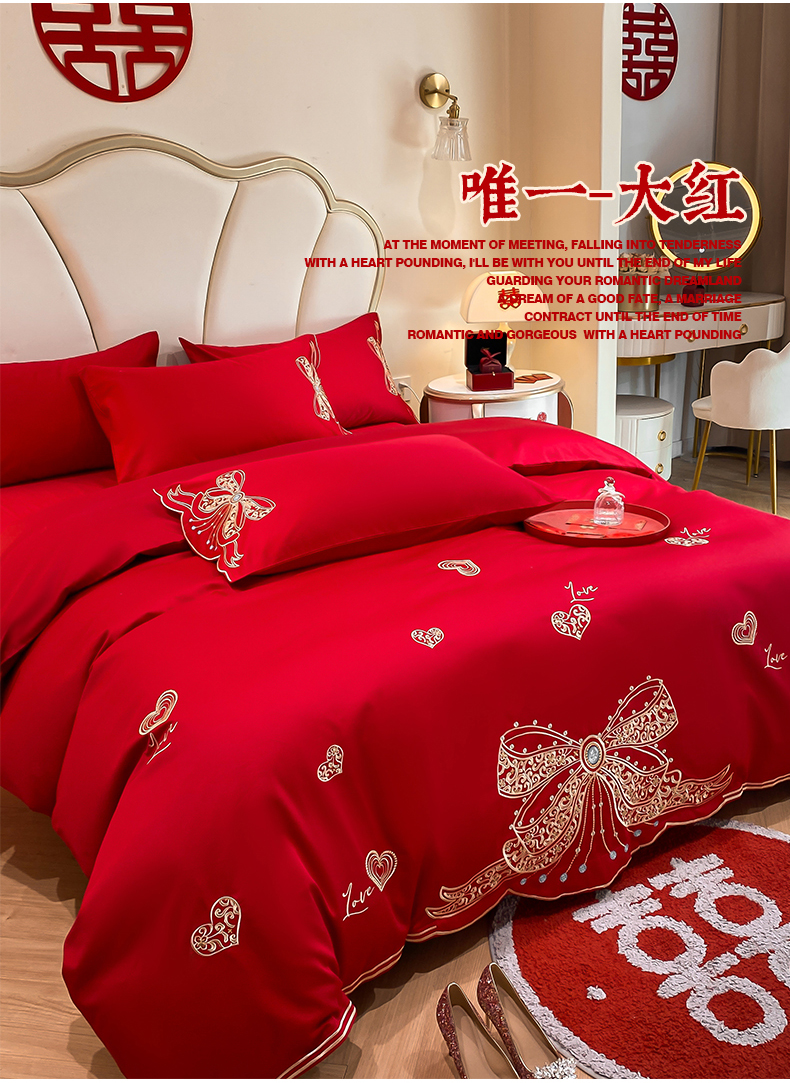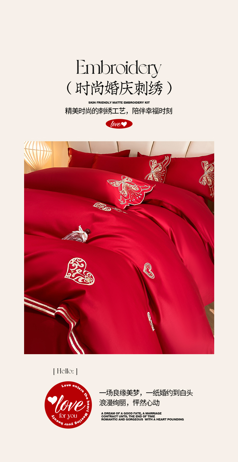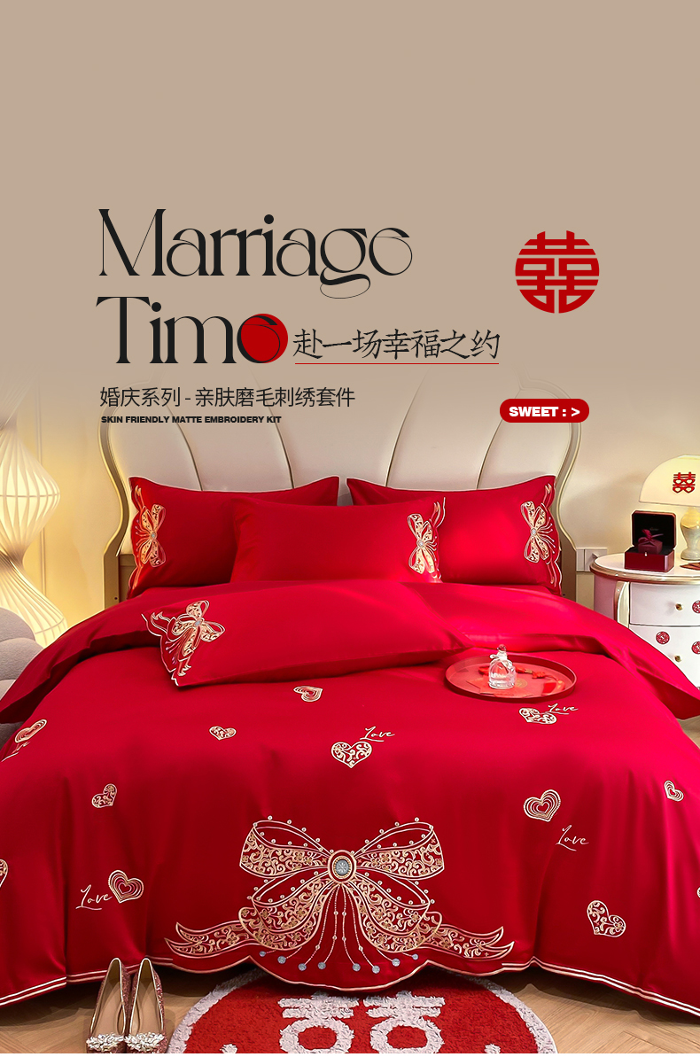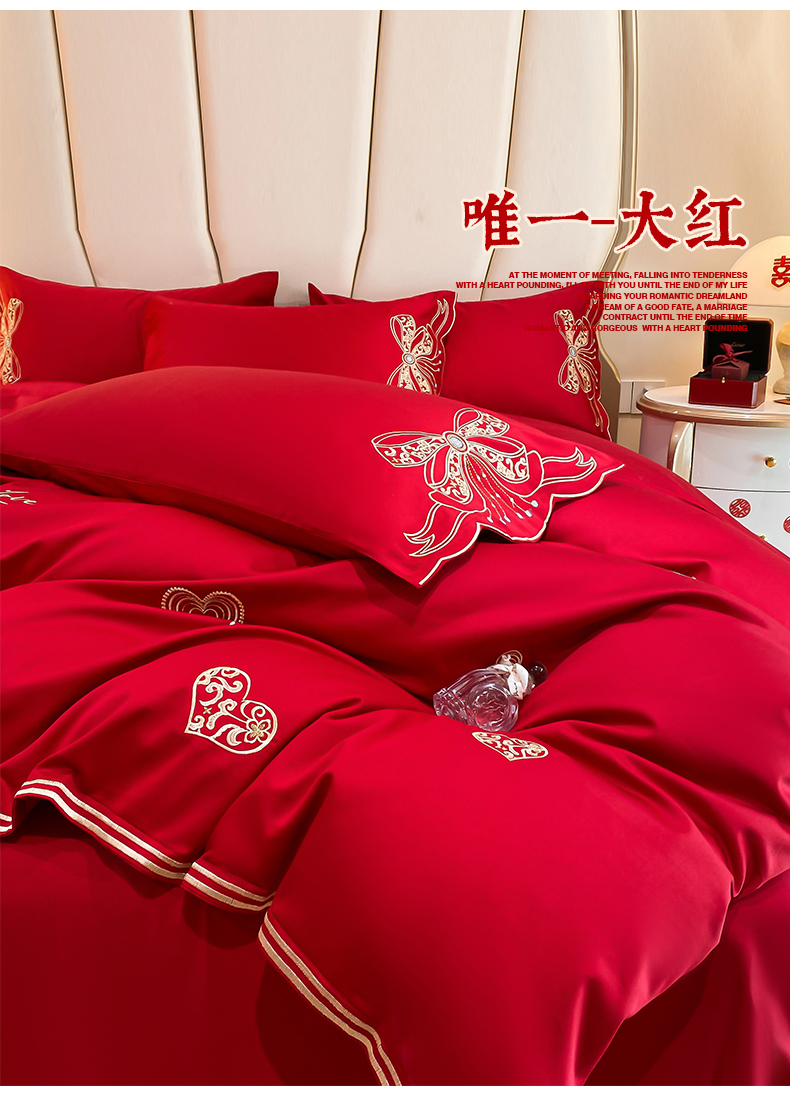 当前位置: 91家纺网 > 商品网购 > 床品套件 > 四件套 > 婚庆四件套 > 置顶家纺 2025新款亲肤磨毛刺绣婚庆四件套系列-棚拍 唯一-大红