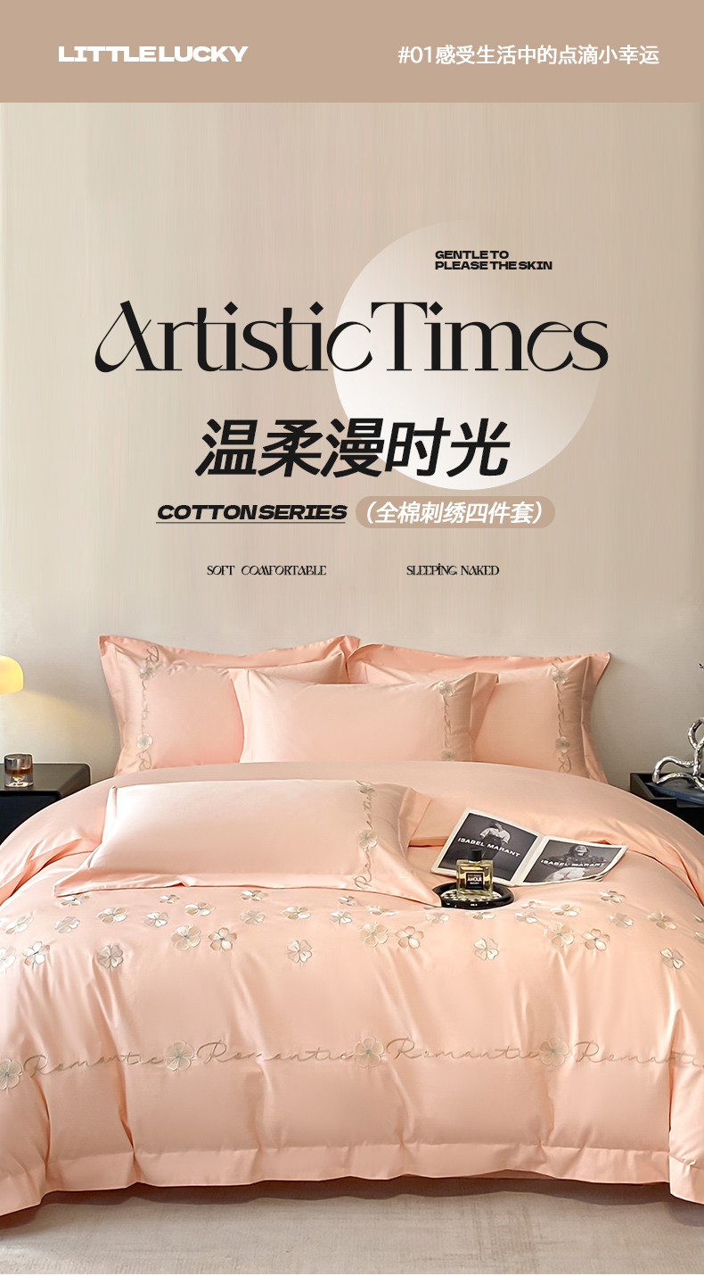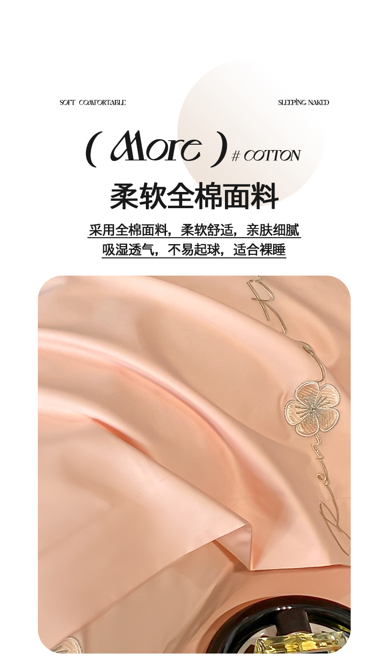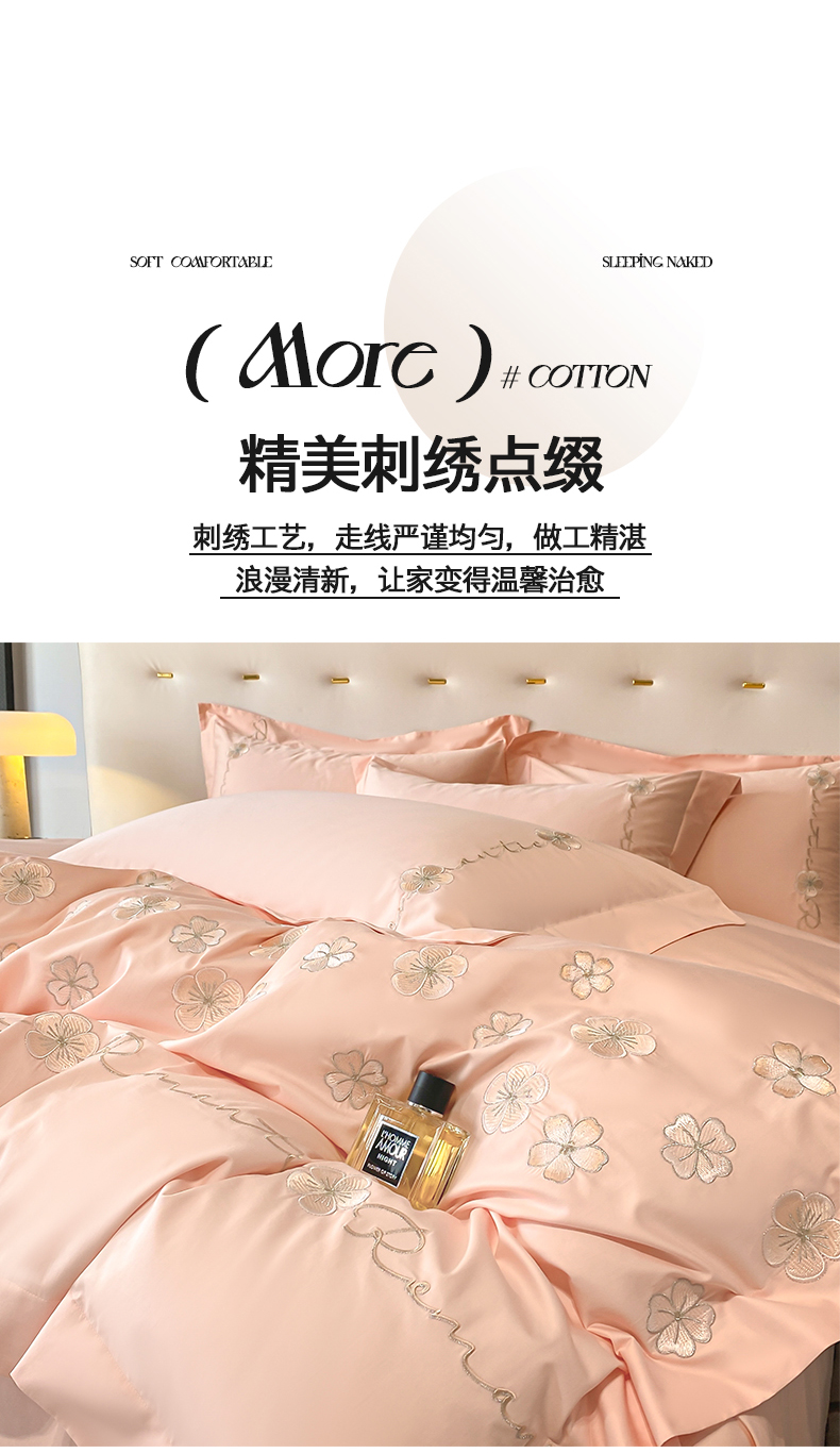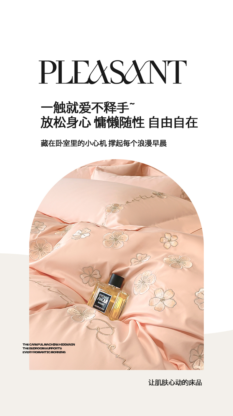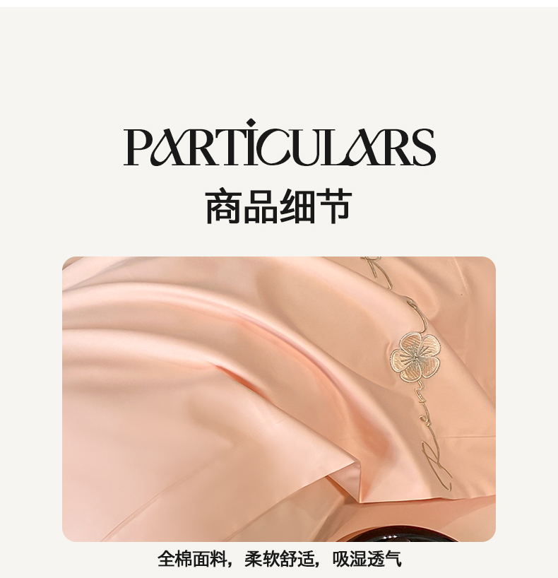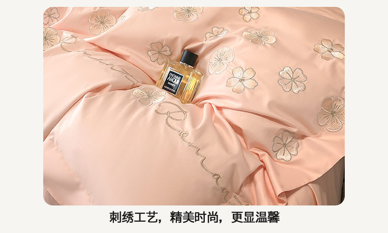 商品名称:置顶家纺 2025新款13372全棉刺绣四件套-桃花朵朵开 桃花朵朵开-粉玉