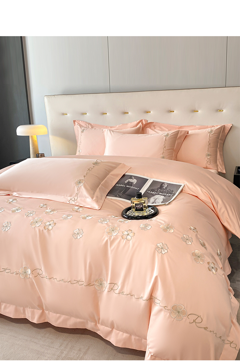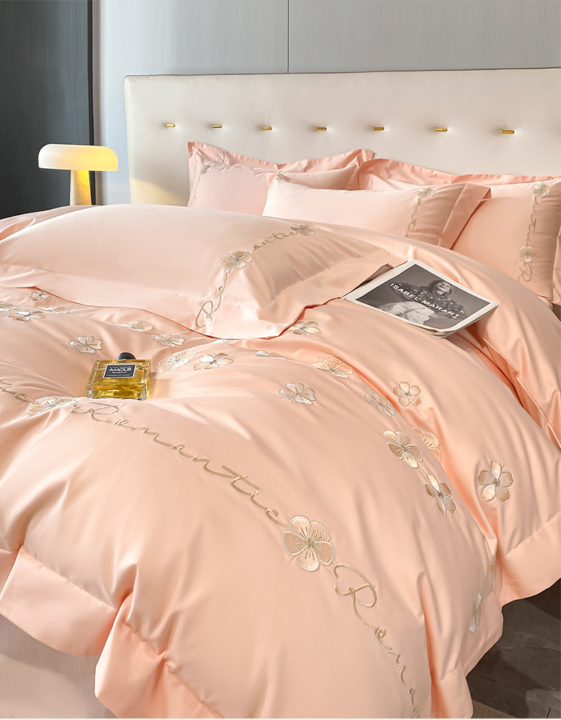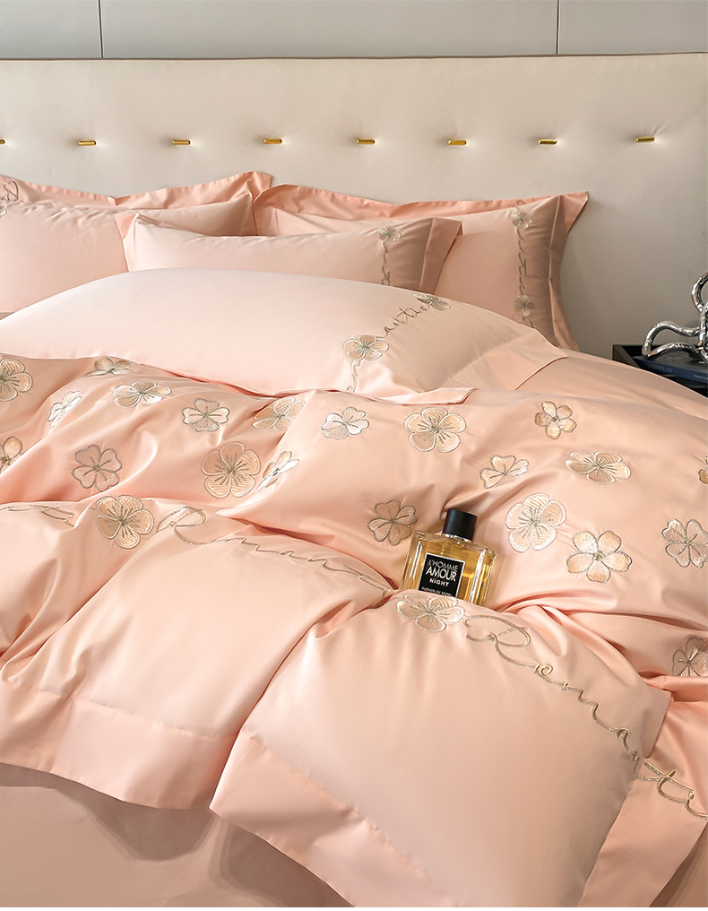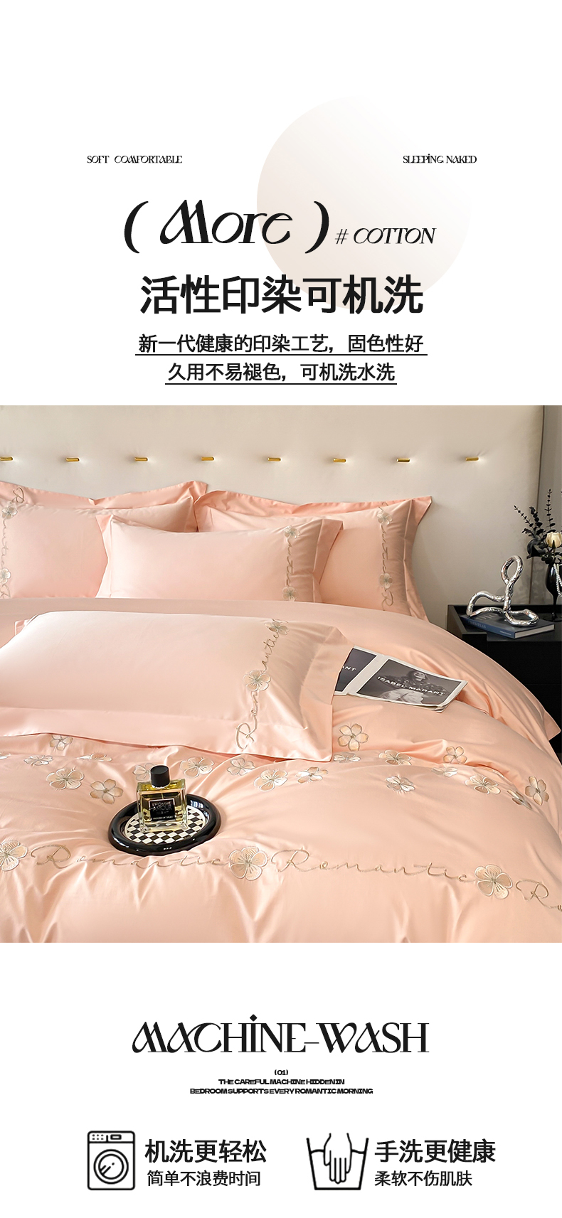 置顶家纺 2025新款13372全棉刺绣四件套-桃花朵朵开 桃花朵朵开-粉玉
