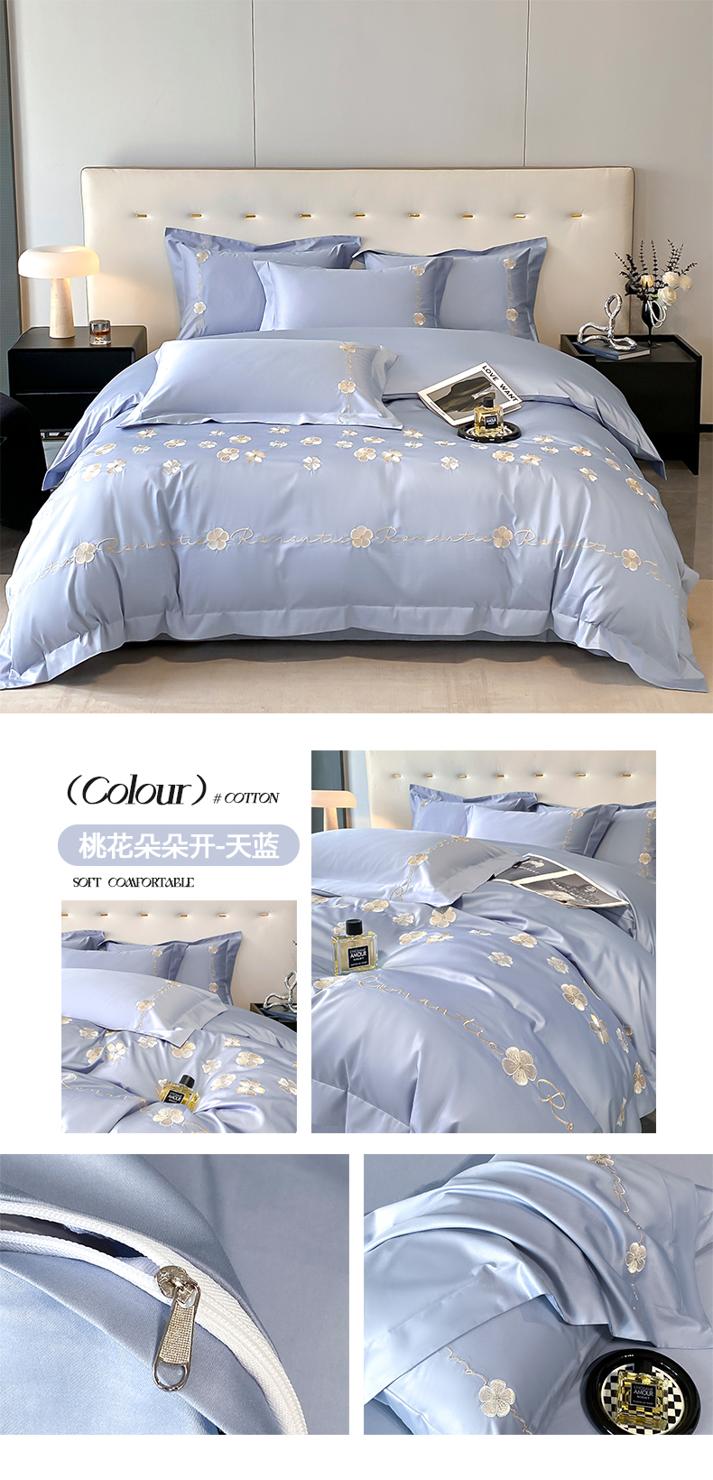 (总)置顶家纺 2026新款亲肤棉玫瑰刺绣提花卡罗拉系列四件套,卡罗拉-碧蓝,卡罗拉-魅粉,卡罗拉-浅香槟,卡罗拉-天空蓝