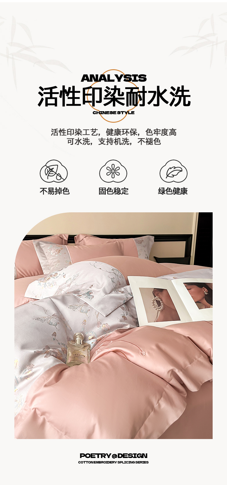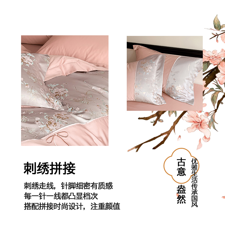 当前位置: 91家纺网 > 商品网购 > 床品套件 > 四件套 > 全棉普通四件套 > 置顶家纺 2025新款国色天香新中式全棉刺绣拼接四件套 国色天香-浅豆沙
