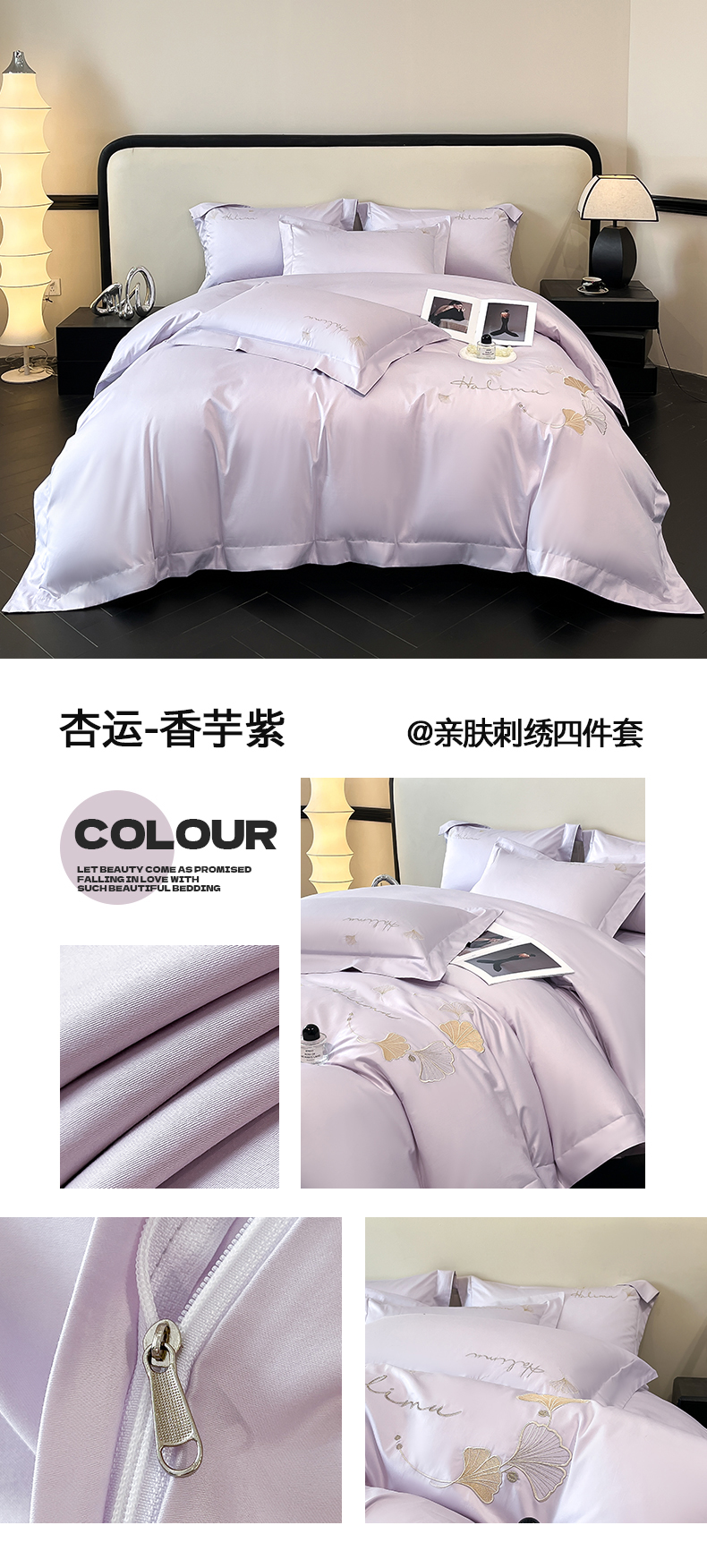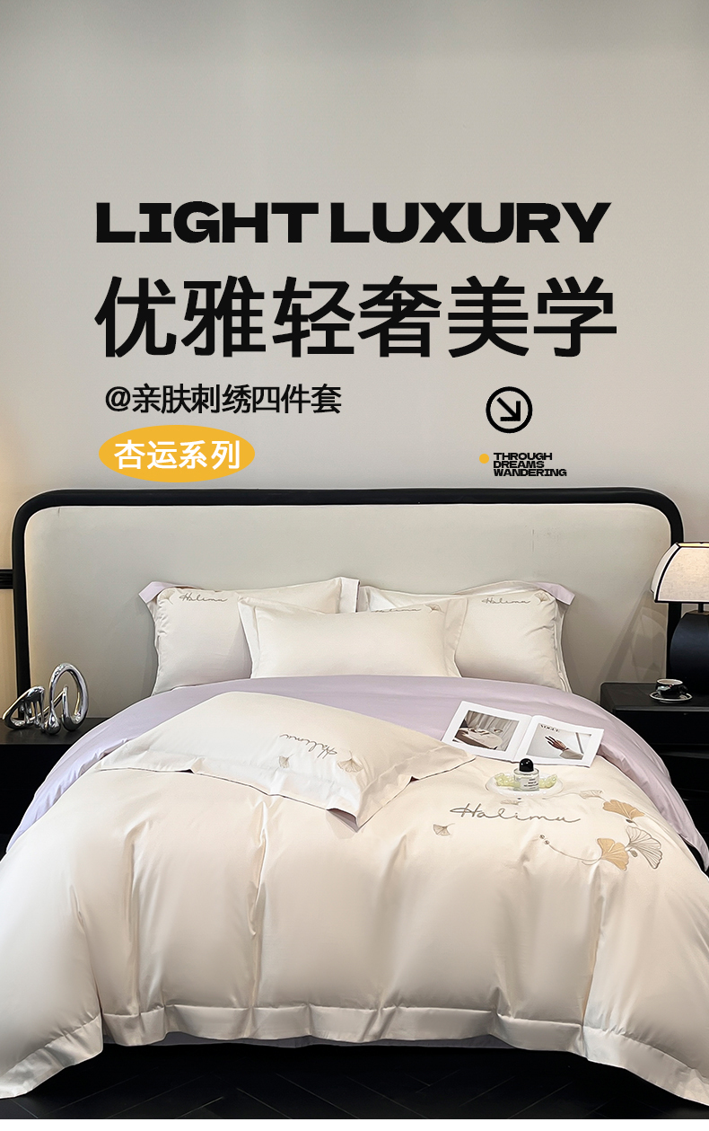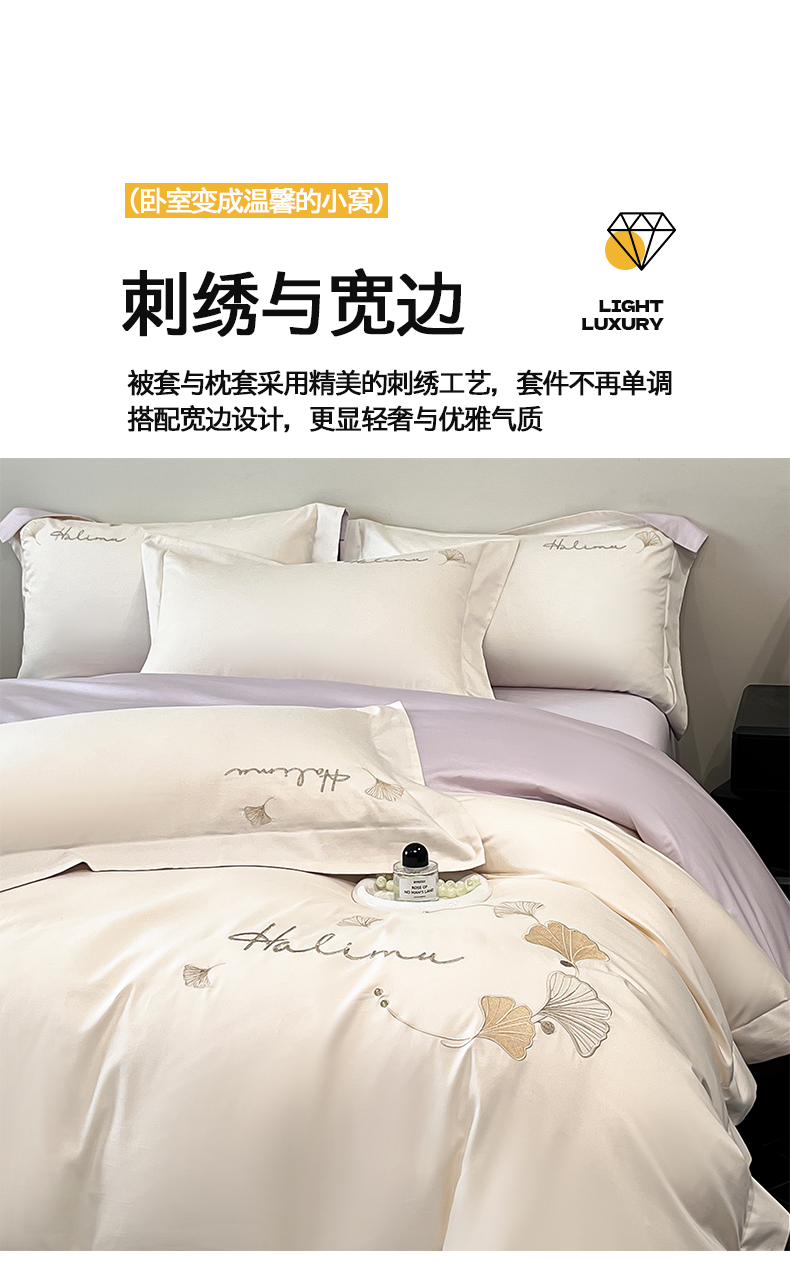 当前位置: 91家纺网 > 商品网购 > 床品套件 > 四件套 > 全棉普通四件套 > 置顶家纺 2025新款亲肤刺绣四件套-杏运 杏运-白+紫