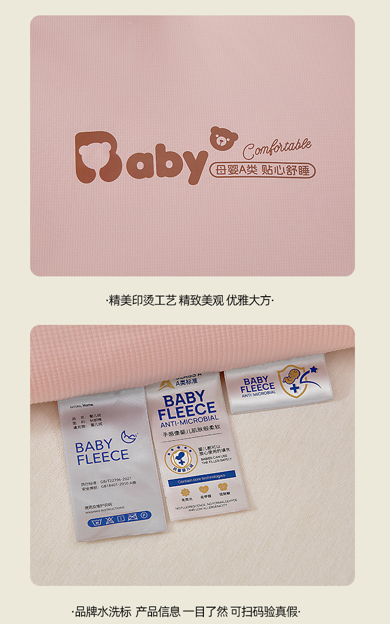 栩裕纺织 2025新款A类婴儿绒肌肤被baby熊系列四季款被芯 baby熊-粉