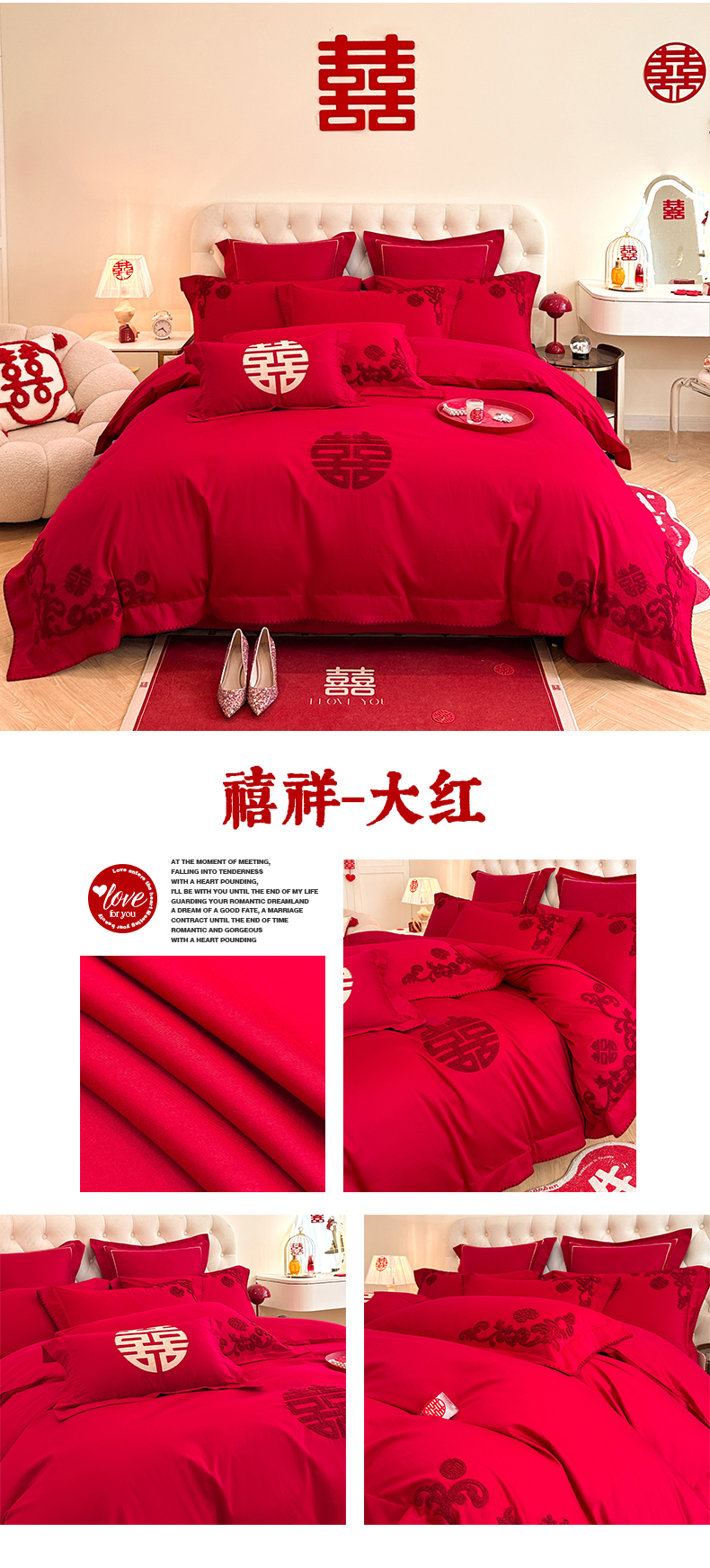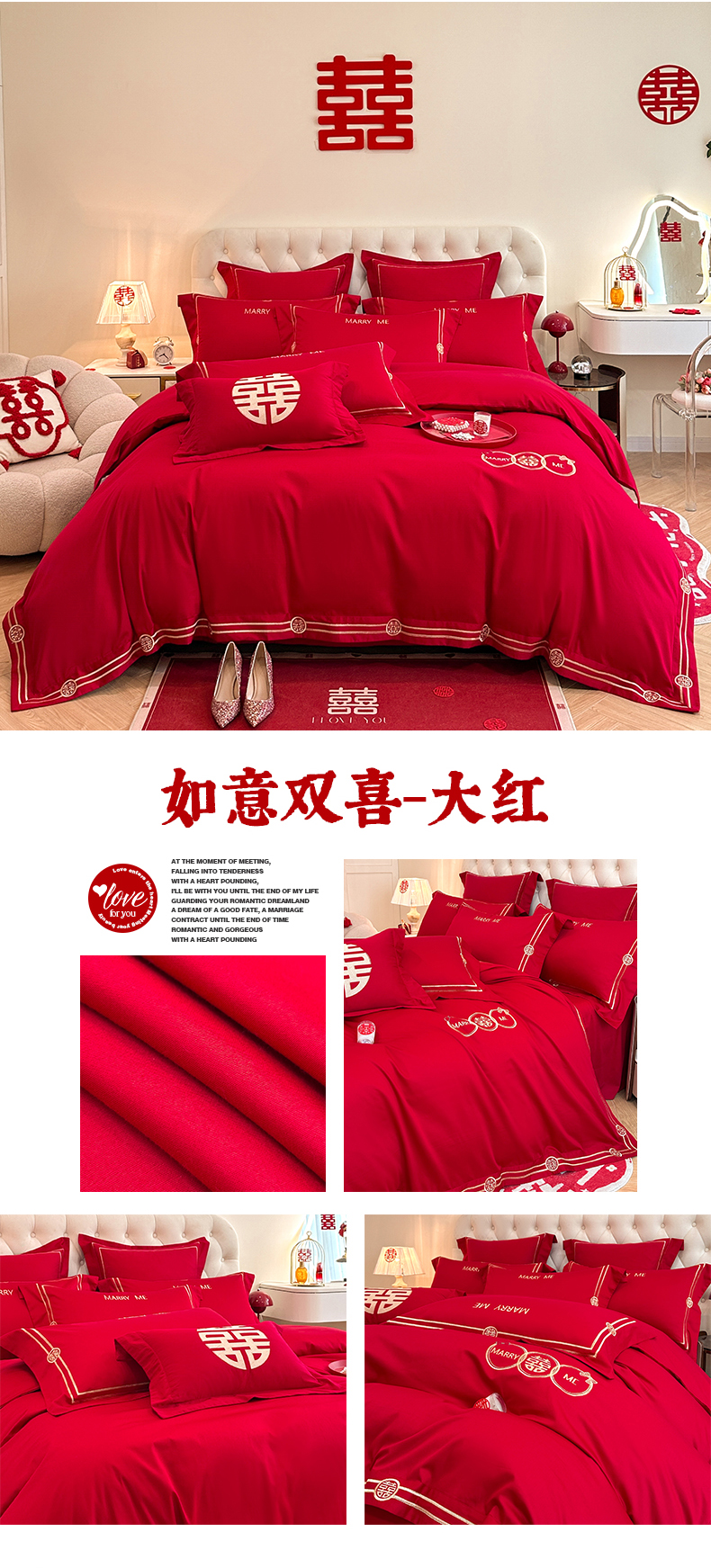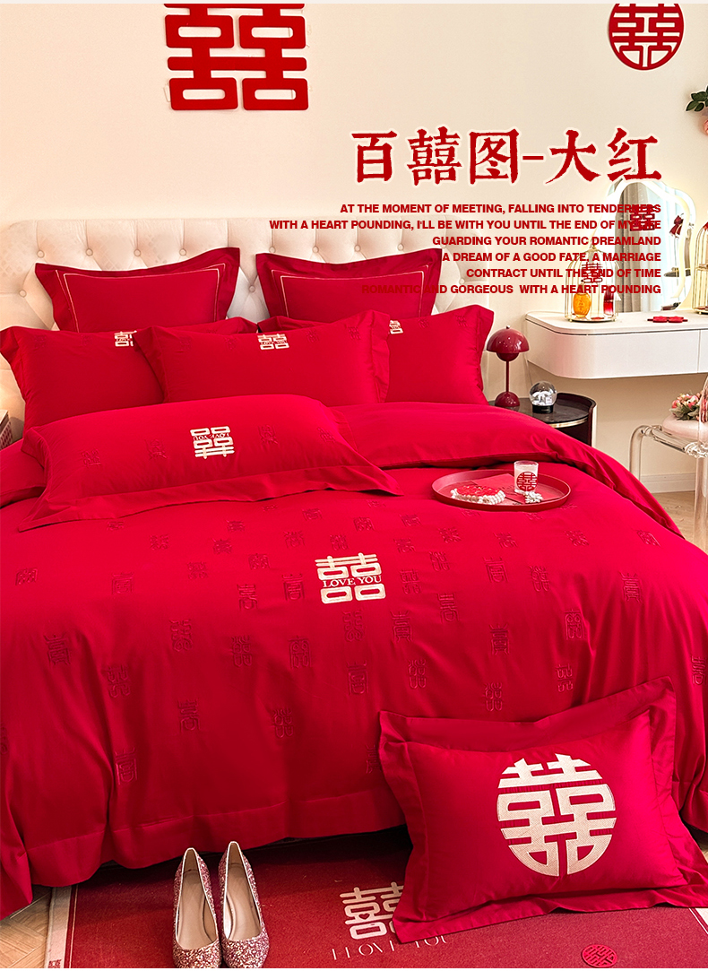 当前位置: 91家纺网 > 商品网购 > 床品套件 > 四件套 > 婚庆四件套 > 置顶家纺 2025新款亲肤刺绣婚庆磨毛四件套 百囍图-大红