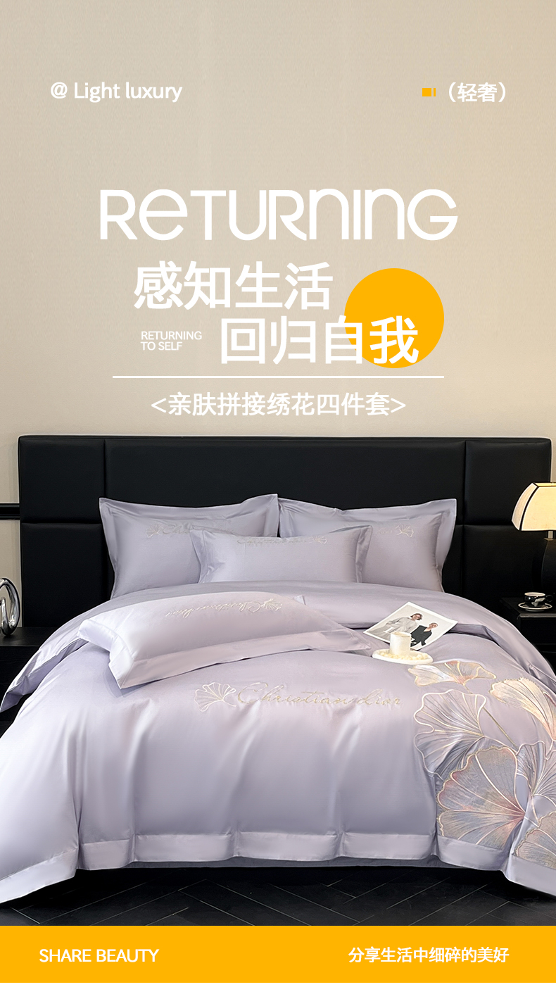 当前位置: 91家纺网 > 商品网购 > 床品套件 > 四件套 > 全棉普通四件套 > 置顶家纺 2025新款亲肤拼接刺绣四件套-一路繁花 一路繁花-香芋紫