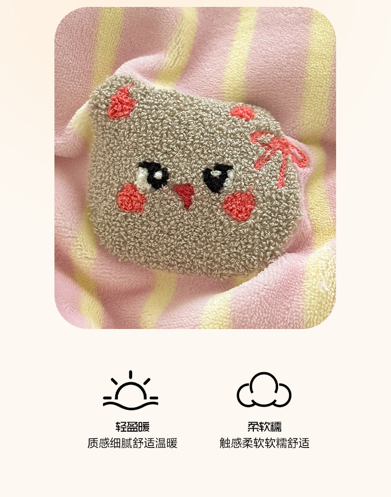 商品名称:如一 2025新款卡通毛巾绣系列牛奶绒四件套 草莓灰猫