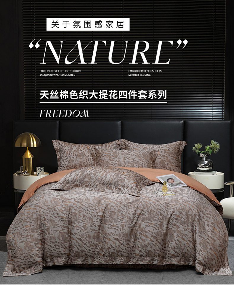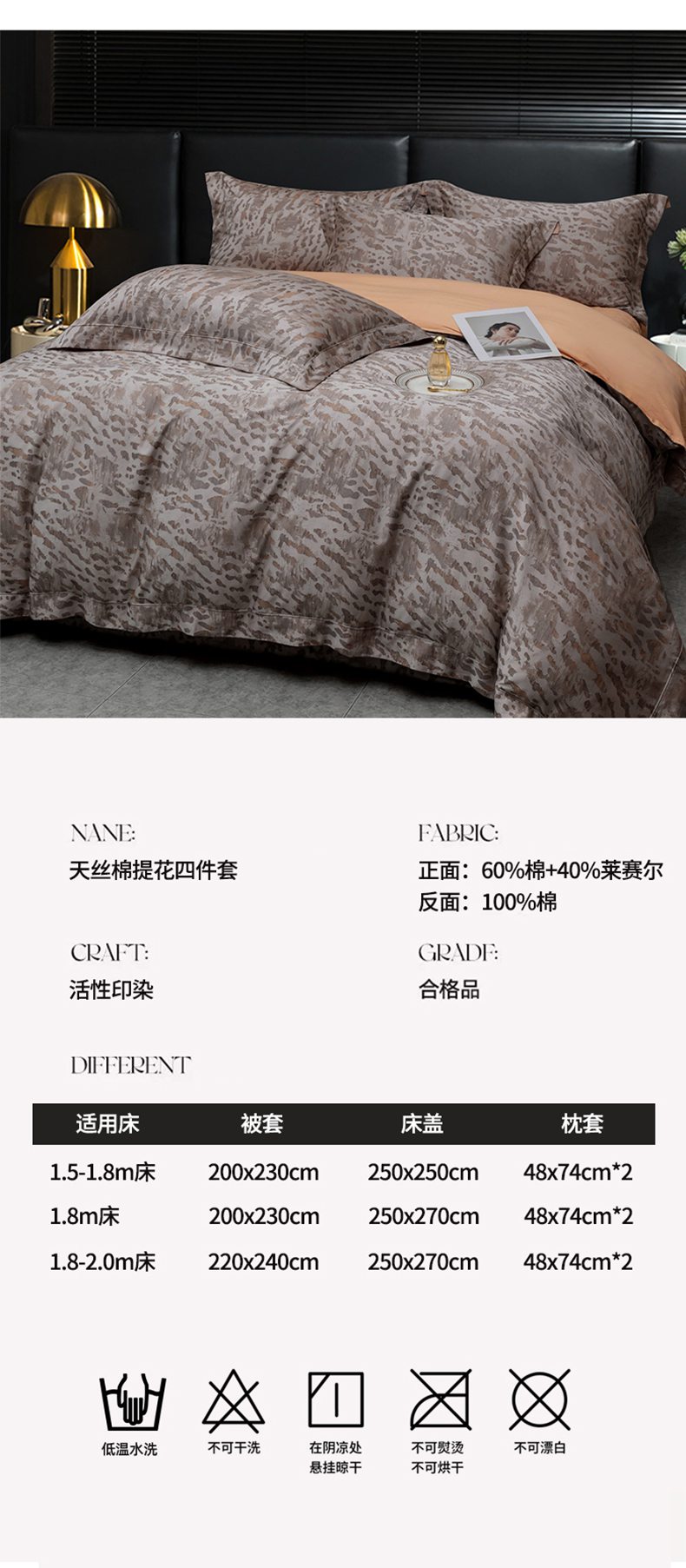 (总)OL家纺 2025新款天丝棉色织大提花四件套系列,绯色时空-紫,绯色时空-棕,派对时光