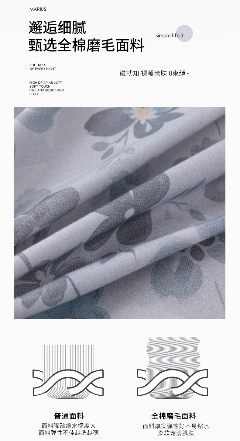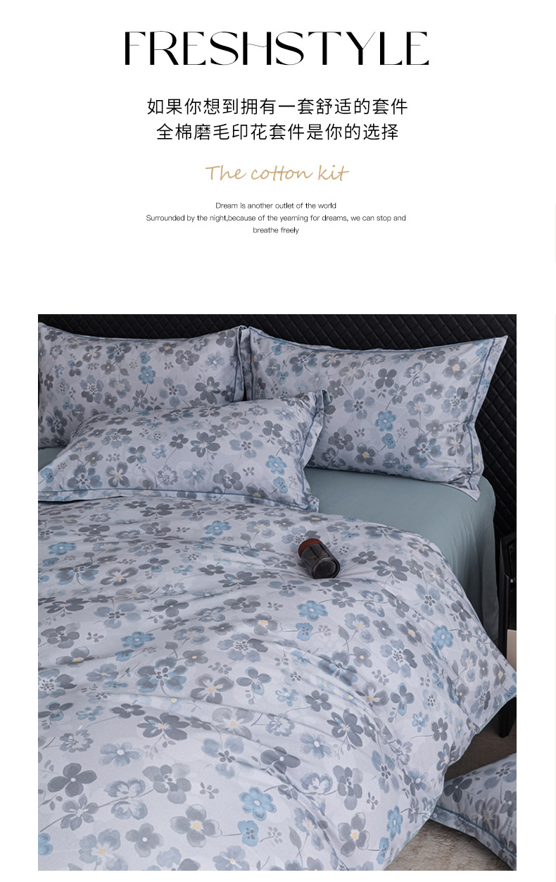 当前位置: 91家纺网 > 商品网购 > 床品套件 > 四件套 > 普通磨毛四件套 > 晶缦家纺 2025新款加厚纯棉全棉磨毛四件套 春风恋曲灰