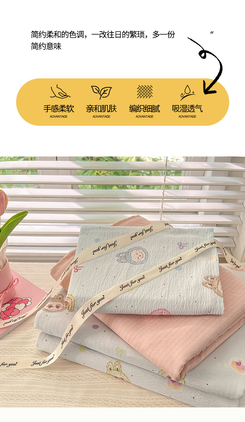 当前位置: 91家纺网 > 商品网购 > 床品套件 > 四件套 > 双层纱四件套 > 优尚佳生活馆 2025新款高克重云感双层纱印花四件套 小布布