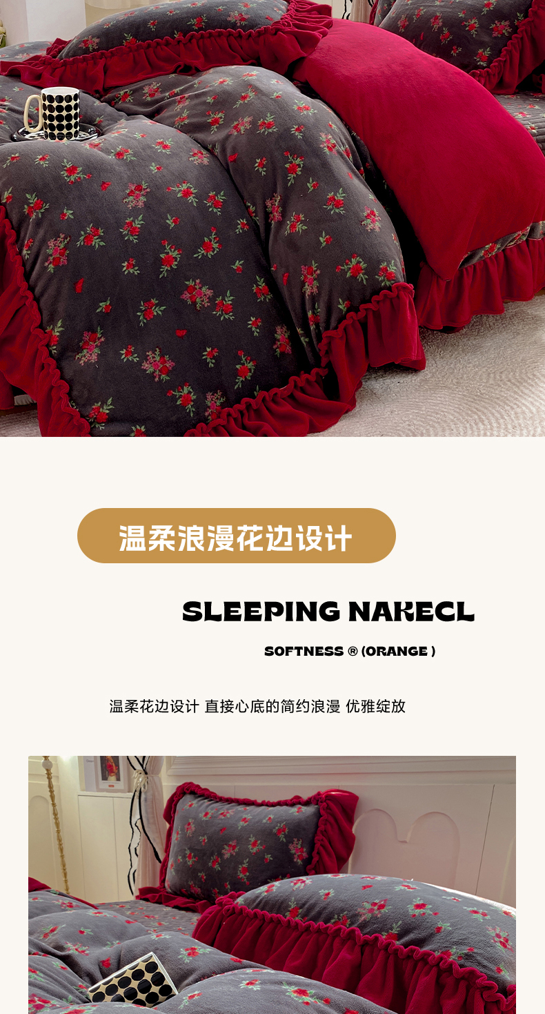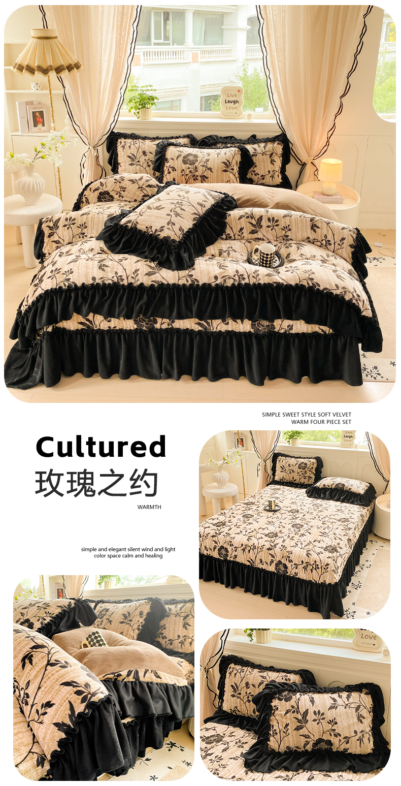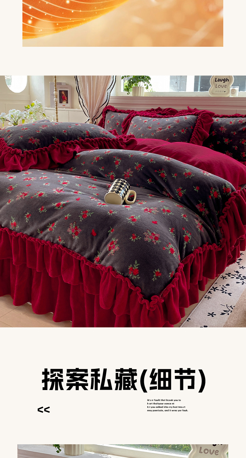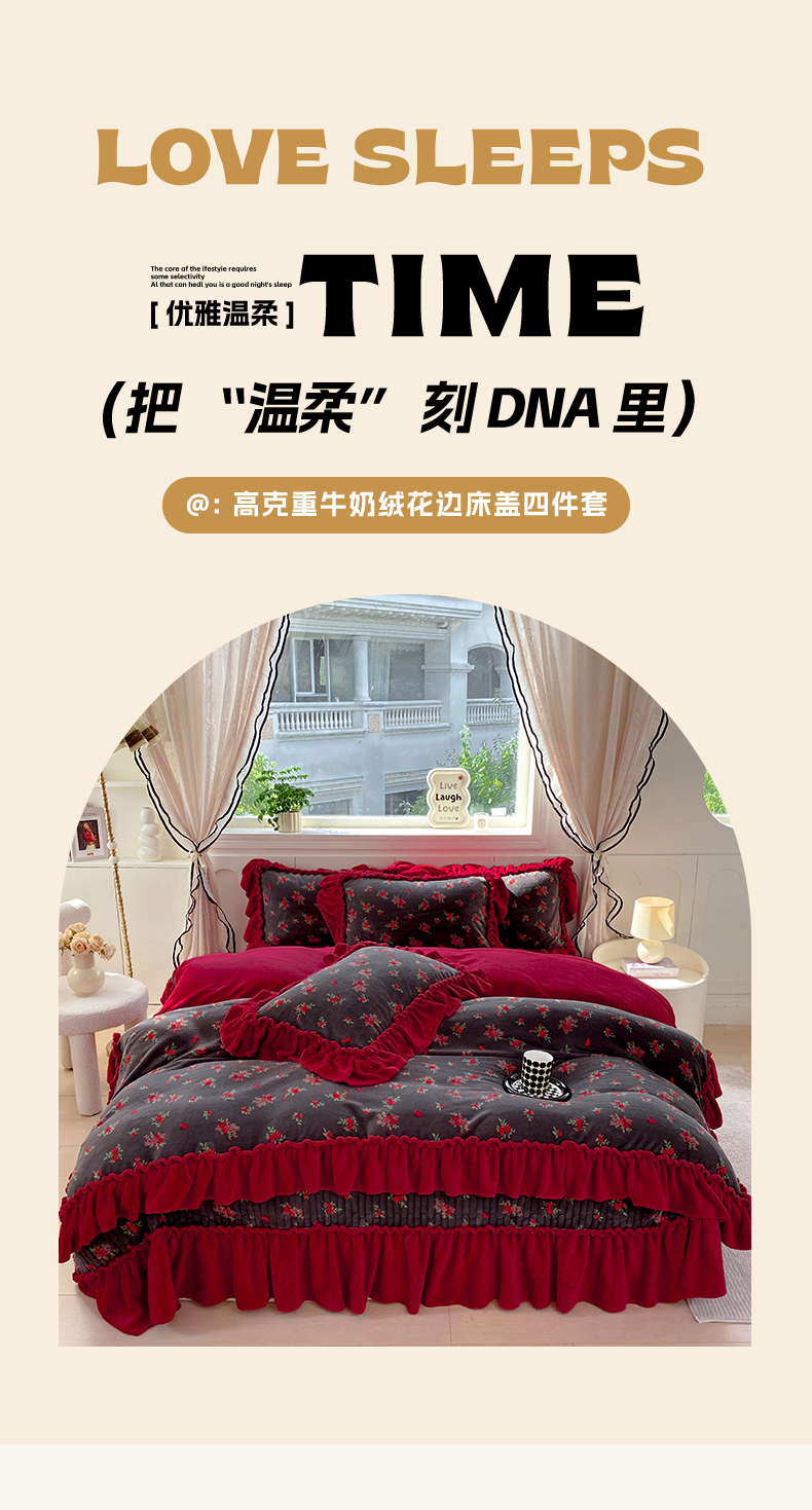 (总)云木里 2025新款热卖大宽花边牛奶绒床盖款四件套,豹纹,波点,复古樱桃,蝴蝶结紫色,花里梦,玫瑰故事,玫瑰之约,美拉德猫,幽香,织梦空间,紫色日记