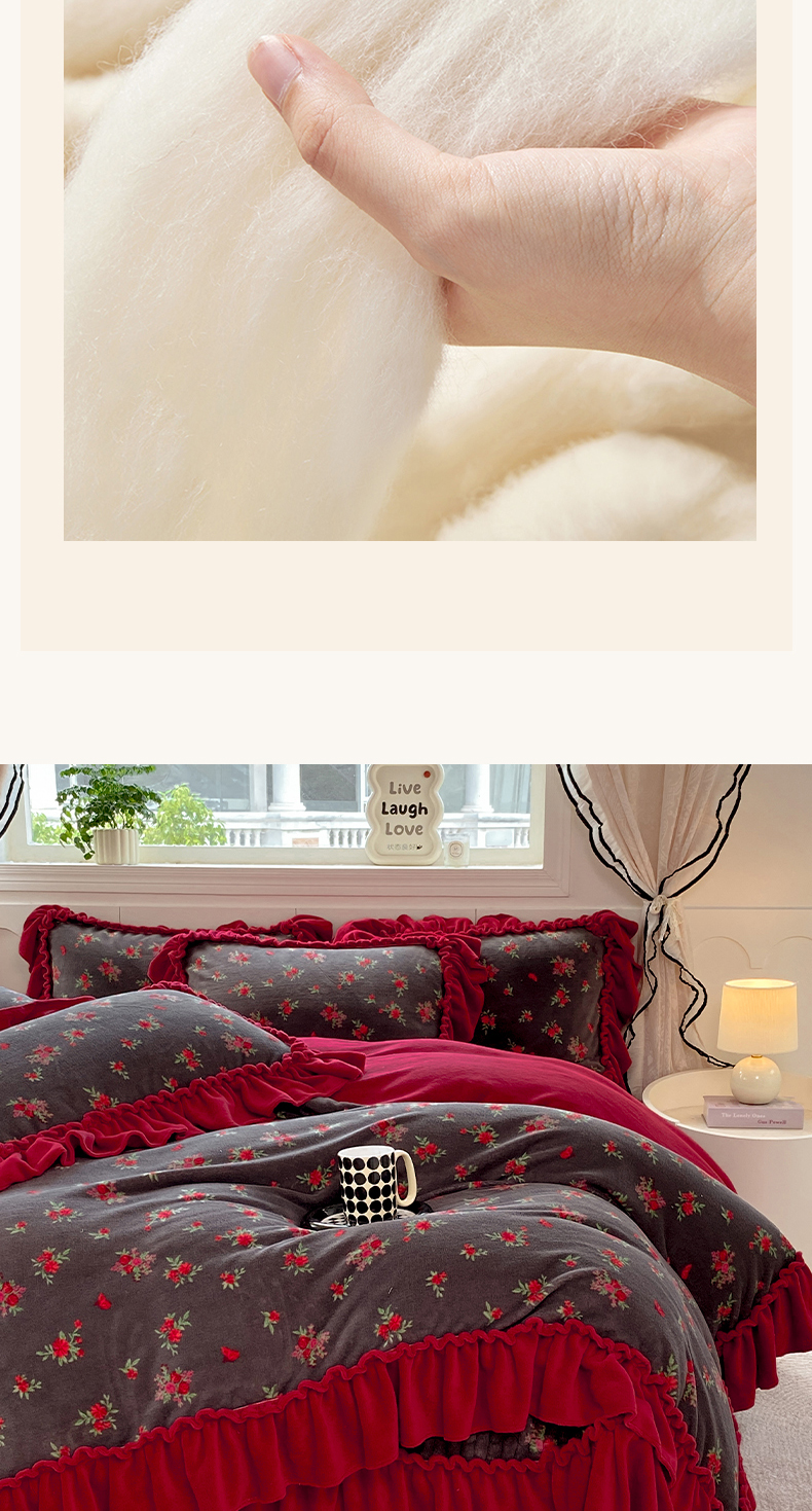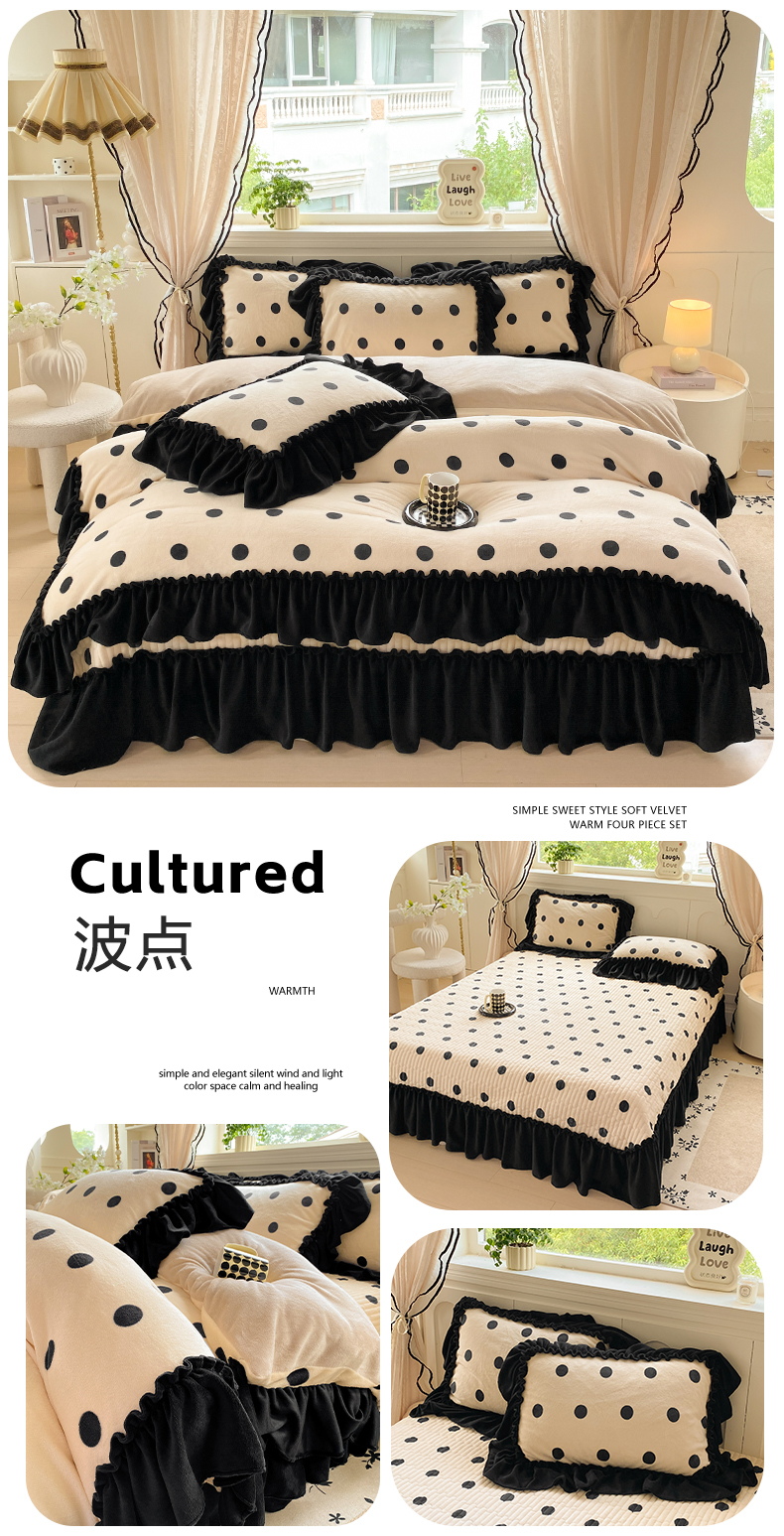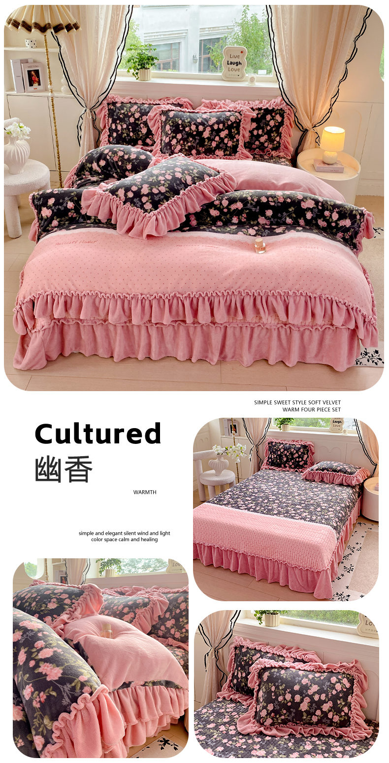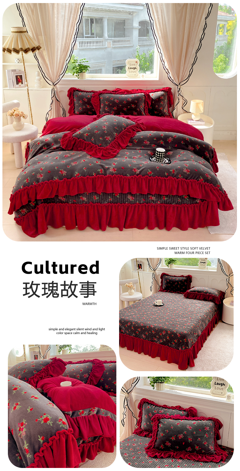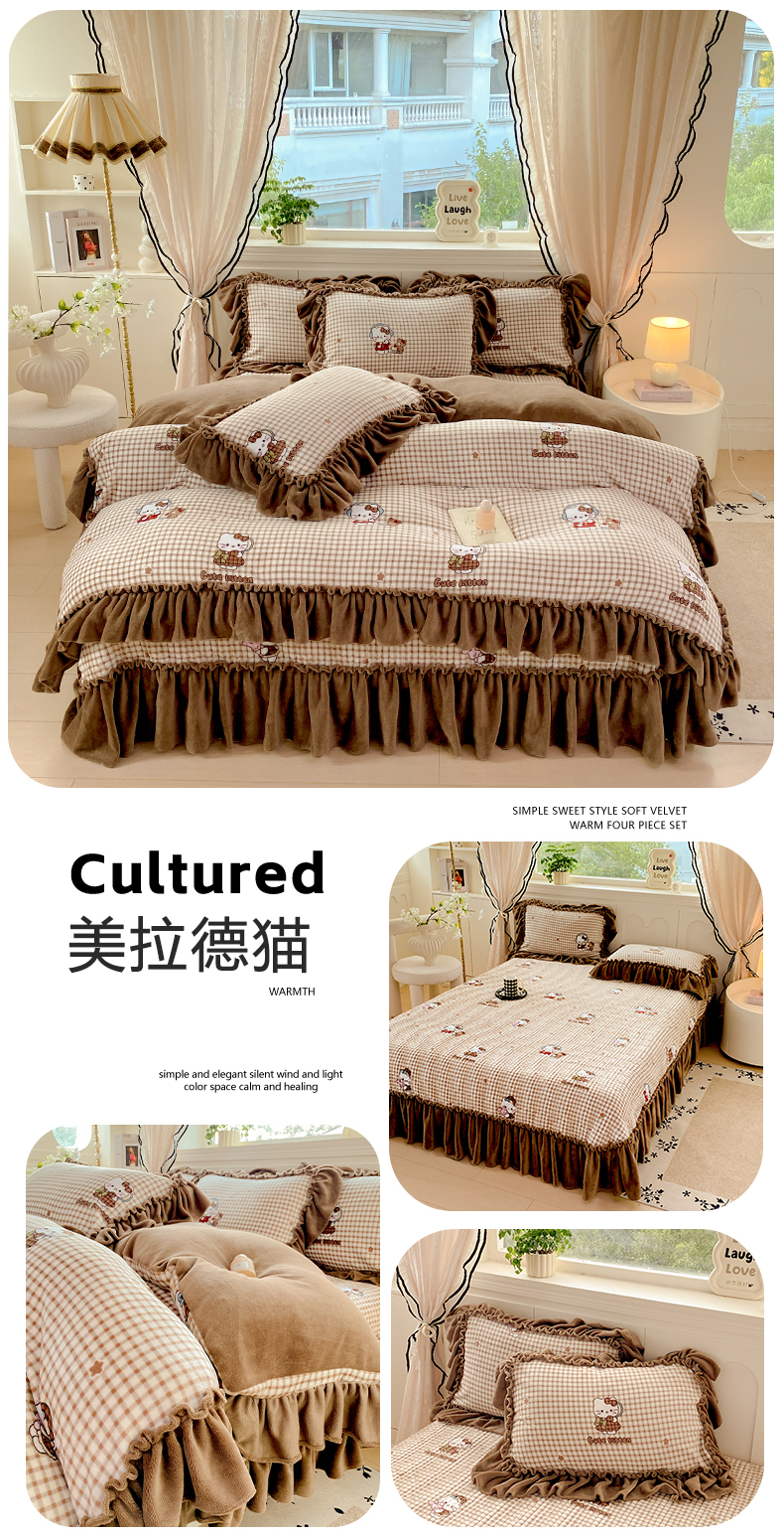 (总)云木里 2025新款热卖大宽花边牛奶绒床盖款四件套,豹纹,波点,复古樱桃,蝴蝶结紫色,花里梦,玫瑰故事,玫瑰之约,美拉德猫,幽香,织梦空间,紫色日记