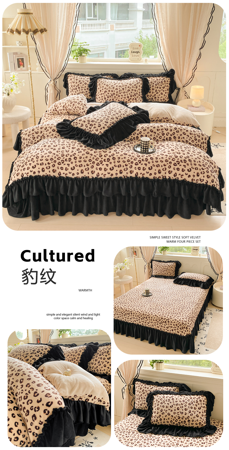 商品名称:云木里 2025新款热卖大宽花边牛奶绒床盖款四件套 豹纹