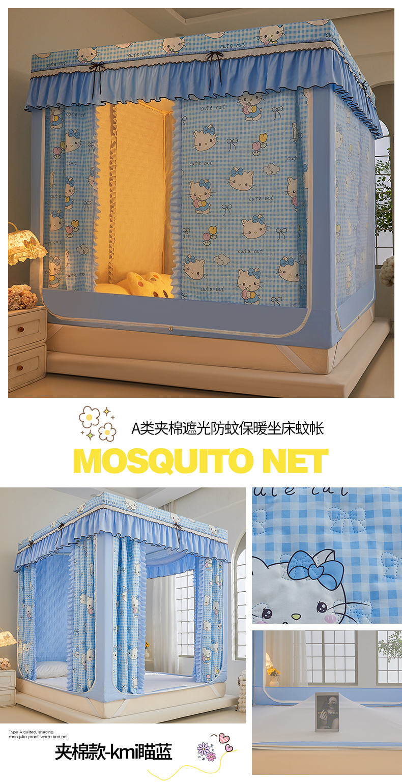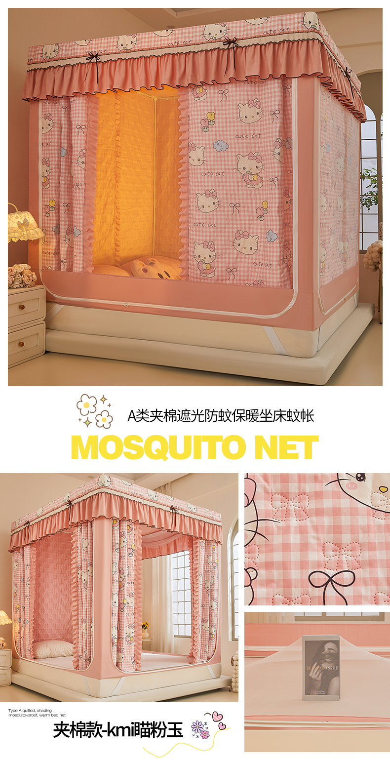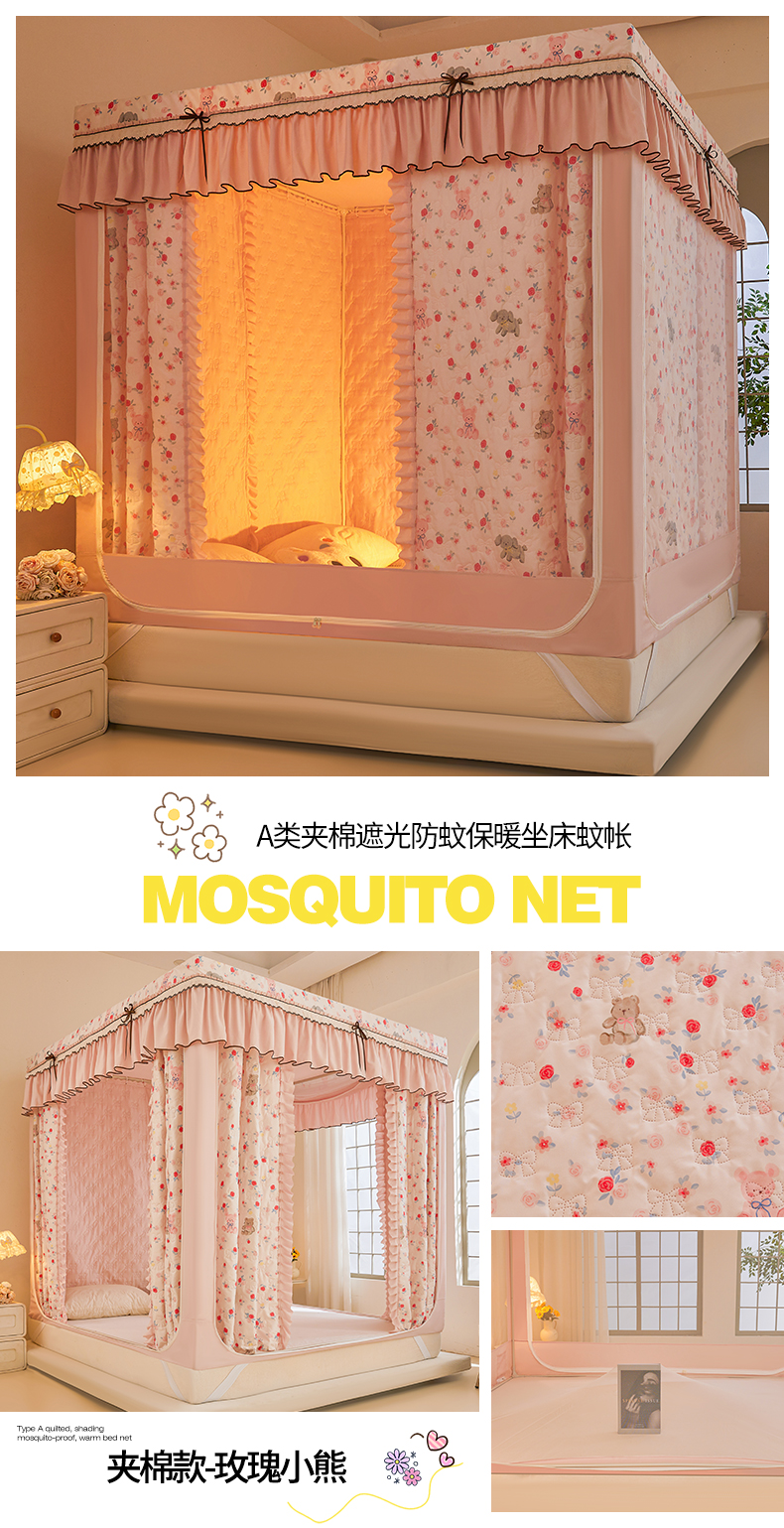 艾晶美家纺有限公司 2025新款韩版坐床夹棉保暖遮光蚊帐 夹棉款-米格熊