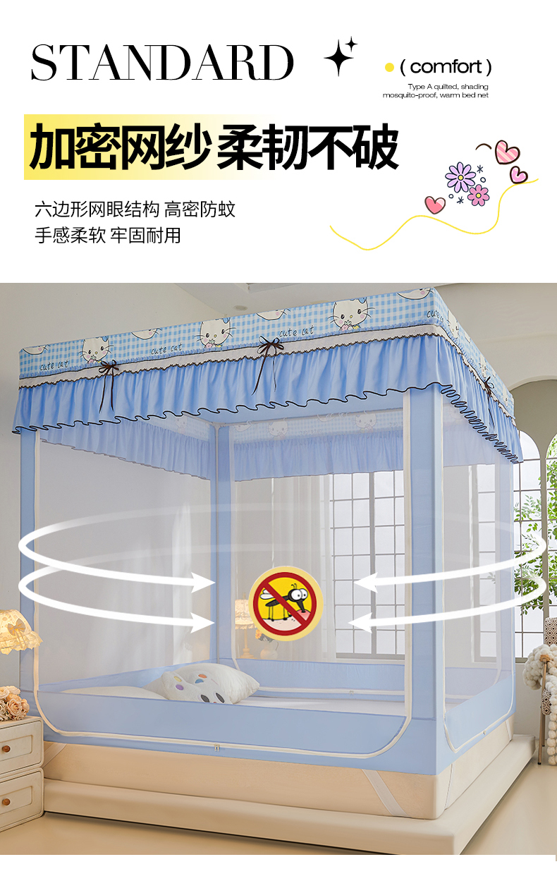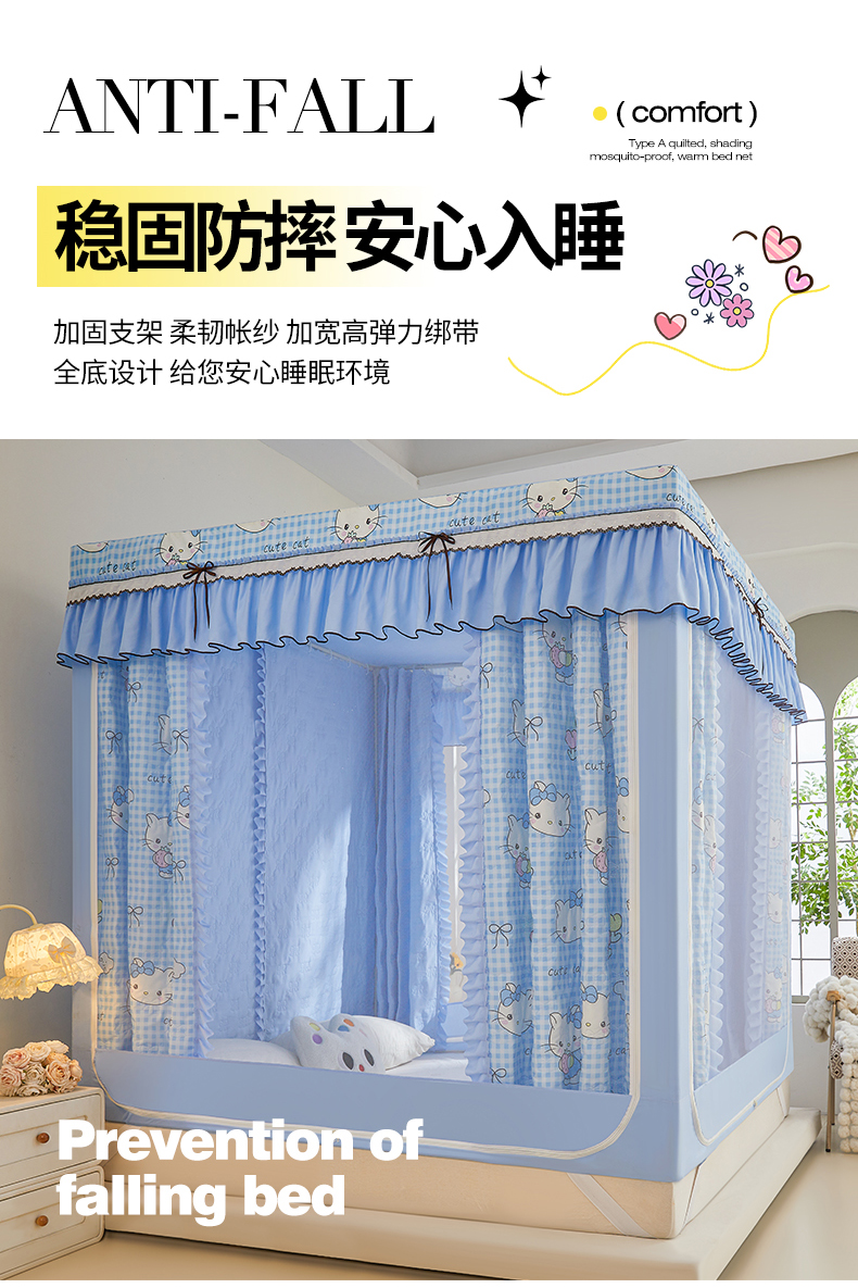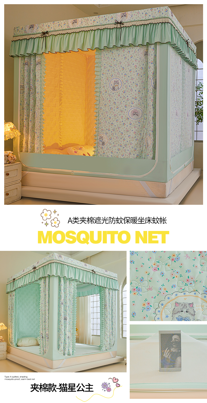 艾晶美家纺有限公司 2025新款韩版坐床夹棉保暖遮光蚊帐 夹棉款-米格熊