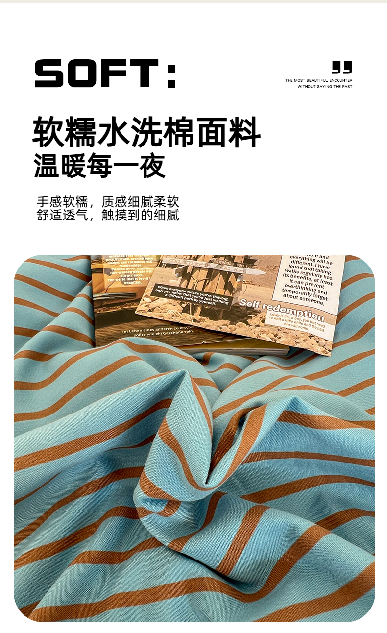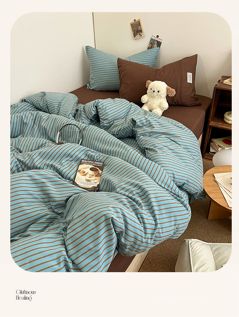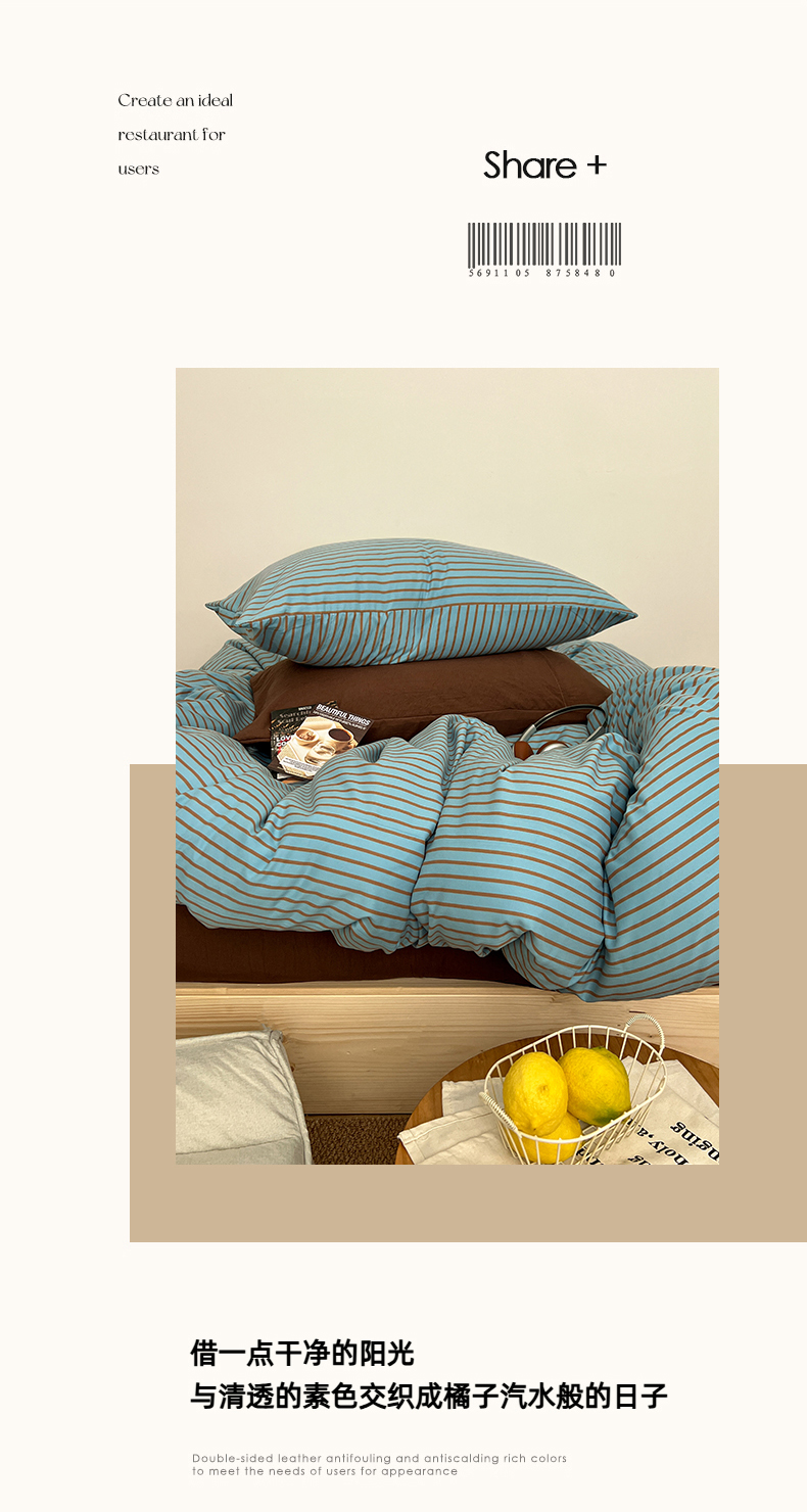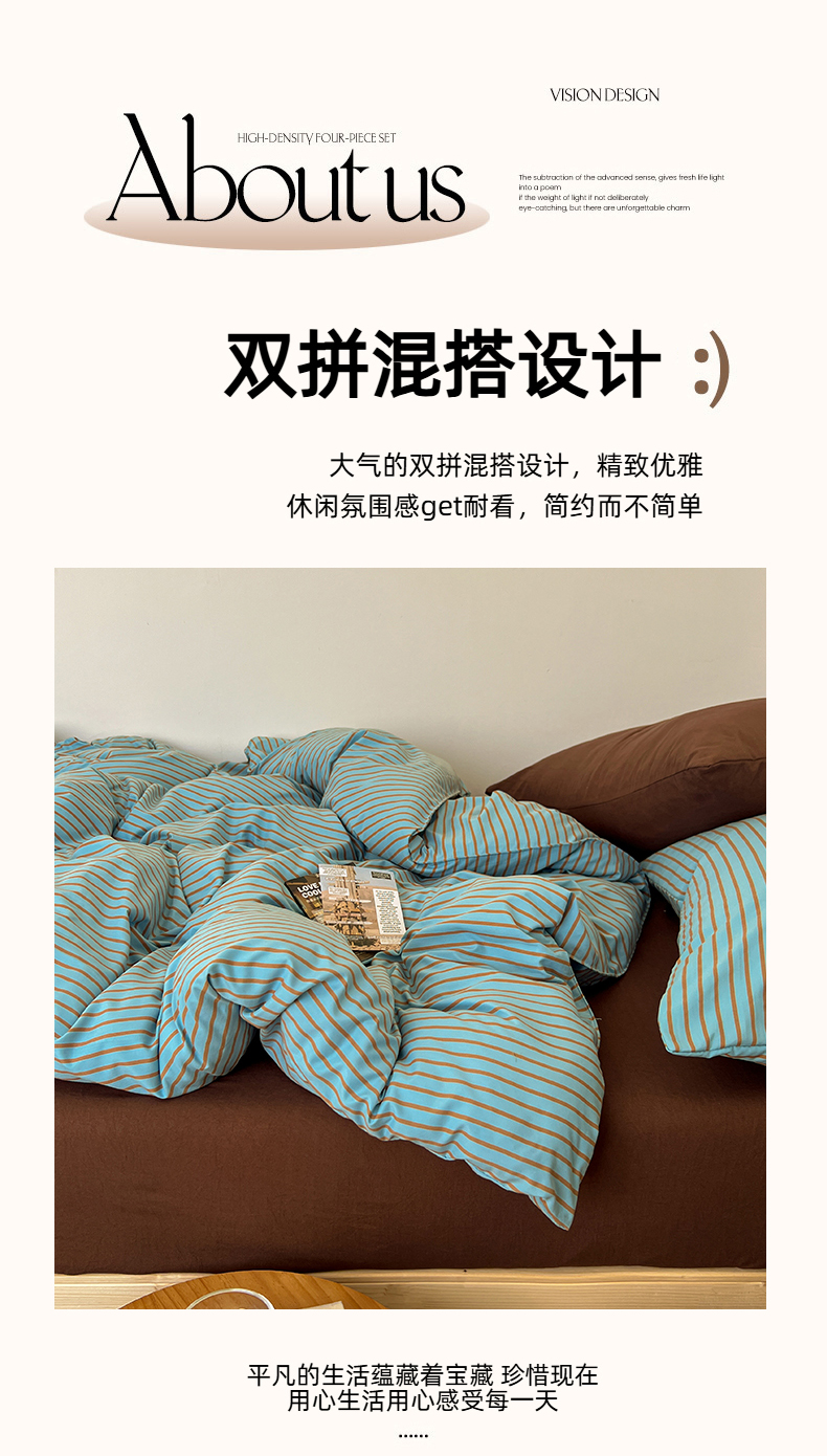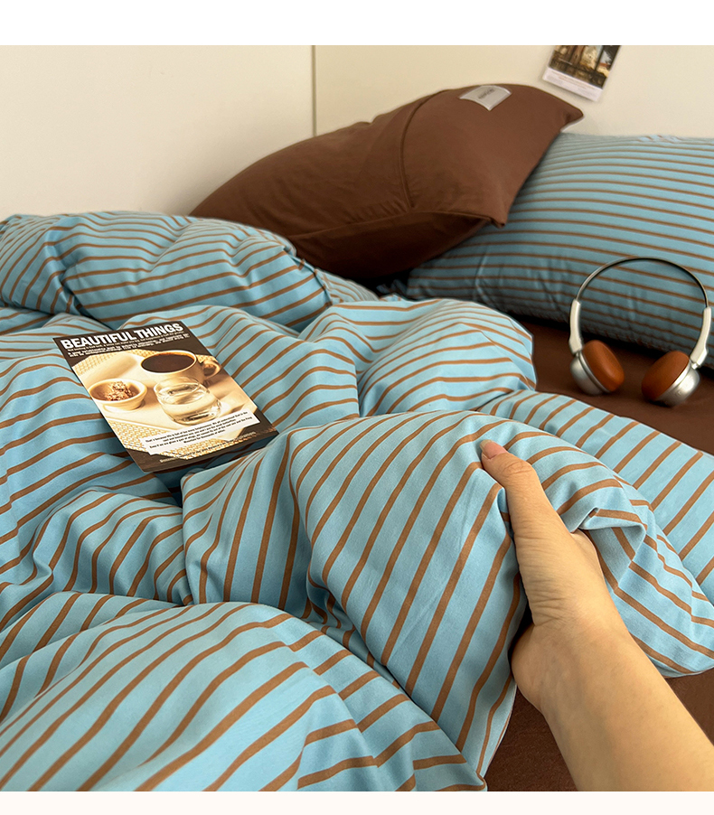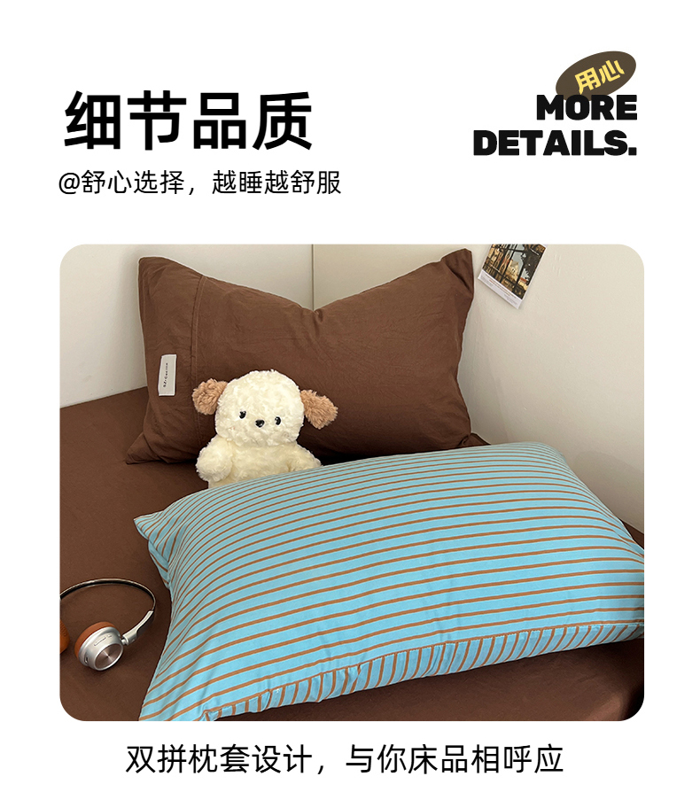 当前位置: 91家纺网 > 商品网购 > 床品套件 > 四件套 > 水洗棉四件套 > 暖芯优选 2025新款韩式无印风水洗棉拼色学生三件套床单床笠款四件套 条纹水蓝+咖啡