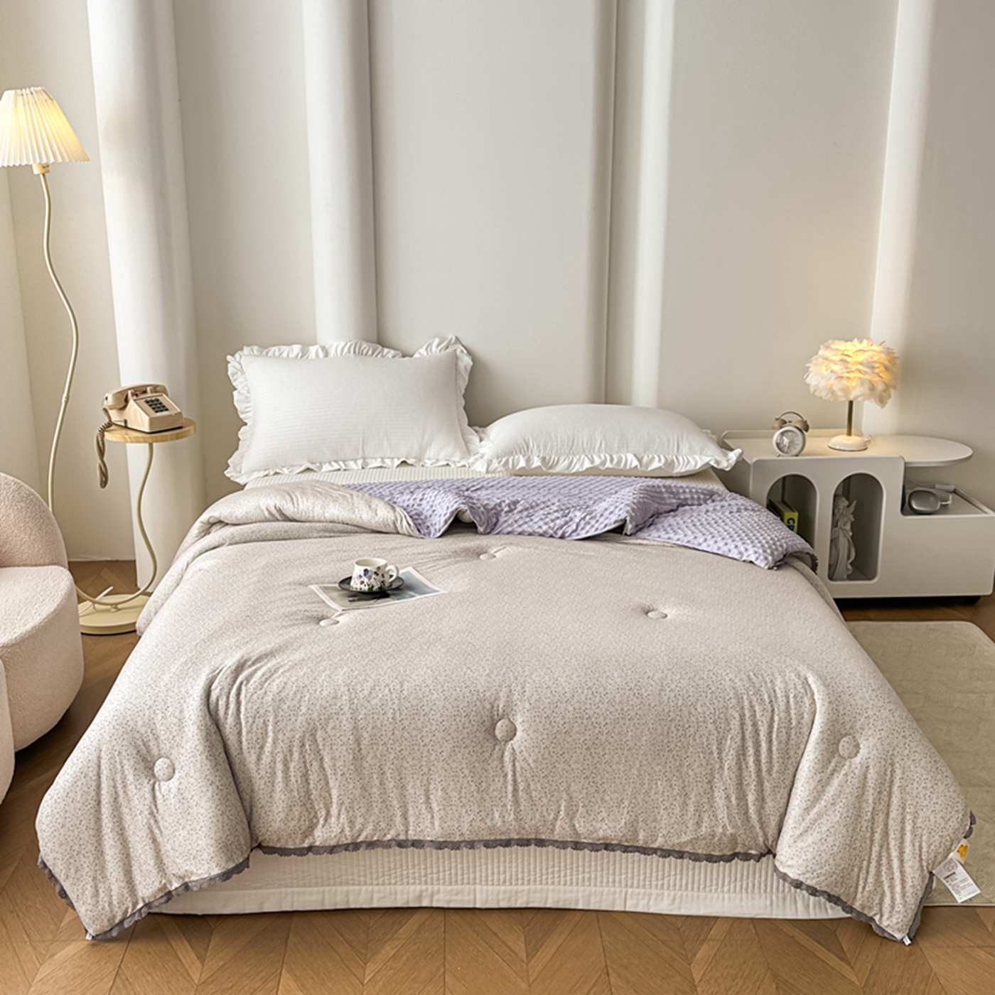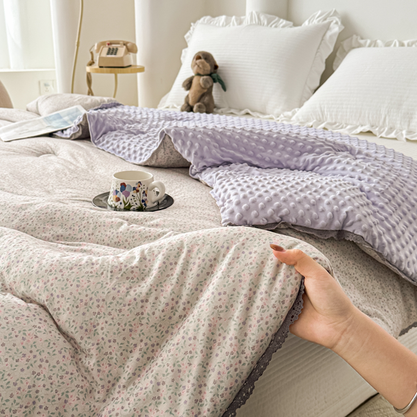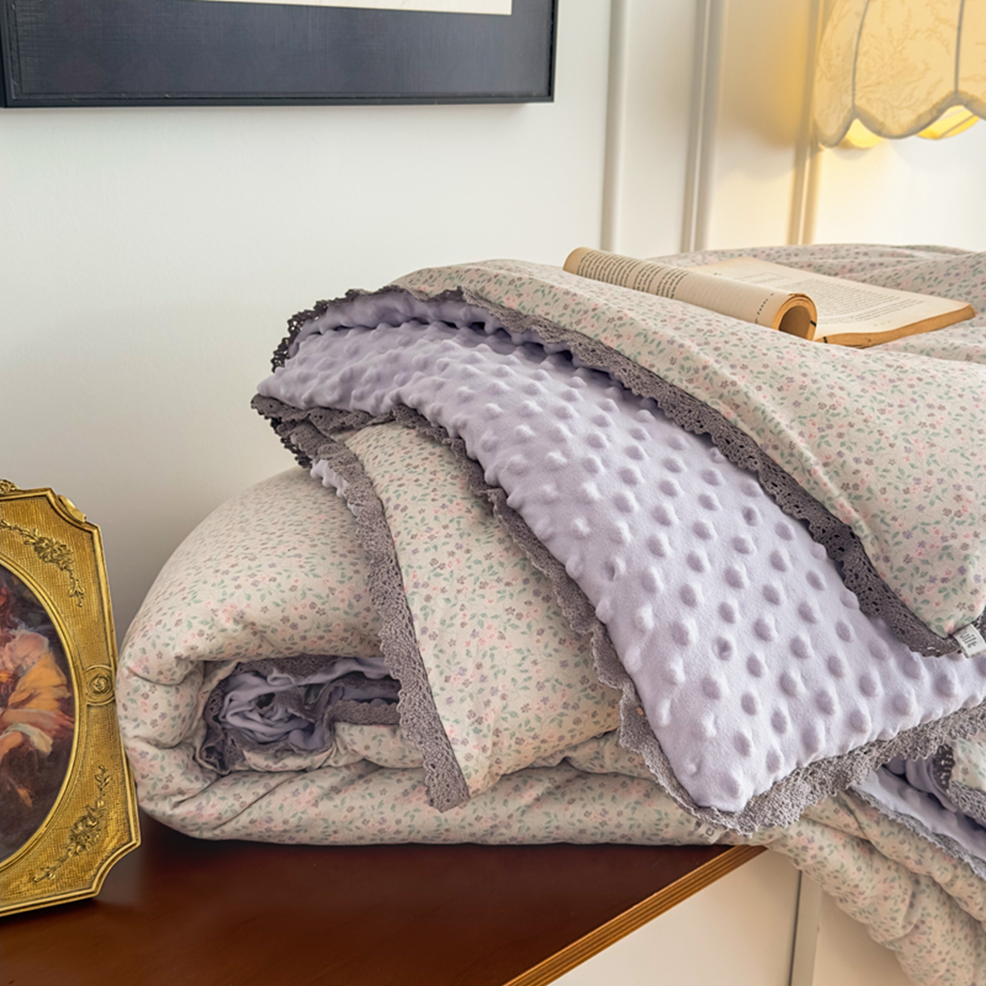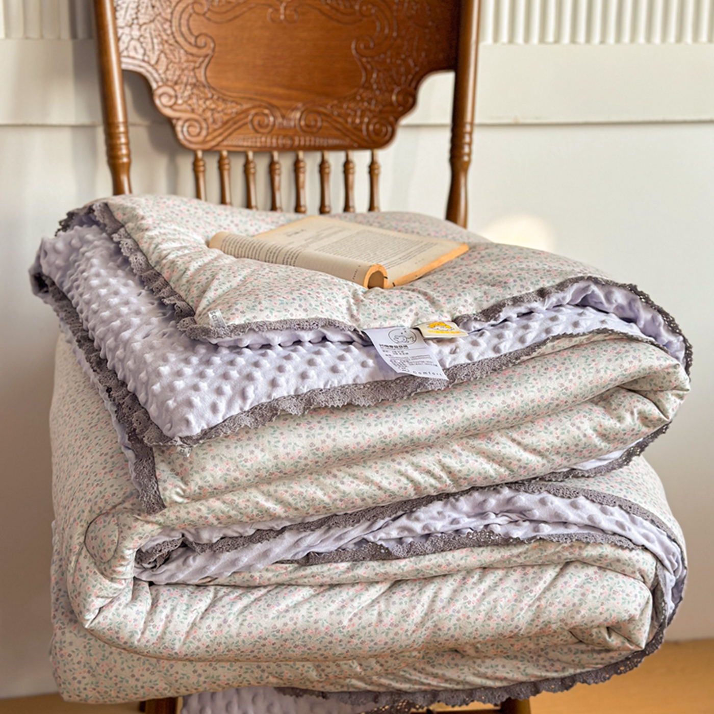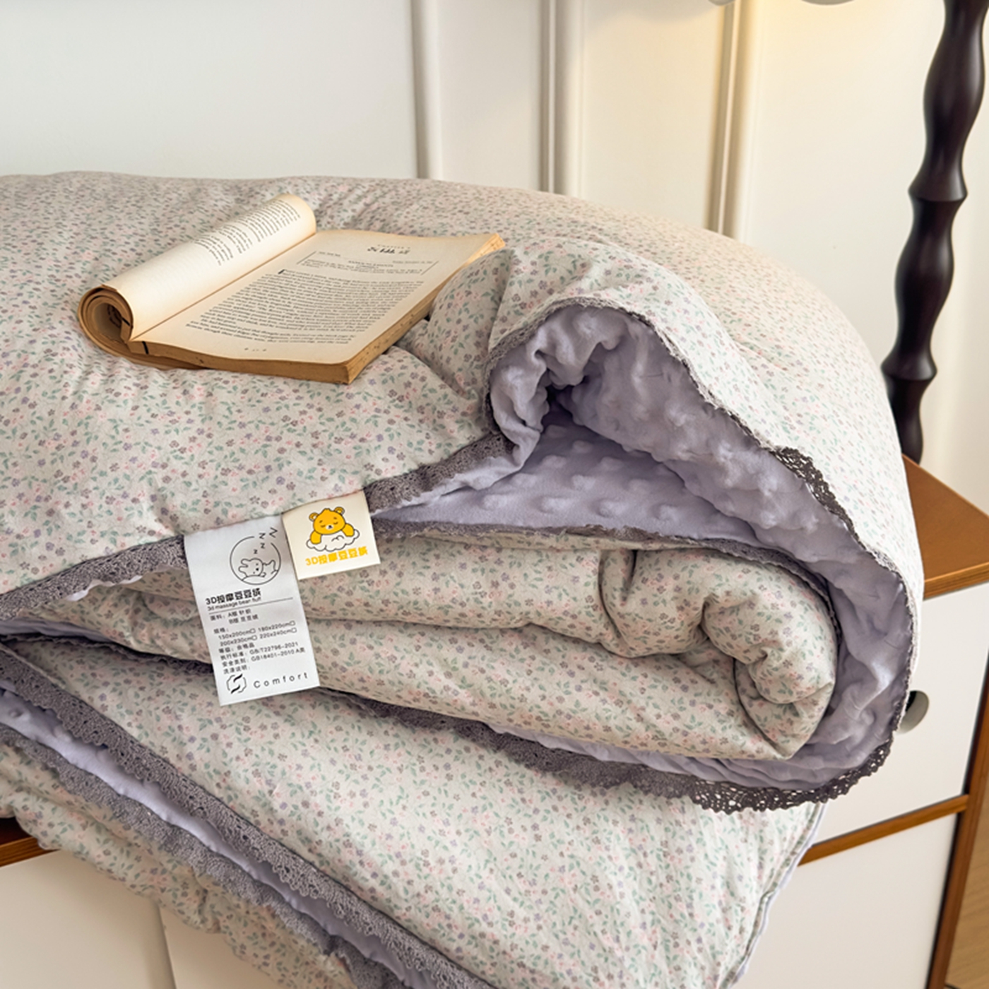 商品名称:睡美美家纺 2025新款秋冬亲肤柔软豆豆绒花边款冬被被芯 紫色庄园