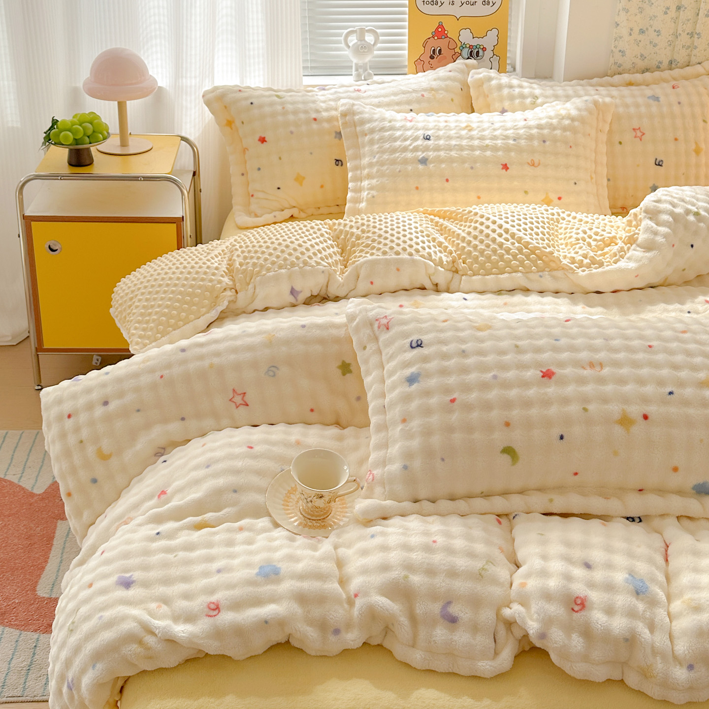 梦莱斯 2025新款泡泡绒豆豆绒加厚牛奶绒四件套 - 印花系列 星空黄