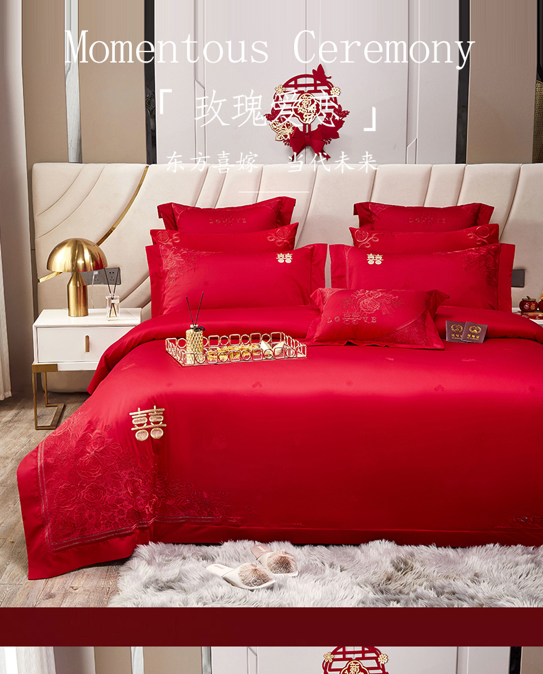 当前位置: 91家纺网 > 商品网购 > 床品套件 > 四件套 > 婚庆四件套 > 蒂爵 全棉纯棉长绒棉大绣花婚庆四件套 玫瑰爱恋金