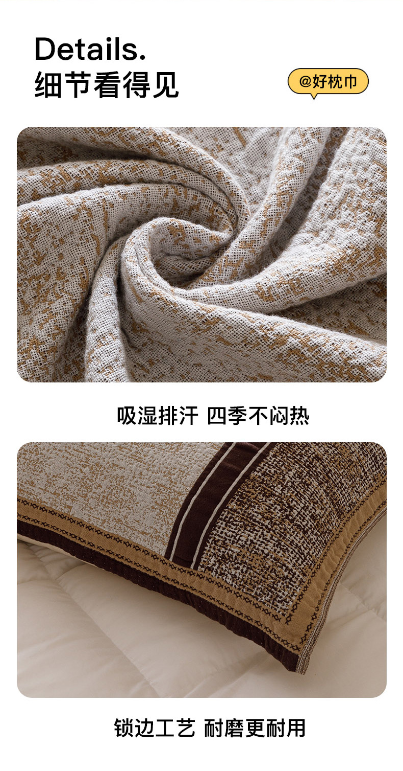商品名称:爱港家纺 2025新款全棉巴恩风纱布枕巾 隔热 耐脏,防滑 卷轴