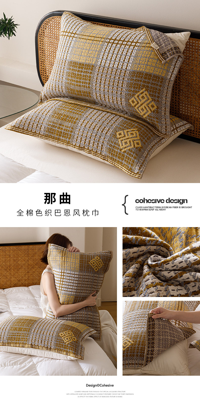 (总)爱港家纺 2025新款全棉巴恩风纱布枕巾 隔热 耐脏,防滑,朝歌,卷轴,喀什,凉山,楼兰,麦城,牧野,那曲,组合