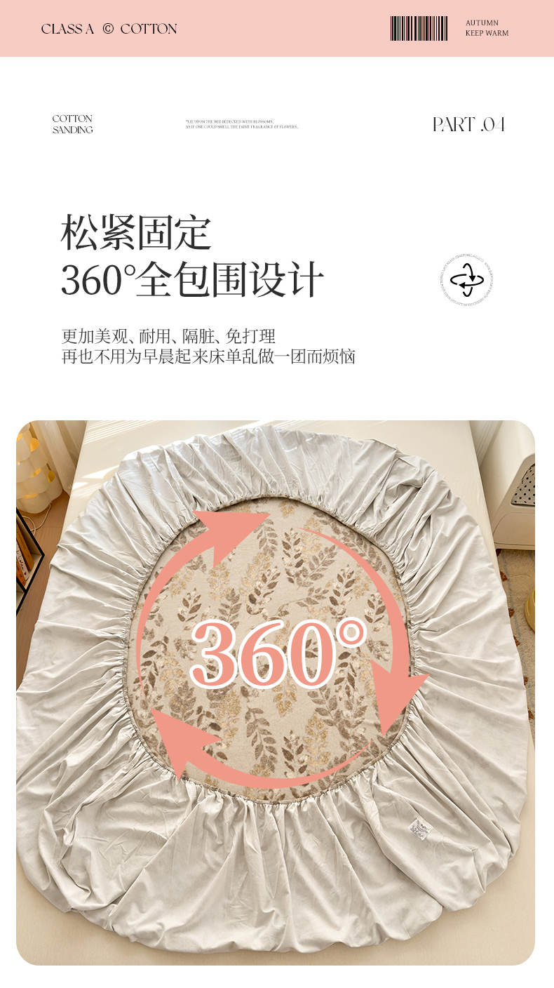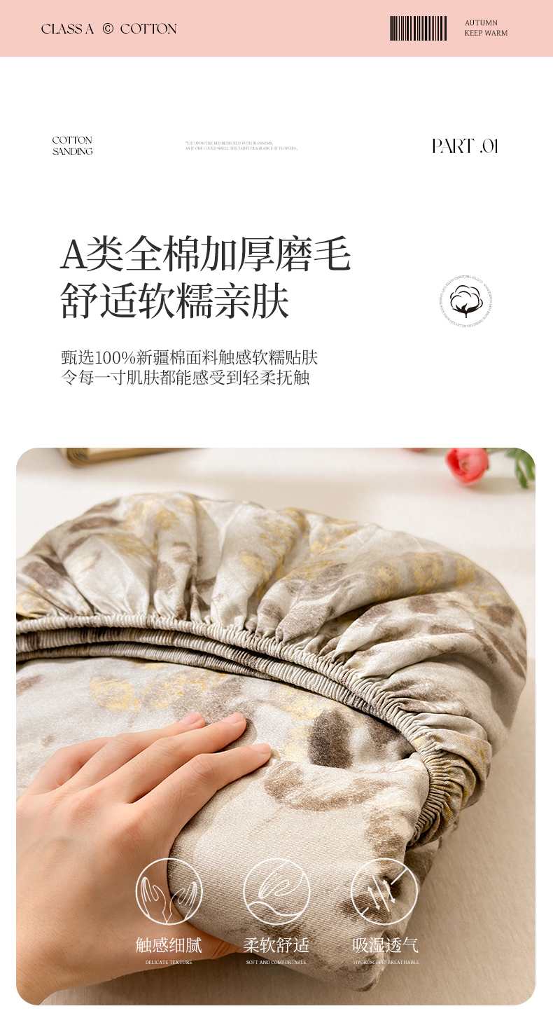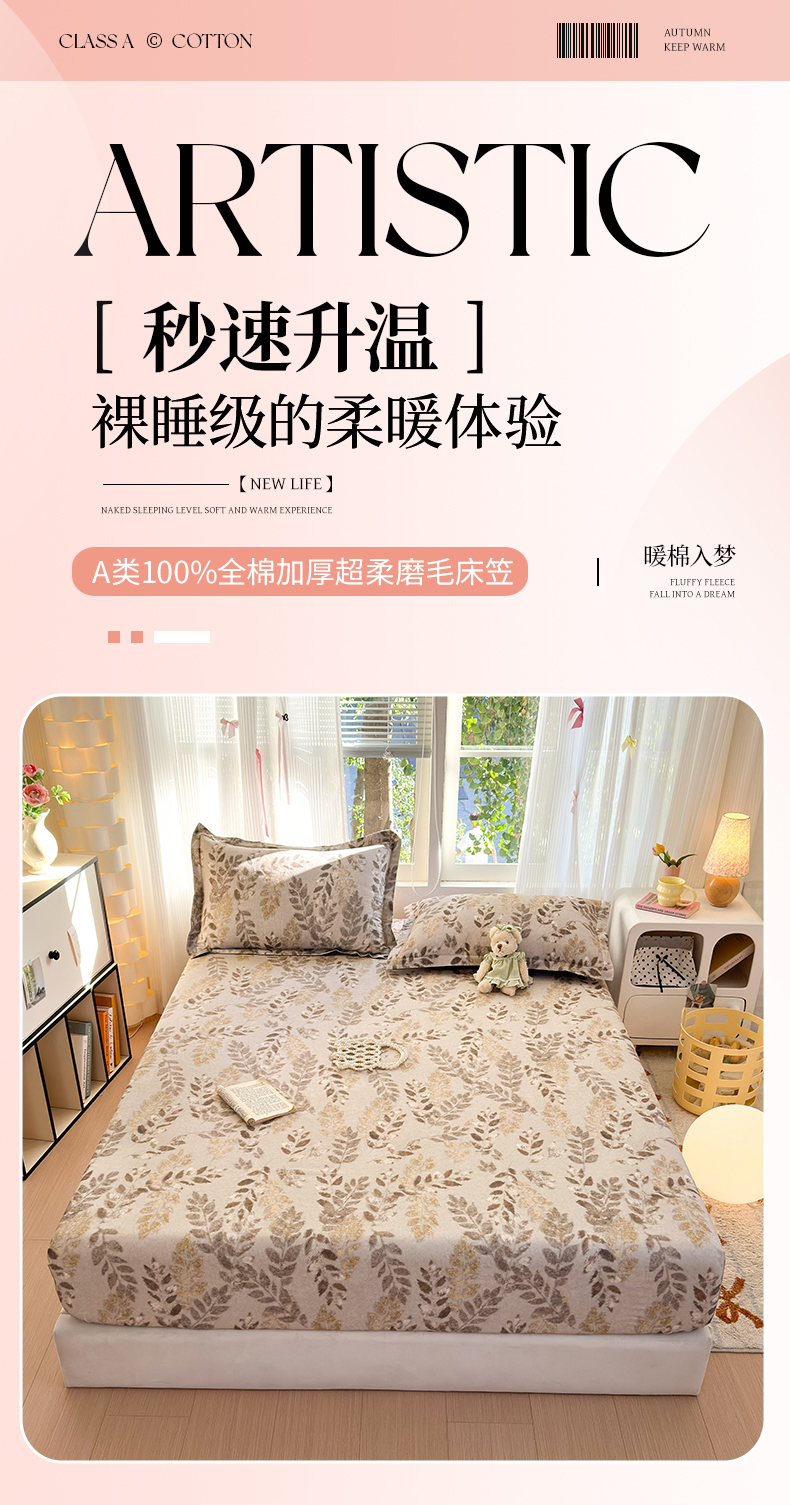 • 91家纺网 家纺一手货源 找家纺 拾物记 2025新款A类全棉纯棉加厚超柔磨毛单床笠(提供买家秀质检报告和实验视频) 折枝春山