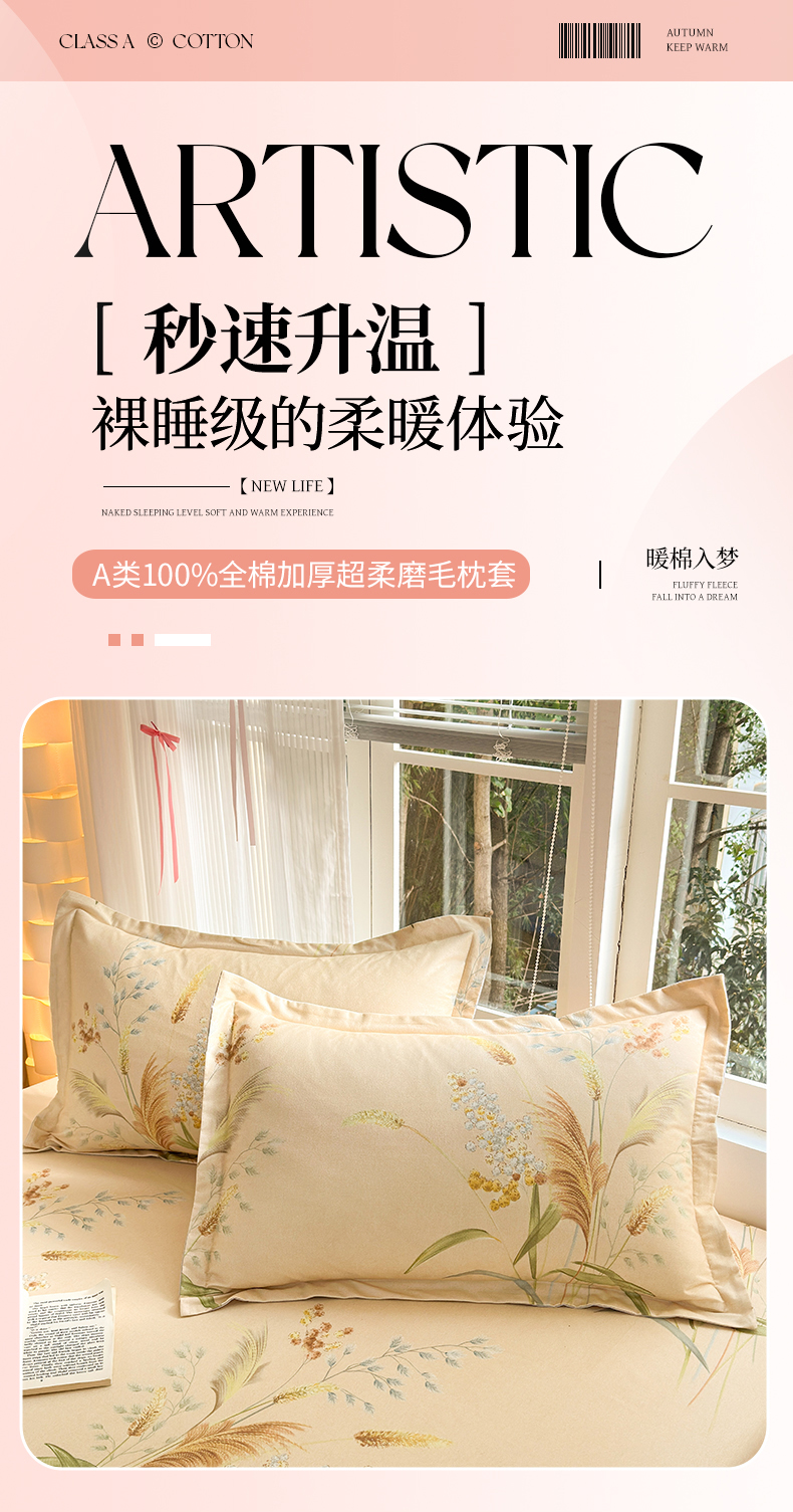 商品名称:拾物记 2025新款A类全棉纯棉加厚超柔磨毛单枕套(提供买家秀质检报告和实验视频) 落拂