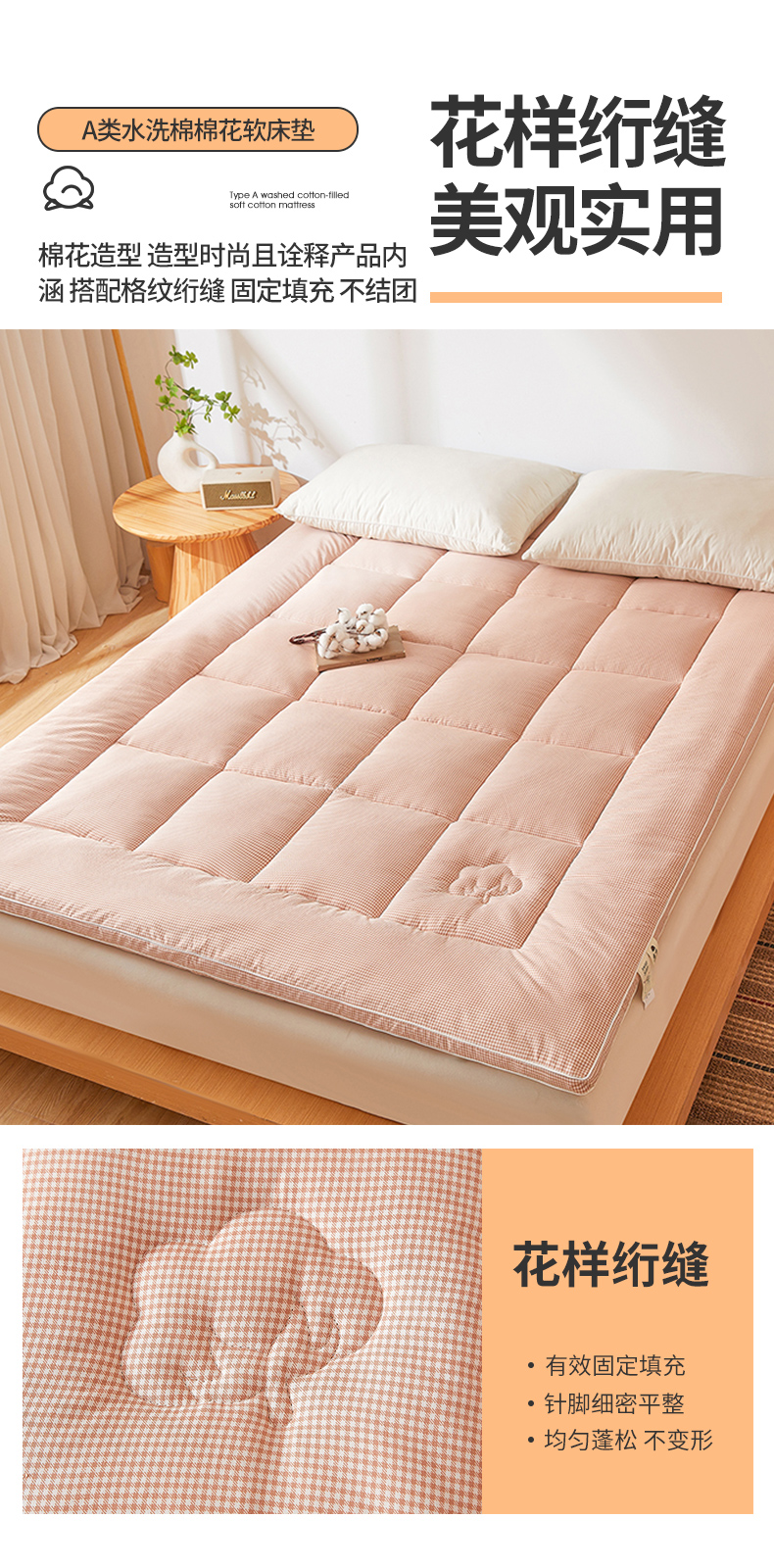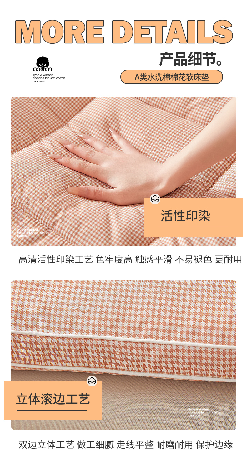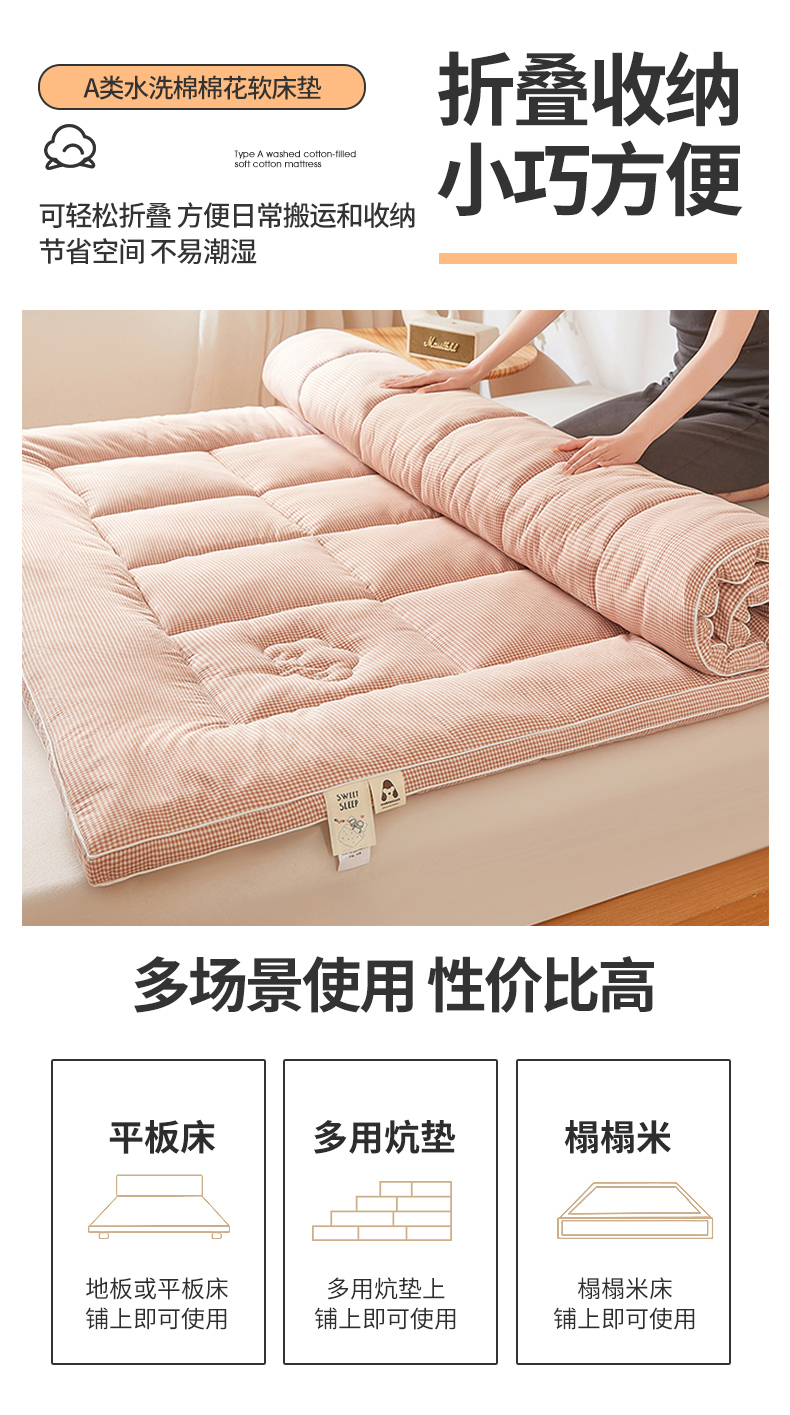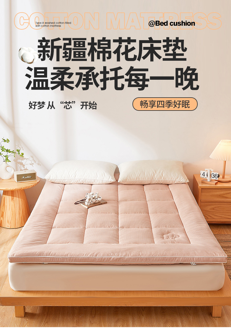 当前位置: 91家纺网 > 商品网购 > 床垫/床褥 > 普通床垫 > 魅图家纺 2025新款水洗棉新疆棉花床垫床褥-小格系列 小格-玉