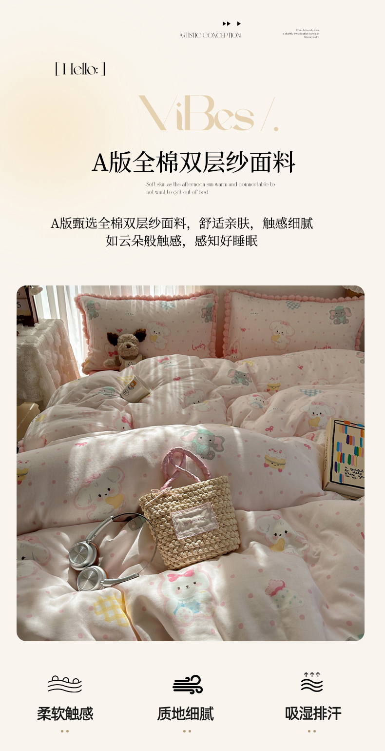 商品名称:Sweet dreams甜梦 2025新款双层纱豆豆绒棉加绒四件套 童趣王国