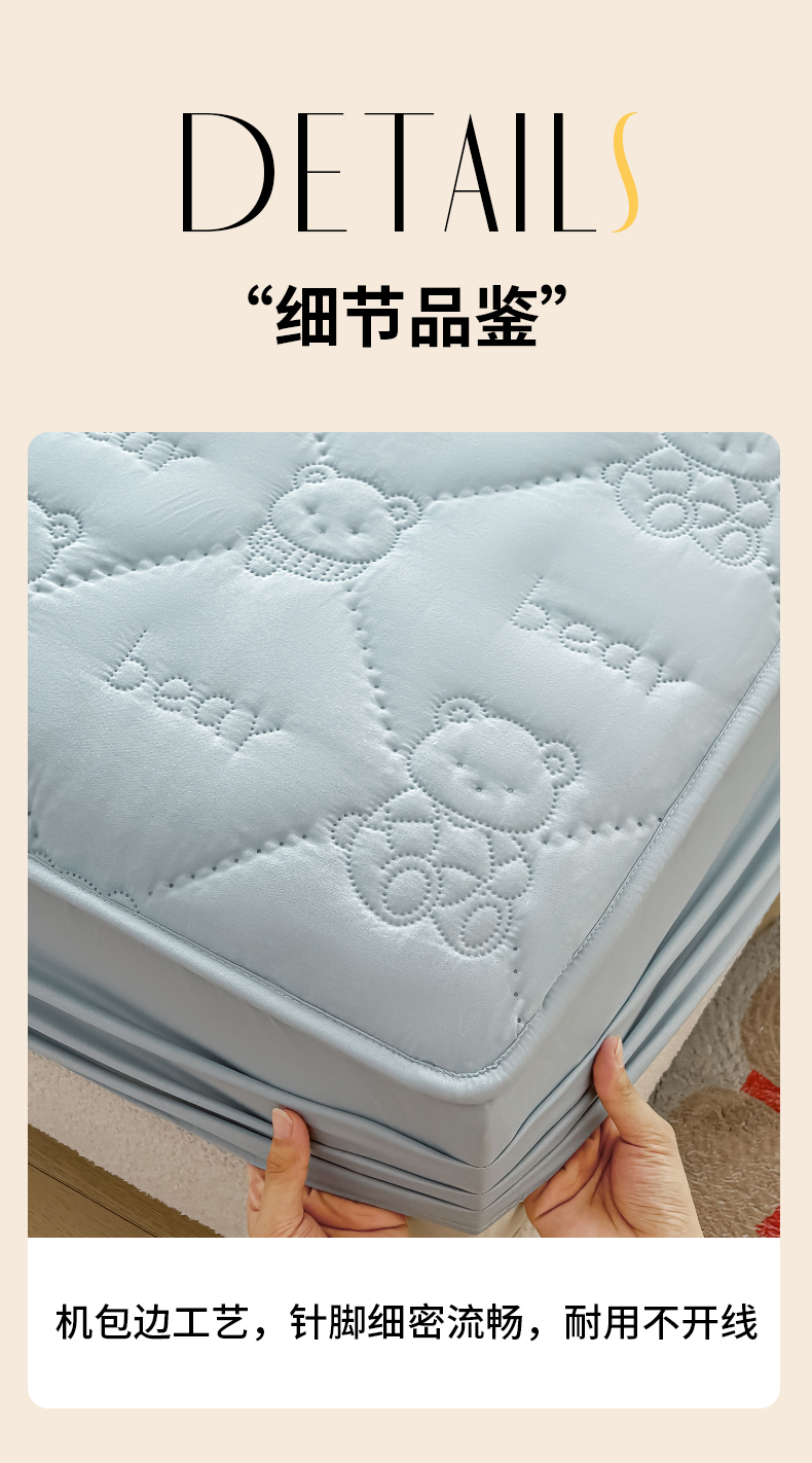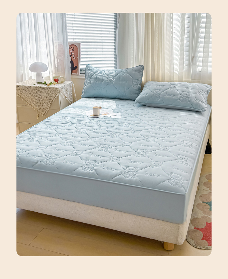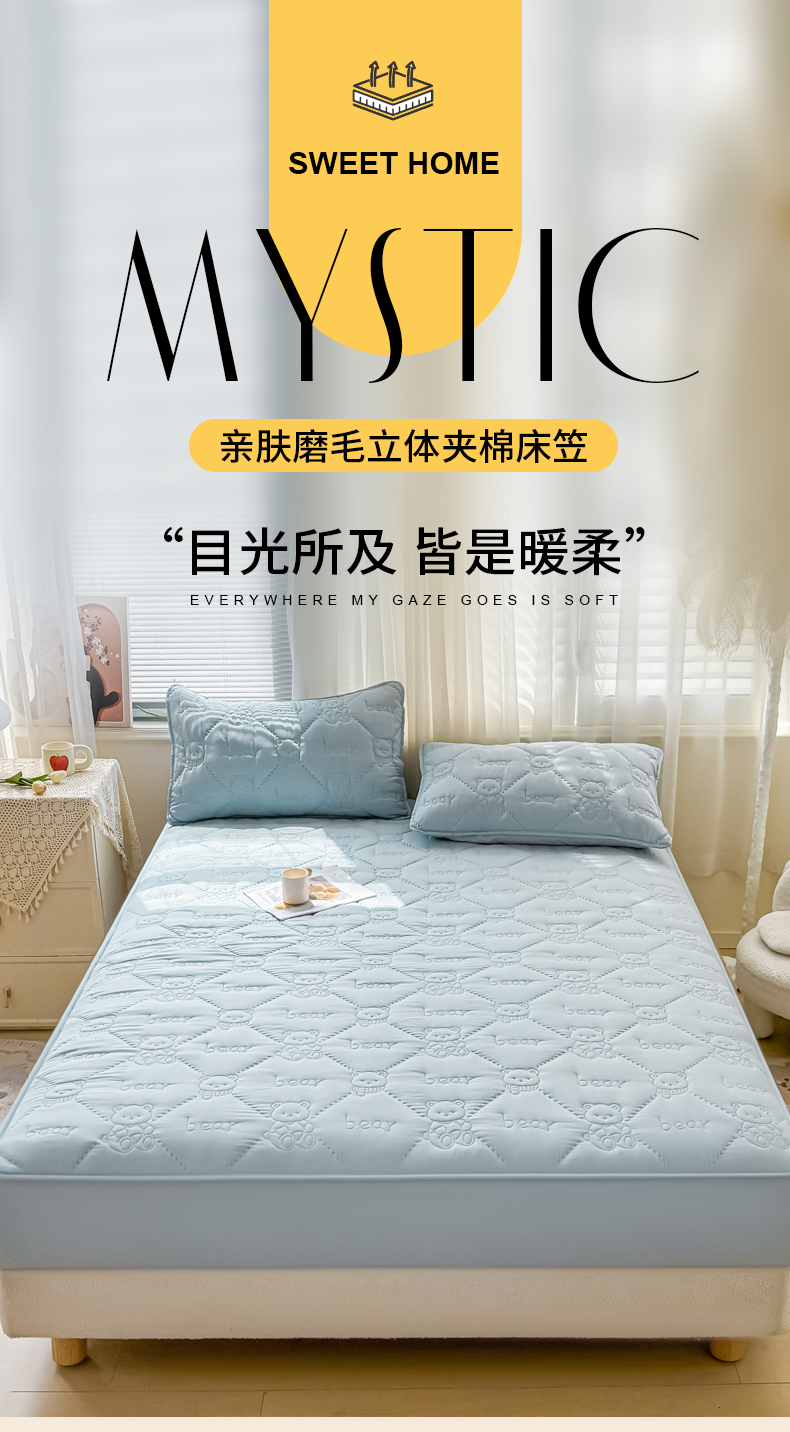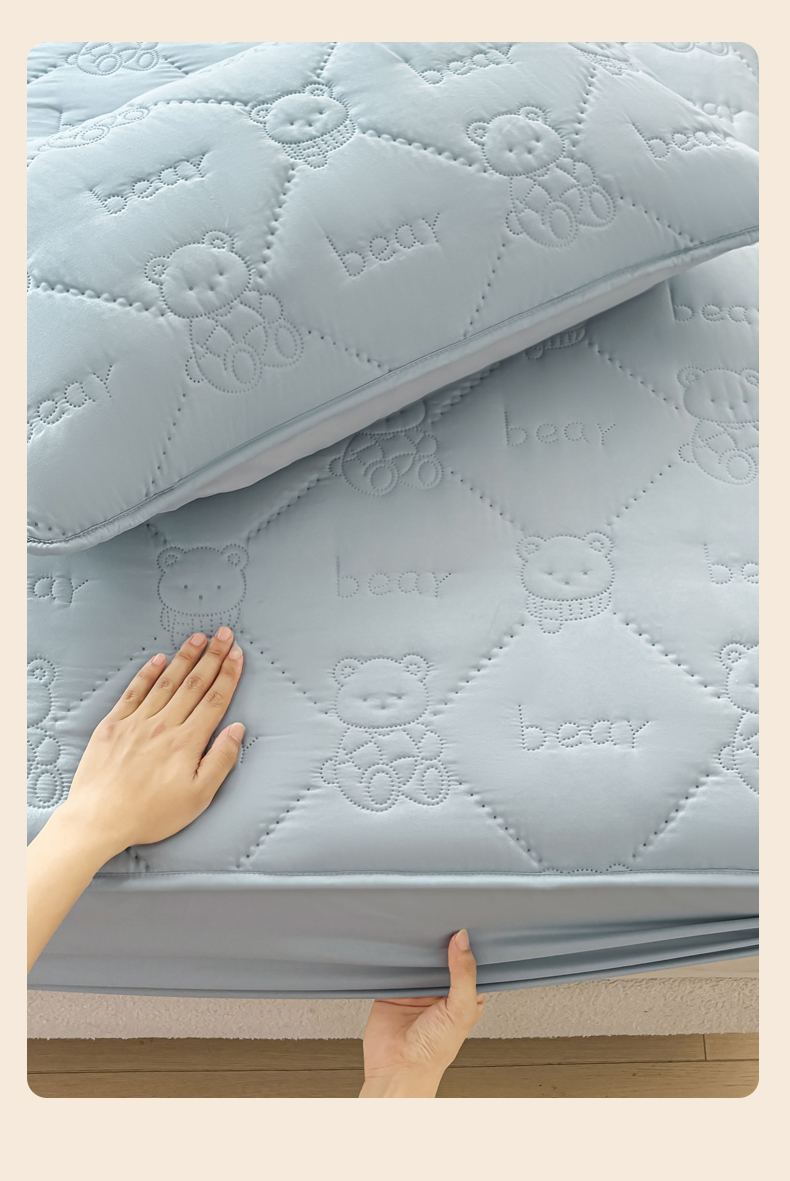 • 91家纺网 家纺一手货源 找家纺 LIFE.丽芙 2025新款磨毛单件超声波小熊夹棉床笠三件套 小熊夹棉床笠-海青
