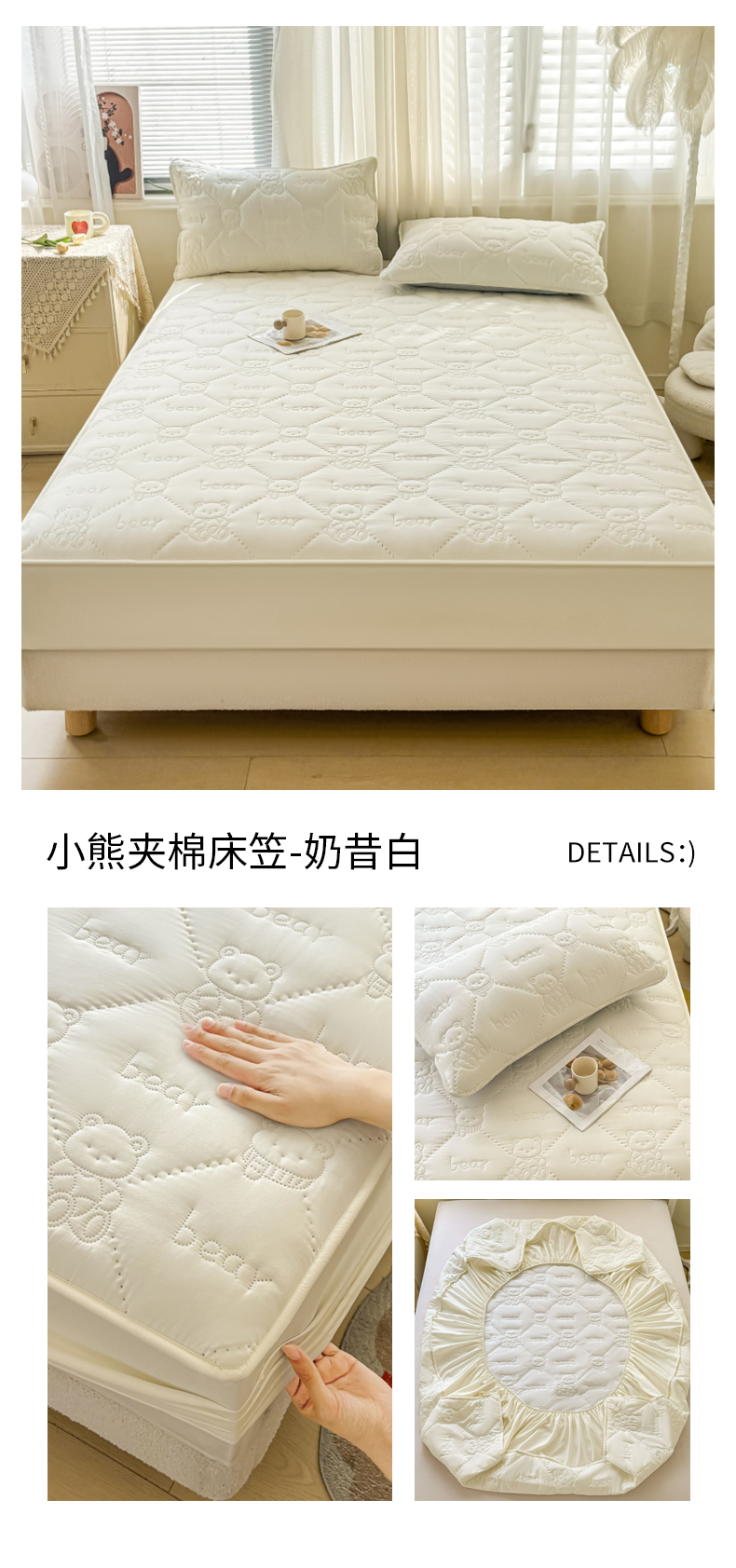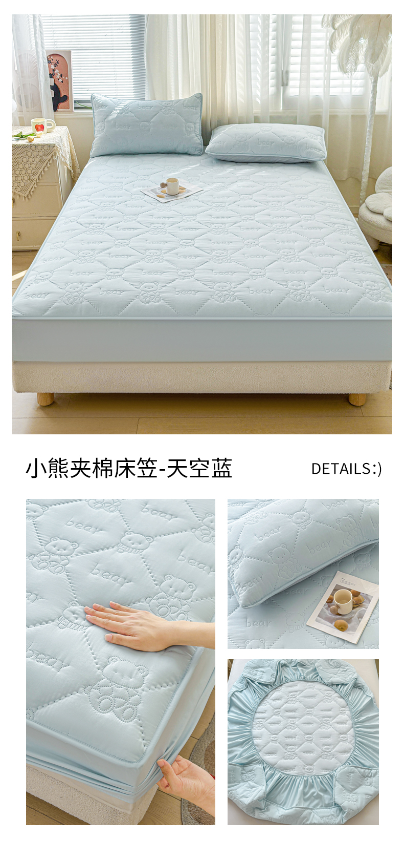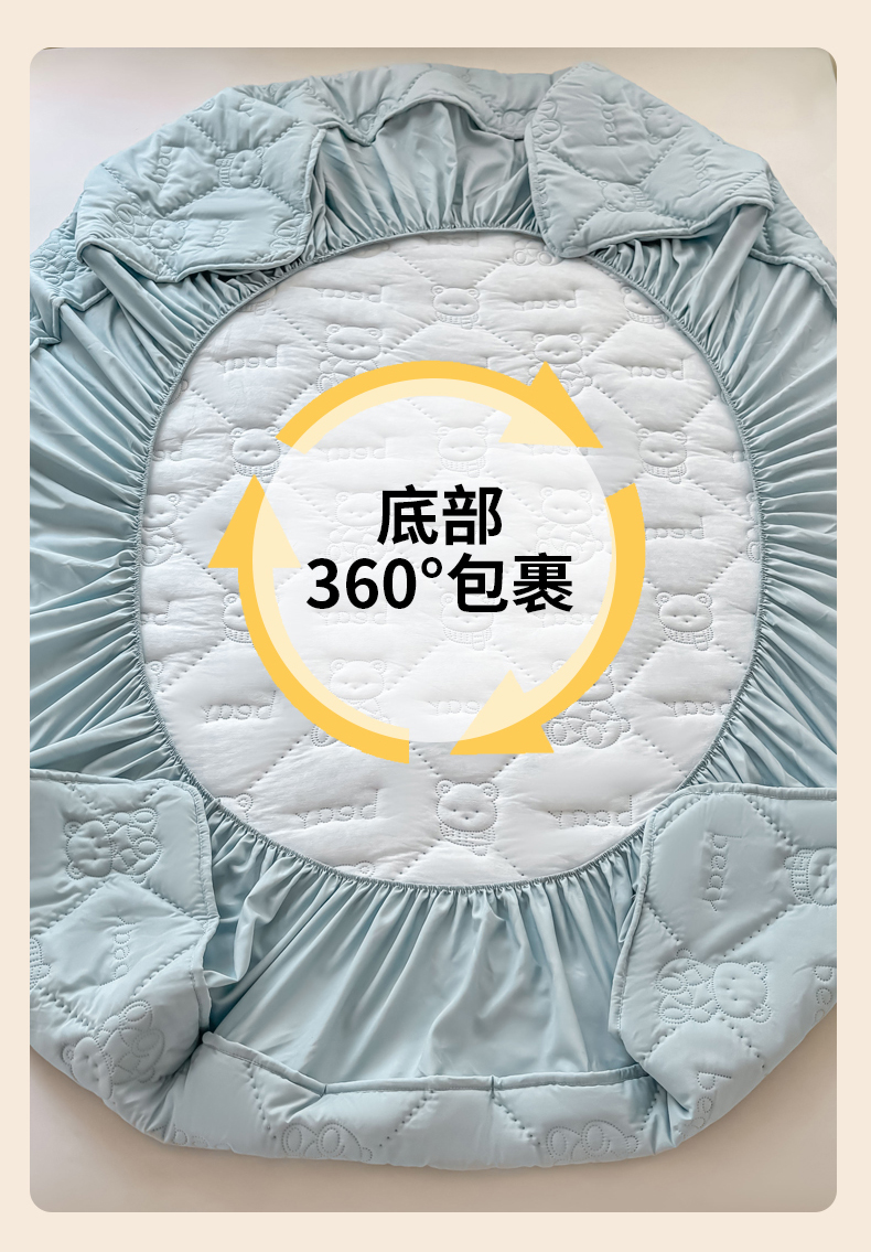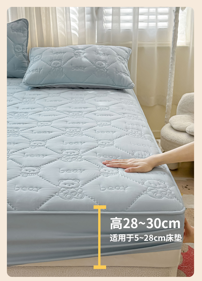 • 91家纺网 家纺一手货源 找家纺 LIFE.丽芙 2025新款磨毛单件超声波小熊夹棉床笠三件套 小熊夹棉床笠-海青