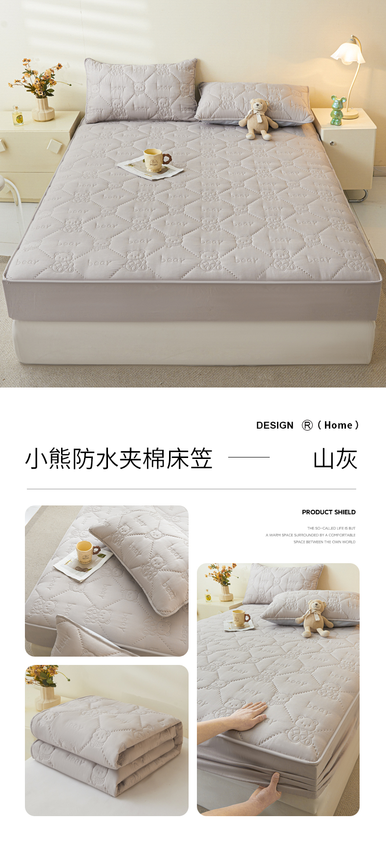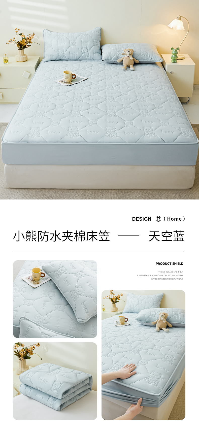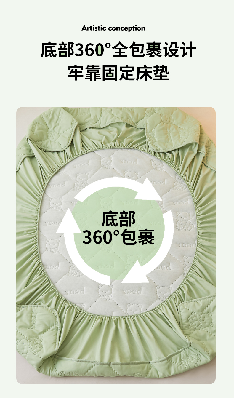 当前位置: 91家纺网 > 商品网购 > 床上用品 > 床笠 > LIFE.丽芙 2025新款磨毛单件超声波小熊夹棉防水床笠三件套 小熊防水夹棉床笠-松石绿