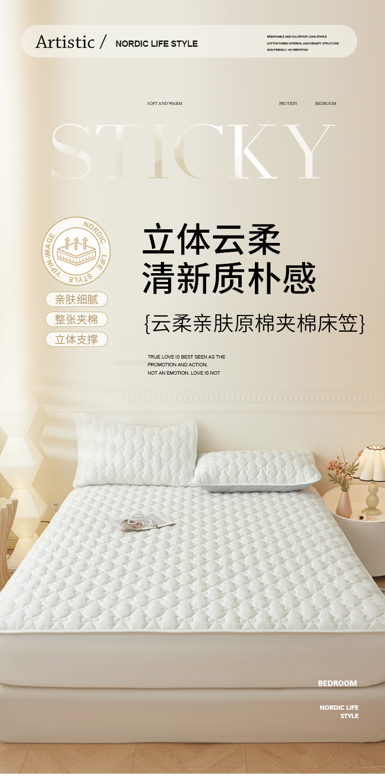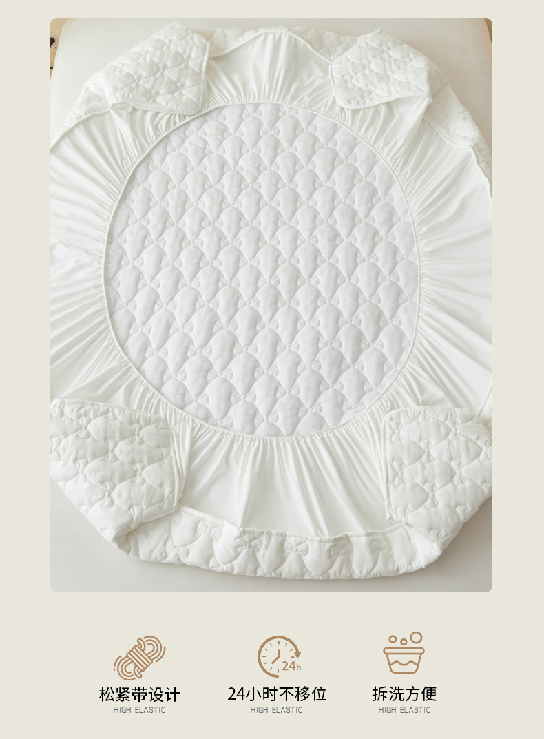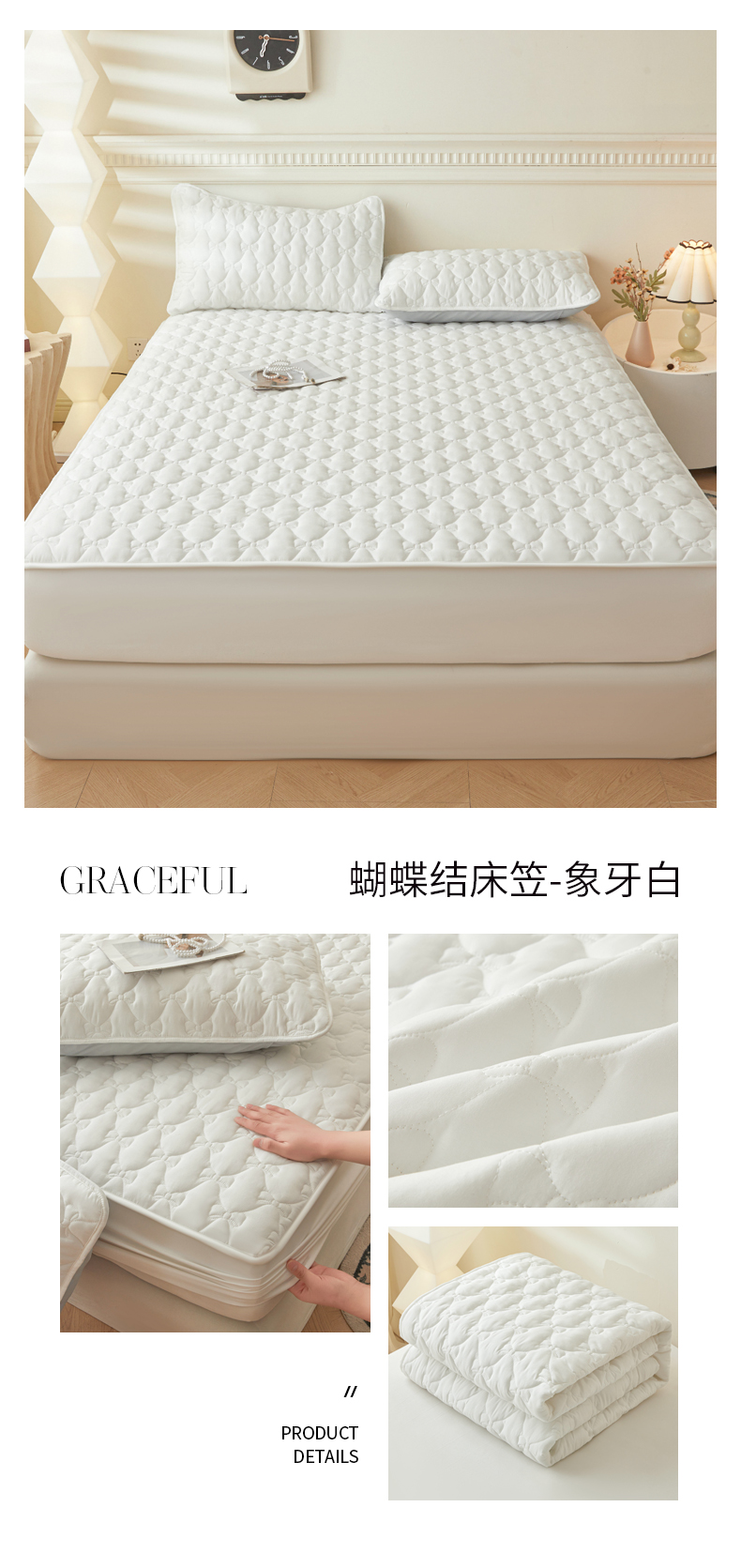 • 91家纺网 家纺一手货源 找家纺 LIFE.丽芙 2025新款水洗原棉单件蝴蝶结绗缝夹棉床笠三件套 蝴蝶结床笠-象牙白